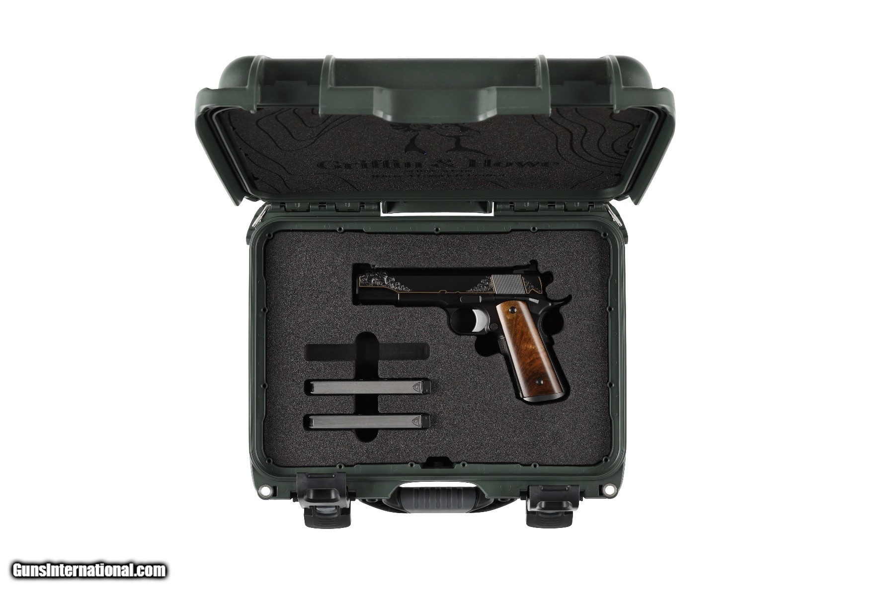 Description: Custom engraved by Chris Rossiter of Griffin & Howe. Proceeds to benefit The American Custom Gunmakers Guild. SOLD Manufacturer: Alchemy Custom Model: Prime Elite Caliber Info: .45 ACP Condition: New Metal Condition: New Barrels: 5 Action: Semi Automatic Gauge Info: .45 ACP Weight: 2.500000 Case: Nanuk |
