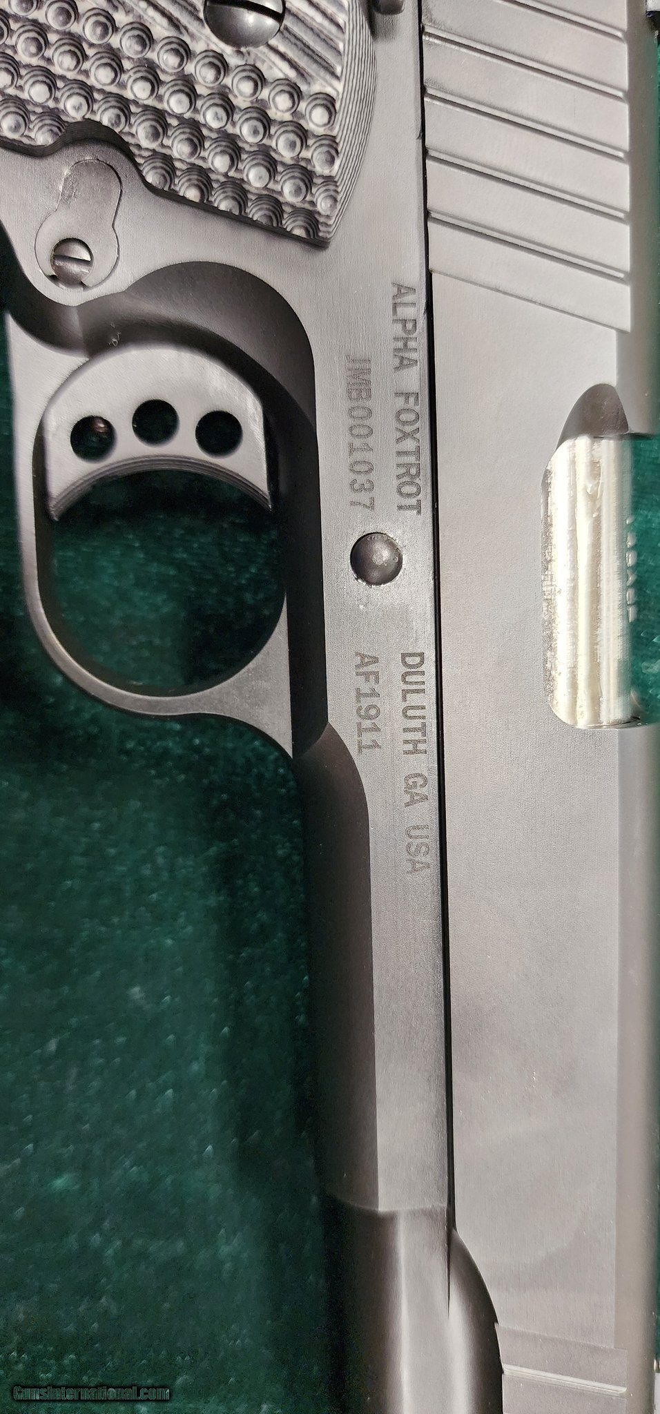 Description: Guns Listing ID: 1311281 Alpha Foxtrot 1911 with bag and wilson combat mag. SOLD Manufacturer: ALPHA FOXTROT Model: AF1911 Caliber Info: .45 ACP Condition: Used - Non-Certified Barrels: 5 BARREL Finish: BLACK |