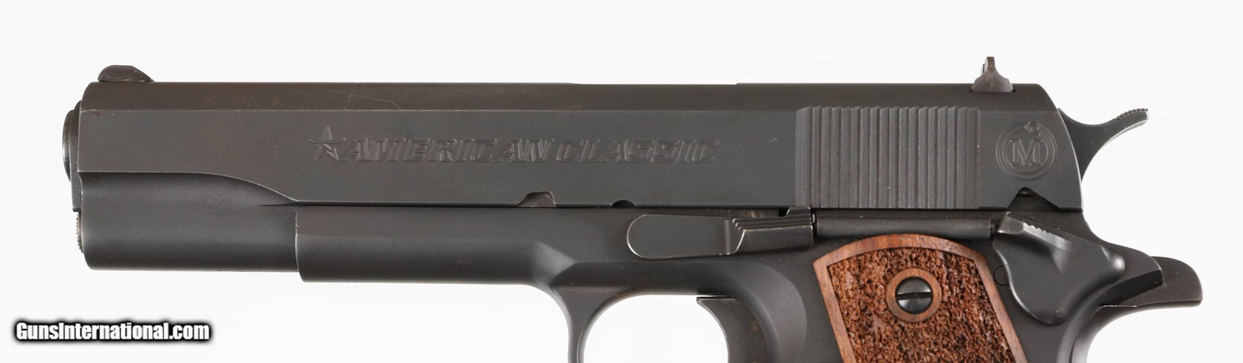 SOLD Handgun Caliber: .45 ACP (.45 Auto) Manufacturer: AMERICAN CLASSIC Model: 1911 Serial Number: A084?? Barrel Length: 5 Condition: EXCELLENT |