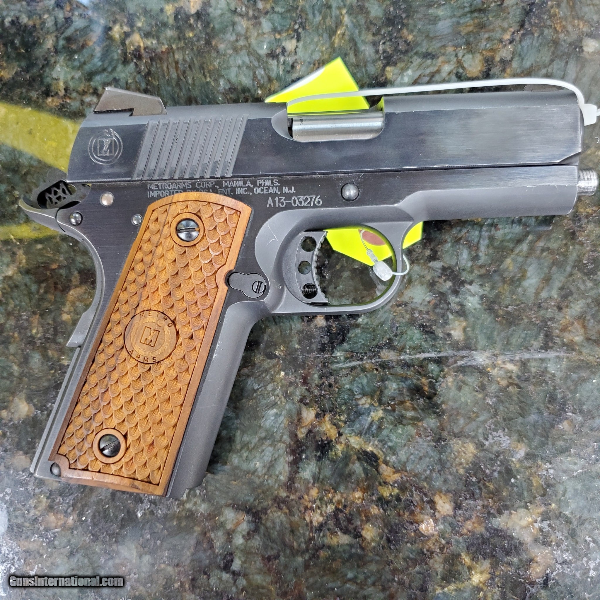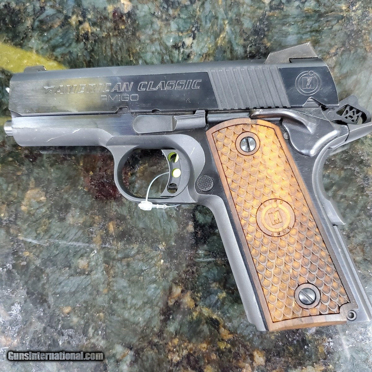 Description: USED 3.5" BARREL PISTOL, 1-7RD MAG IN ORIGINAL CASE SOLD Manufacturer: AMERICAN CLASSIC Model: 1911 Amigo Caliber Info: 45 ACP Condition: used Barrels: 3.5 BARREL Finish: BLACK |