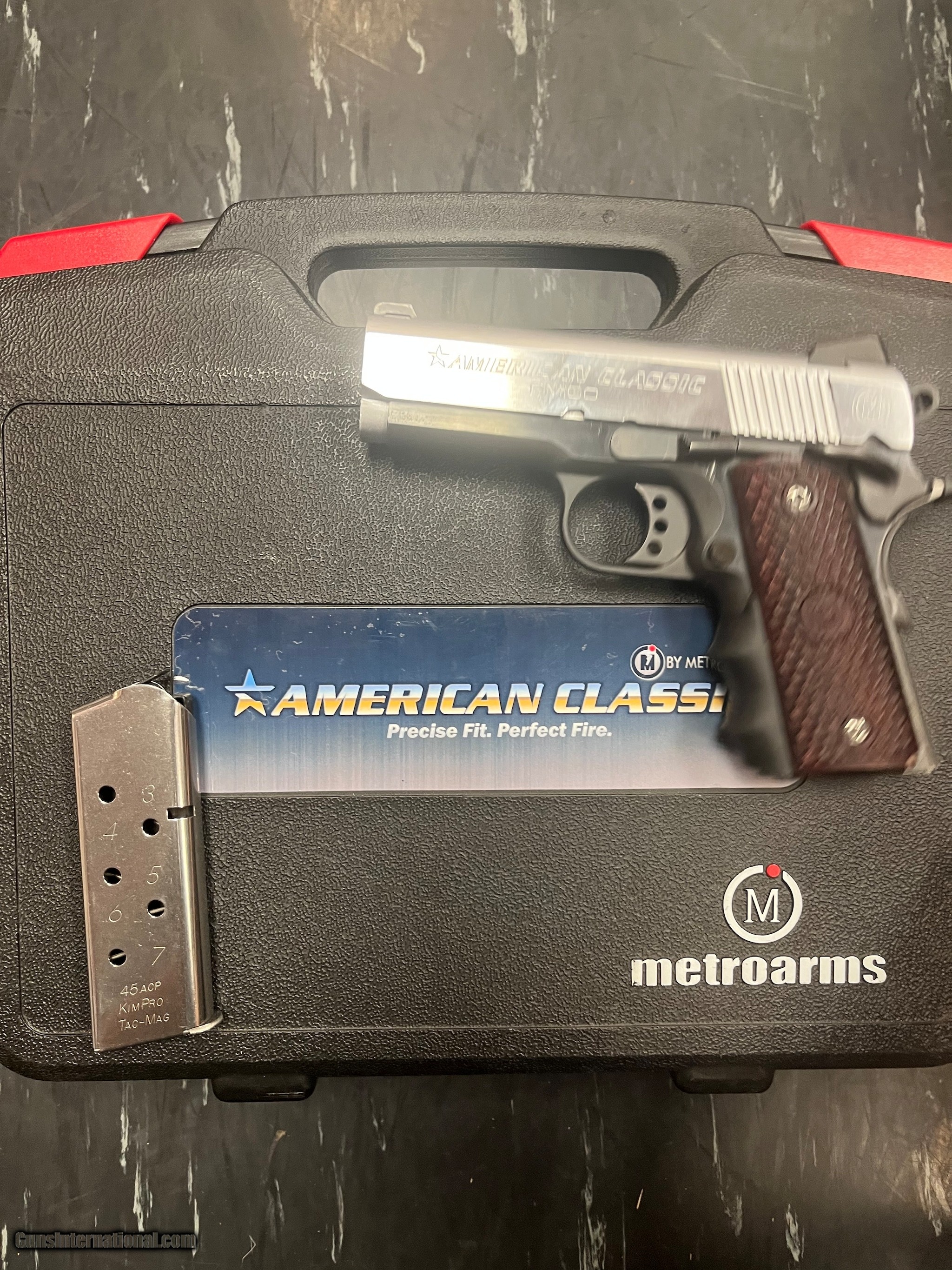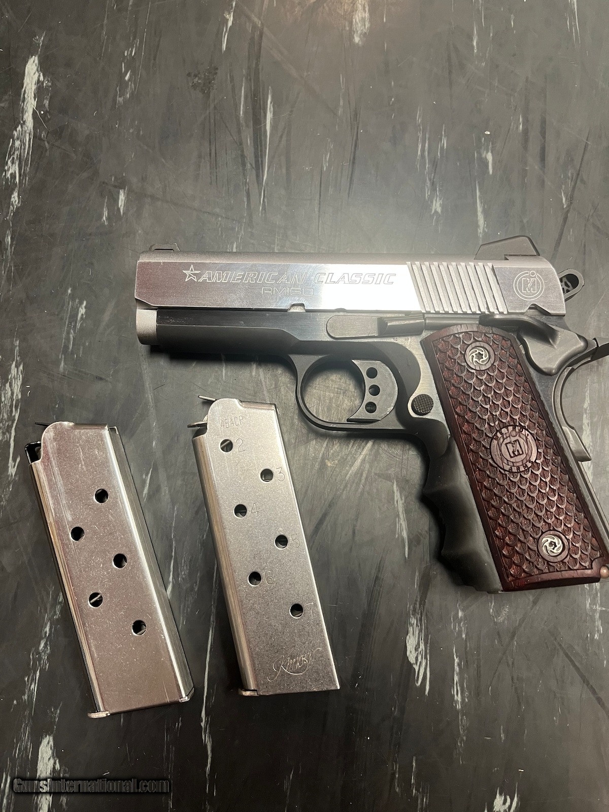 Description: Guns Listing ID: 559886 Two tone 2 -7 round mags Original hard case SOLD Manufacturer: AMERICAN CLASSIC Model: 1911 Amigo Caliber Info: .45 ACP Condition: Used - Non-Certified Barrels: 3.5 BARREL Finish: TWO TONE BLACK AND STAINLESS |
