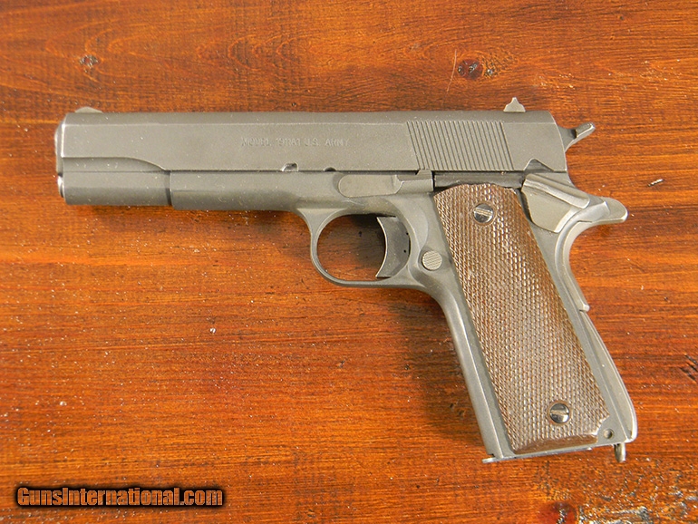 Description: Discontinued in 2001, this is their version of a 1911A1 WWII parkerized military style pistol. Excellent condition. Serial number A0C5948x. SOLD |