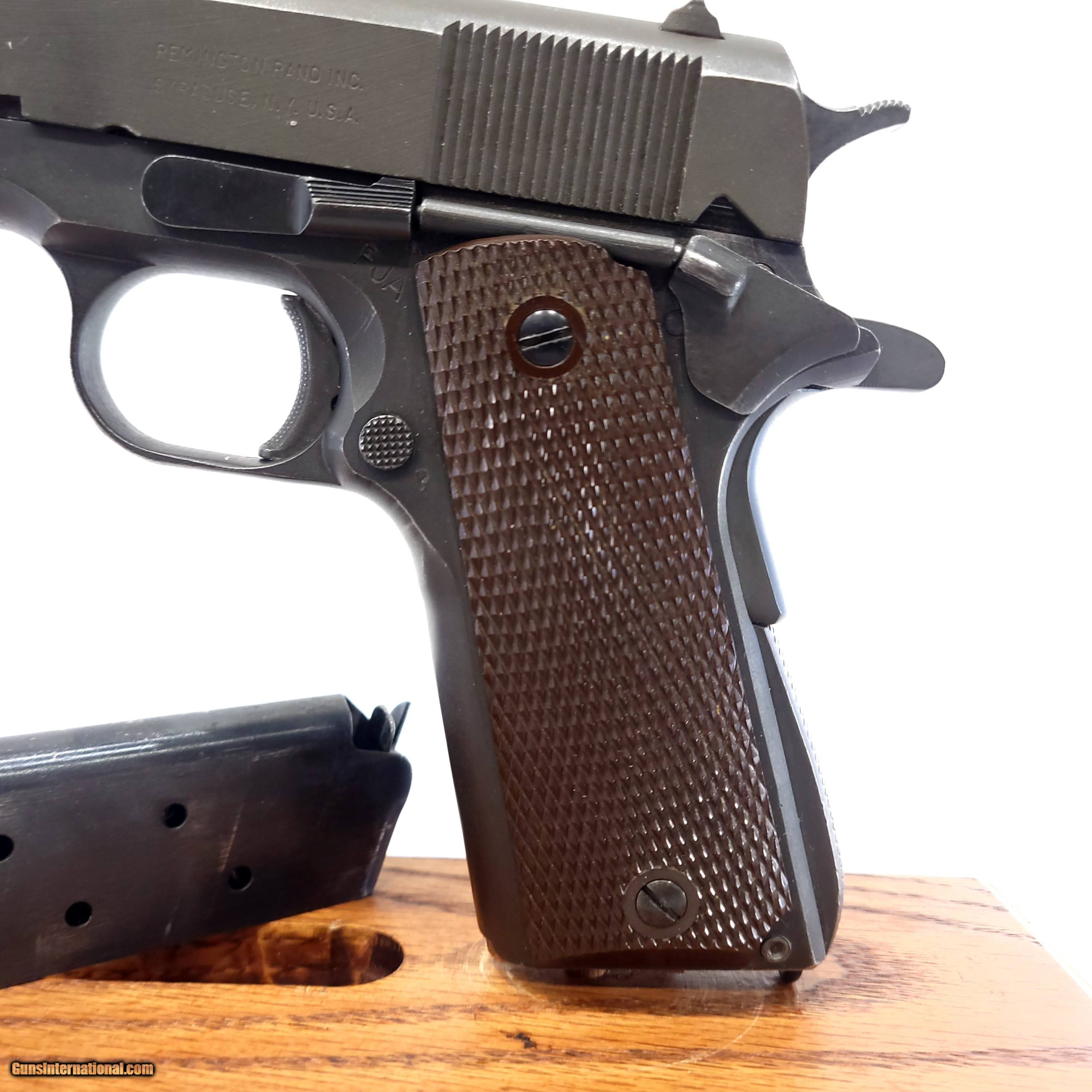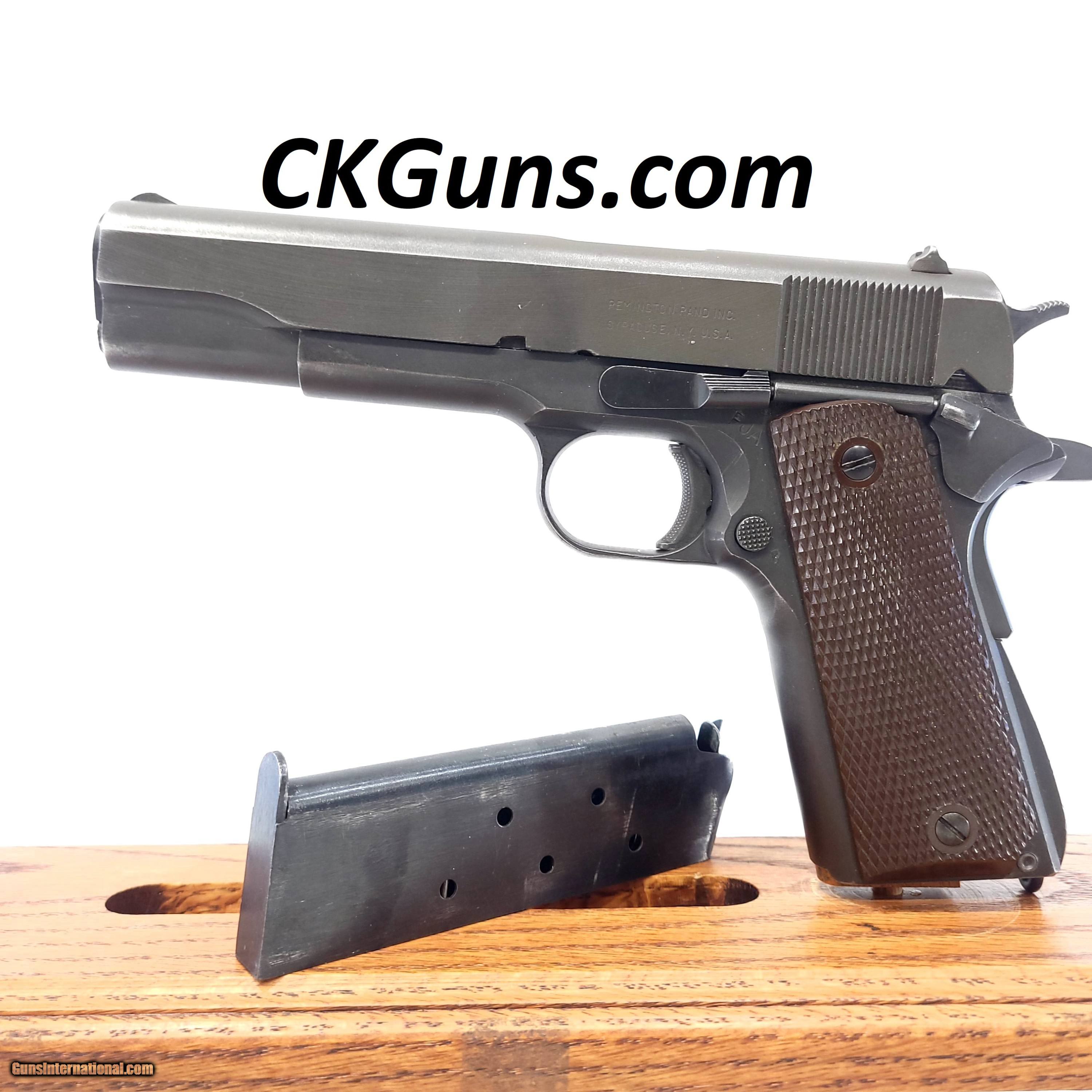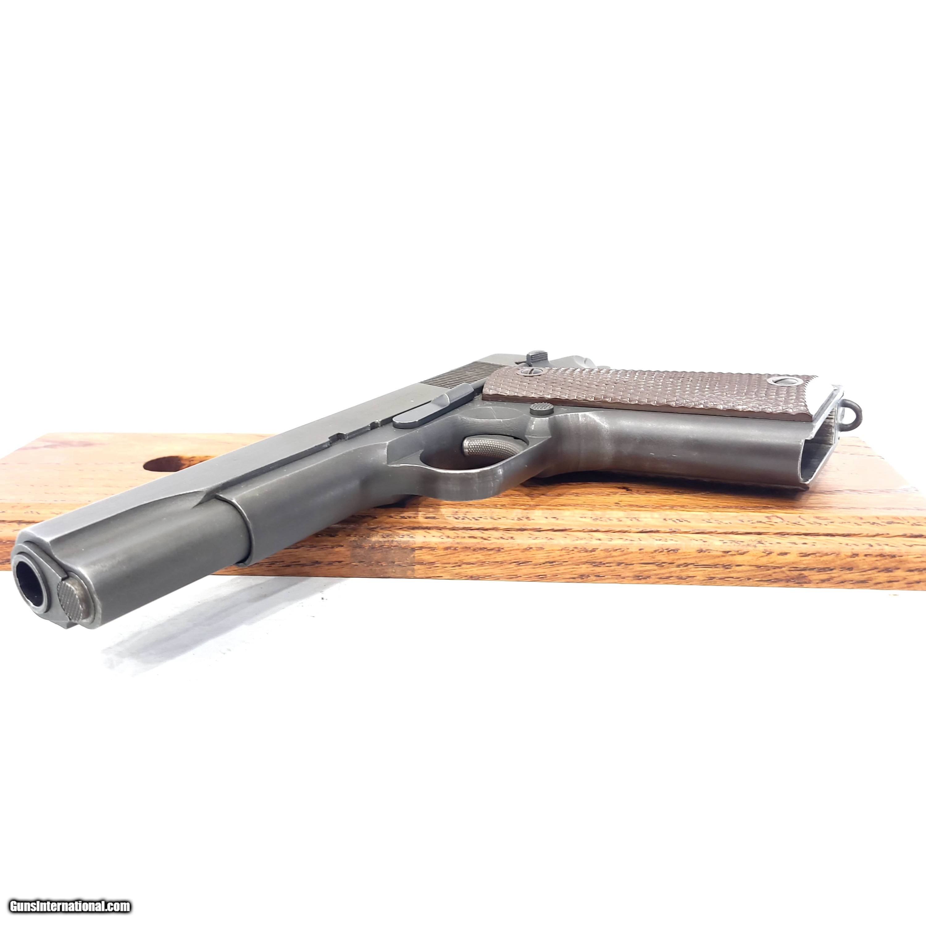 Description: INV. 12218 AWESOME, REMINGTON RAND U.S 1911 A1, CAL. .45ACP, SER. 8896472. AWESOME IS EXACTLY RIGHT FOR THIS W.W.II "RACK QUEEN". THIS BEAUTY HAS RETAINED ABOUT 98+% OF THE ORIGINAL FACTORY FINISH. THE LITTLE LOSS THERE IS, IS FROM SOME SLIGHT SHARP EDGE SILVERING. THERE ARE NO SCRATCHES, RUB MARKS OR RUST PATCHES ANYWHERE. THE GRIP STRAPS SHOW NO SIGN OF GRAYING. ALL PARTS ARE PROPER. THE TOP OF THE SLIDE HAS THE CORRECT "P" PROOF. THE LEFT SIDE OF THE FRAME HAS A "P" PROOF. AND THE "FJA" INSPECTOR'S STAMP. THE RIGHT REAR FOF THE FRAME THE PROPER "CIRCLE, CROSSED CANNONS" ORDNANCE PROOF. THE PLASTIC GRIPS ARE THE CORRECT LARGE RING TYPE AND ARE PERFECT AS ARE THE GRIP SCREWS. THE SLIDE RAILS BOLT FACE AND FEED RAMP SHOW LITTLE IF ANY USE. THE BARREL IS A CORRECT "FLANNERY" 1911-A1. IT COMES WITH A PROPER "L" STAMPED M.S. LITTLE MFG. MAGAZINE THIS "RACK QUEEN'IS A REAL FIND FOR THE VERY CRITICAL COLLECTOR TO ACQUIRE A GREAT EXAMPLE OF A U.S. MILITARY ICON. INVESTMENT PRICED.....$2995.*** ***100% OF THE GUN'S PRICE IS SATISFACTION GUARANTEED.. To purchase this firearm or if you want to request more information contact us at: Email ckguns[at]ymail[dot]com Phone 201-512-0002 Cell 201-575-6838 FAX 201-215-4759 We accept most major credit cards. Prices shown are Discounted 3% for Cash or Check. The buyer must be familiar with all the laws governing the purchase and the ownership of firearms in their own city and state. The Yankee Armorer, Inc is not responsible for any failure to comply with or observe these laws. The Yankee Armorer, Inc will only ship after full payment and receipt of all required documents. Shipping: Add $35.00 for handguns, $45.00 for long guns. New Jersey buyers are subject to a 7% sales tax. The Yankee Armorer, Inc offers a 3 day inspection period with full refund upon return of intact firearm and in the original condition. The Yankee Armorer, Inc offers a no interest lay away program - 25% down; 25% in 30 days; 25% in 60 days; and full payment in 90 days. Any violation of this policy is subject to restocking and forfeiture of all payments. Any variation from this policy must be agreed to in advance. Unshipped Cancelled sales are subject to a 20% restocking fee. Be advised that all firearms sold by The Yankee Armorer, Inc. or the Gun Exchange, LLC (SELLER) are sold as collector’s items. They have not been fired or tested for safety and must be examined by a license gunsmith prior to use. By purchasing any item from the (SELLER), you are agreeing to hold the (SELLER) free from any damages or lawsuits of any nature. Any item left for transfer or storage will be charged to $25.00 per month, per item from the day of its receipt. Any variation from this policy must be agreed to in advance. Store hours 10:00 am to 5:00 pm Tuesday -Saturday. It's always best to call for appointment. Store 201-512-0002, cell 201-575-6838. SOLD |