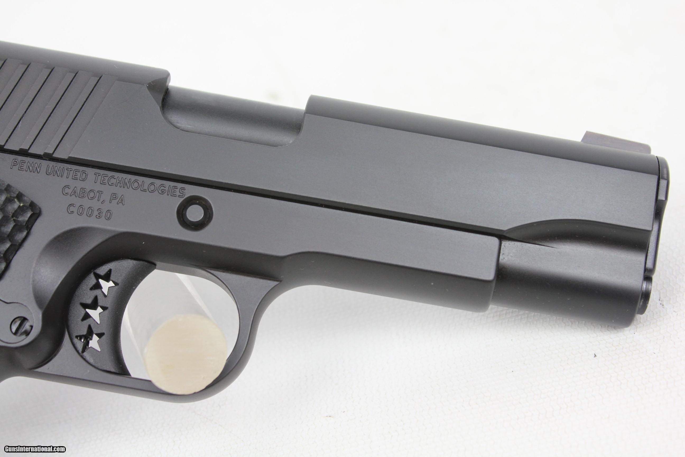 Description: Introducing the Cabot Commander, an incarnation of the 1911 created to bring the perfection of the full-sized design laid down by John Moses Browning to Commander sized carry package. Oft attempted, never before perfected, the Cabot Commander brings Cabot’s industry leading pursuit of tolerance perfection to bear in solving the dilemma of birthing a 1911 truly designed for the concealed carry realm. Committed to the use of our clone technology for its demonstrated reliability and repeatability, Cabot engineers approached the Commander with the eyes of those who have spent a lifetime meeting or exceeding aerospace level standards. Through this lens, they discovered the key to a 1911 Commander. Featuring a bobtailed frame, the Commander disappears when holstered and leaves no snag-points at the rear of the frame to “print” or catch the wearer’s clothing upon draw. Clone Technology means that the Cabot Commander is manufactured to the same level of precision as our other collector-grade guns and is finished to the aerospace-grade standards of Penn United Technologies. Black G-10 grips, a precision grade Tristar trigger, and grip-assuring checkering at the front and rear straps are what you’ve come to expect from a Cabot Gun, and you’ll find nothing less astride the Commander. Take to your daily life secure in knowing a Cabot Gun rides at your hip. Backed by our never-ending commitment to unmatched quality, and our obsessive attention to detail, the Cabot Commander needs no further introduction, it’s a new standard amongst 1911’s crafted for daily carry. Features: Frame and Slide Constructed from USA sourced Billet 416 Steel, Proprietary Hardening 4.25" Barrel Rear Slide Serrations CNC Machining, EDM Wire, EDM Sink, CNC Jig Grinding, CNC Surface Grinding Cabot Black Nitride Coating Polished Feed Ramp Cabot Deep Curve TriStar Trigger Lowered and Flared Ejection Port 18 LB Conventional Recoil Spring Front Strap Checkering 25 LPI Bobtail Main Spring Housing RH Safety Bevelled Magwell Beaver Tail Grip Safety Crowned Barrel High Tactile Cabot G-10 Grips Cabot Design Barrel Bushing Front Sight- Rozic Blind Front Style- Tritium Rear Sight- Low Mount Tactical Fixed Sight- Tritium Ships with 8 Round Cabot Flush Bottom Magazine, Owners Manual, Cabot Barrel Bushing Wrench, and Cabot Carrying Case w/ Gun Lock SOLD |