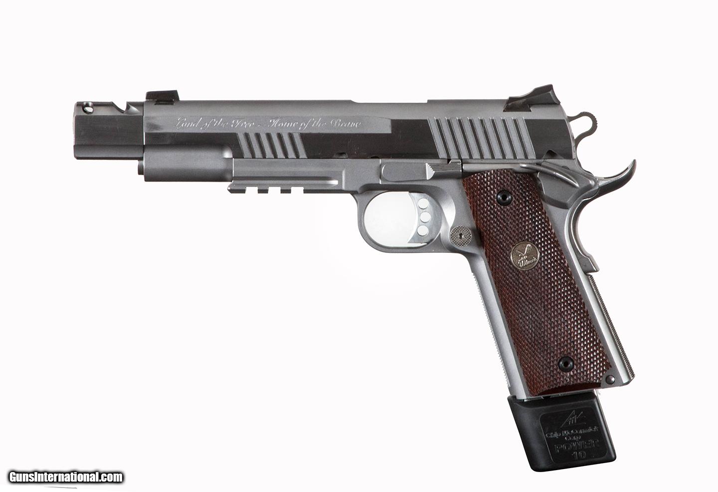 Description: This is a .45 caliber Caspian Arms 1911, custom built by an experienced gunsmith. The gunsmith added a compensator to the end of the barrel and Novak night sights. This Caspian Arms 1911 features a picatinny rail, checkered front strap and checkered mainspring housing. The inside of the gun is mainly built using Wilson Combat and Ed Brown parts, as well as a Kart barrel. The grips are Wilson Combat rosewood grips, and the gun features 2 extended 10 round magazines. The trigger pulls very nicely, as it is a 2.5lb match grade trigger. This gun shows some minor wear from use, but overall is in fantastic condition. The gun is completely hand fit and is built beautifully. Call 585-657-6338 for additional information or photos. SOLD Manufacturer: Caspian Arms Model: 1911 Serial Number: 58622 Caliber Info: .45 Bore Condition: Great Action: Semi Auto Item Location: NY |