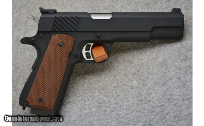Description: Excellent condition overall. 7 round capacity magazine. SOLD Caliber Info: .45 Automatic Colt Pistol Metal Condition: Excellent Bore Condition: Excellent Barrels: 5 Triggers: Single Action Stock: Checkered Grips Weight: 2 lbs. 8 ozs/ Sights: Fixed Open Sights Item Location: Hamburg, PA |