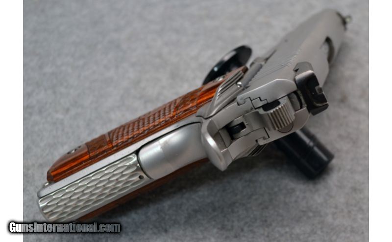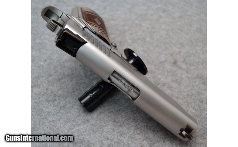 Description: Very good condition overall Commander size 1911. Comes with Smith & Wesson E series grips and 1 magazine. SOLD Caliber Info: .45 ACP Metal Condition: Very good with some finish wear Wood Condition: Excellent Bore Condition: Excellent Barrels: 4 Triggers: Single action skeletonized Stock: Smith and Wesson E Series wood grips Sights: Front fixed tritium sight, rear fixed Novak style square notch Item Location: Christiana, DE |