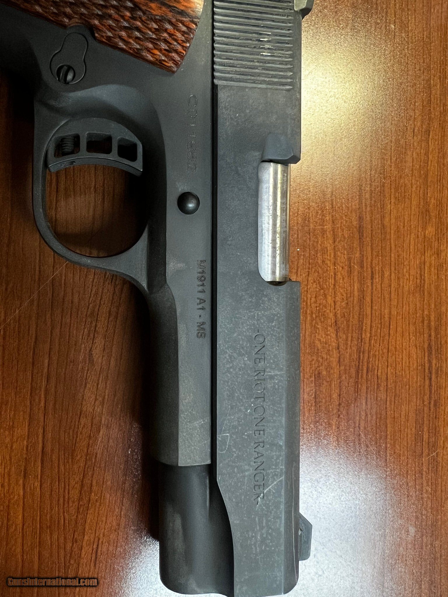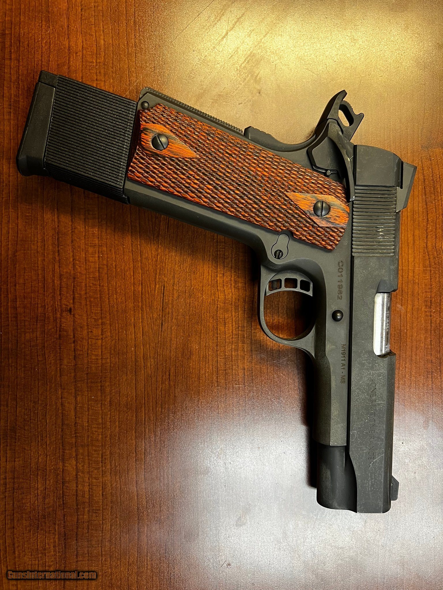 Description: Guns Listing ID: 470265 Cimarron 1911: CIMARRON Firearms CO. 1911 Government Issue - .45 ACP - PARKERIZED • Semi-Auto 1911 military replica w/original 1911 frame & Type 1 smooth mainspring housing • Diamond checkered walnut grips • Colt parts compliant • 8-round capacity • Wt.: 2.47 lbs. • Barrel length: 5.0\ SOLD Manufacturer: CIMARRON Model: M1911 A1 - MS Condition: Used - Non-Certified Barrels: 5 Gauge Info: .45 ACP Finish: black and wood |