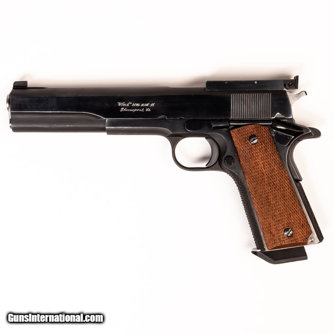 Description: Guns Listing ID: 537557 This listing is for a custom-made stainless-steel Clark Long Slide .45. The slide and barrel are an inch longer than a traditional 1911 for enhanced accuracy and velocity. It is equipped with adjustable rear sights. If you‚‚re looking for a high-quality 1911 that is meant for target shooting, this Clark Custom is hard to beat. They were founded in 1950 and have made some of the finest custom guns ever sold. 1-8 round magazine included. Serial number: 293019- SOLD Manufacturer: CLARK Model: LONG SLIDE Caliber Info: .45 ACP Condition: Used - Certified Barrels: 6.2 BARREL Finish: STAINLESS |