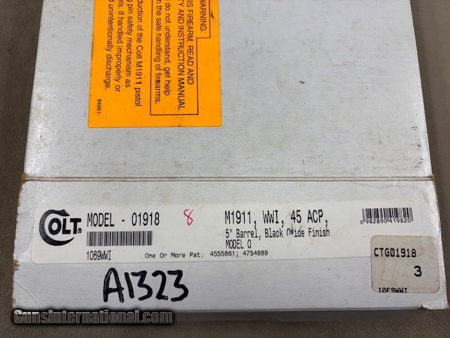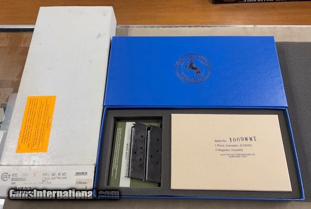 Description: An excellent original condition Colt remake of the 1918 model 1911 servive pistol, Colt's Product Number 01918. These were made about 15 years ago and they are damned hard to find. This pistol has been fired but it has been well taken care of as the photos show, and it has all the items that came with it - the box, lablel, wax paper, manual, 2 magazines, outer carton, etc. Previously owned and purchased by someone who knew how to take care of the pistol. SOLD Handgun Caliber: .45 ACP (.45 Auto) |