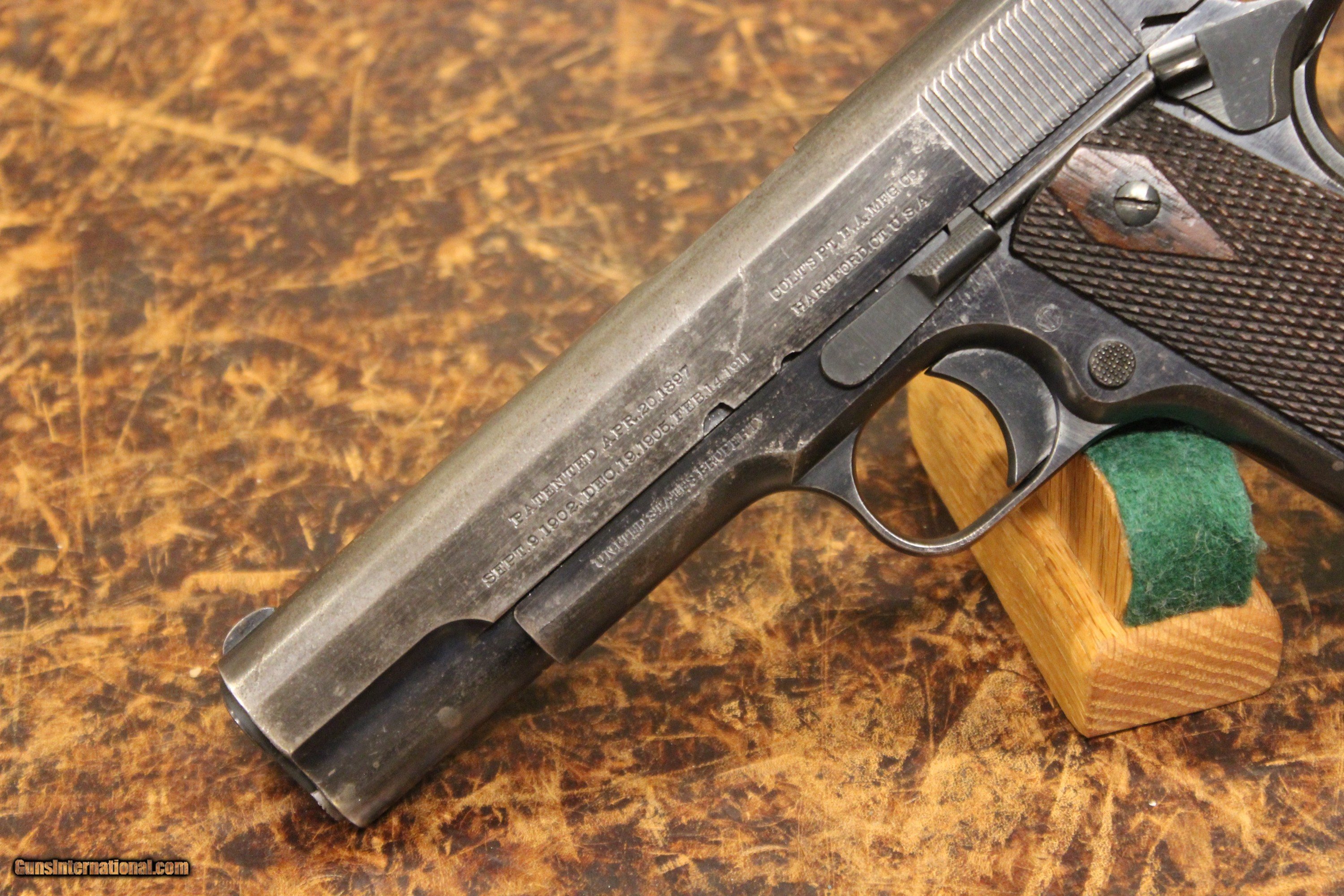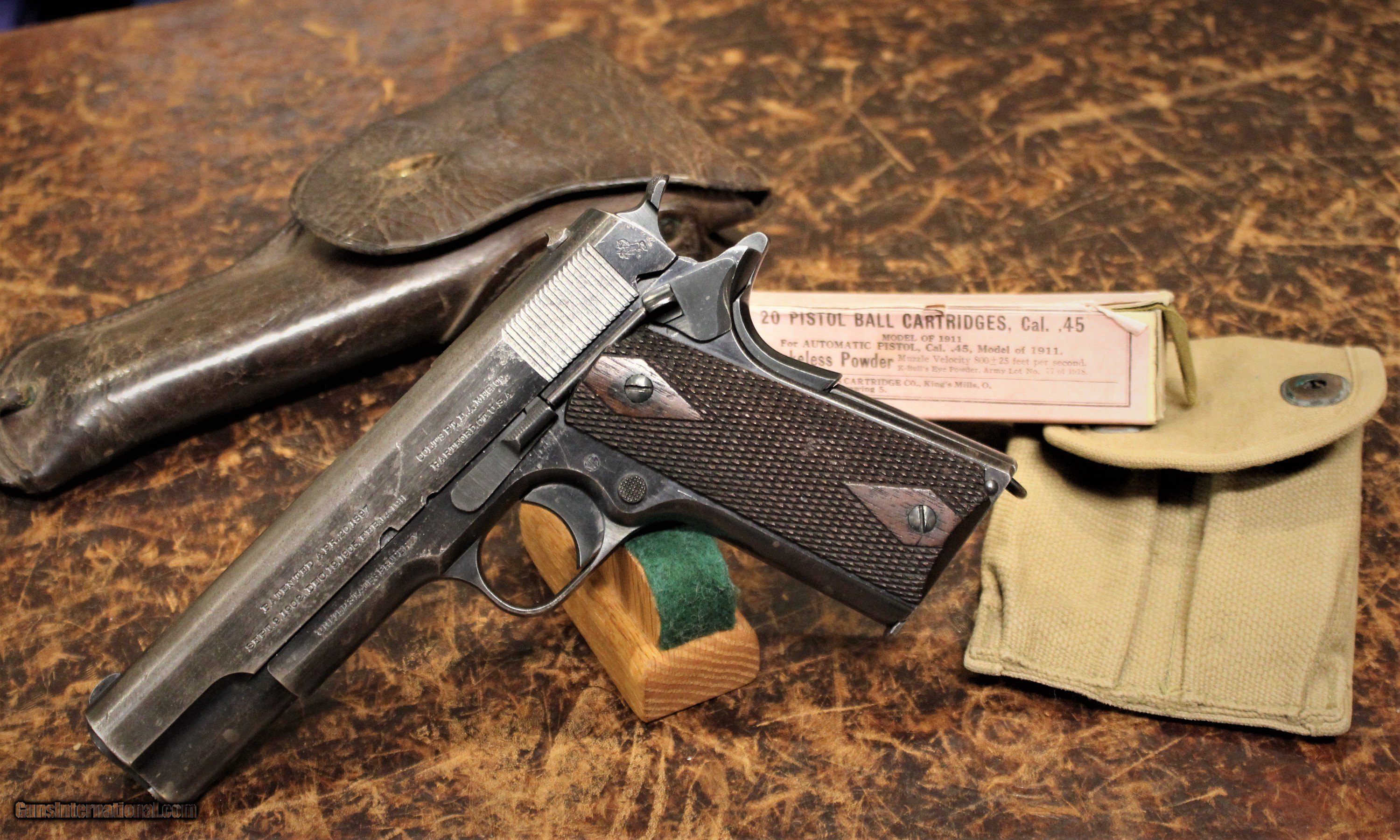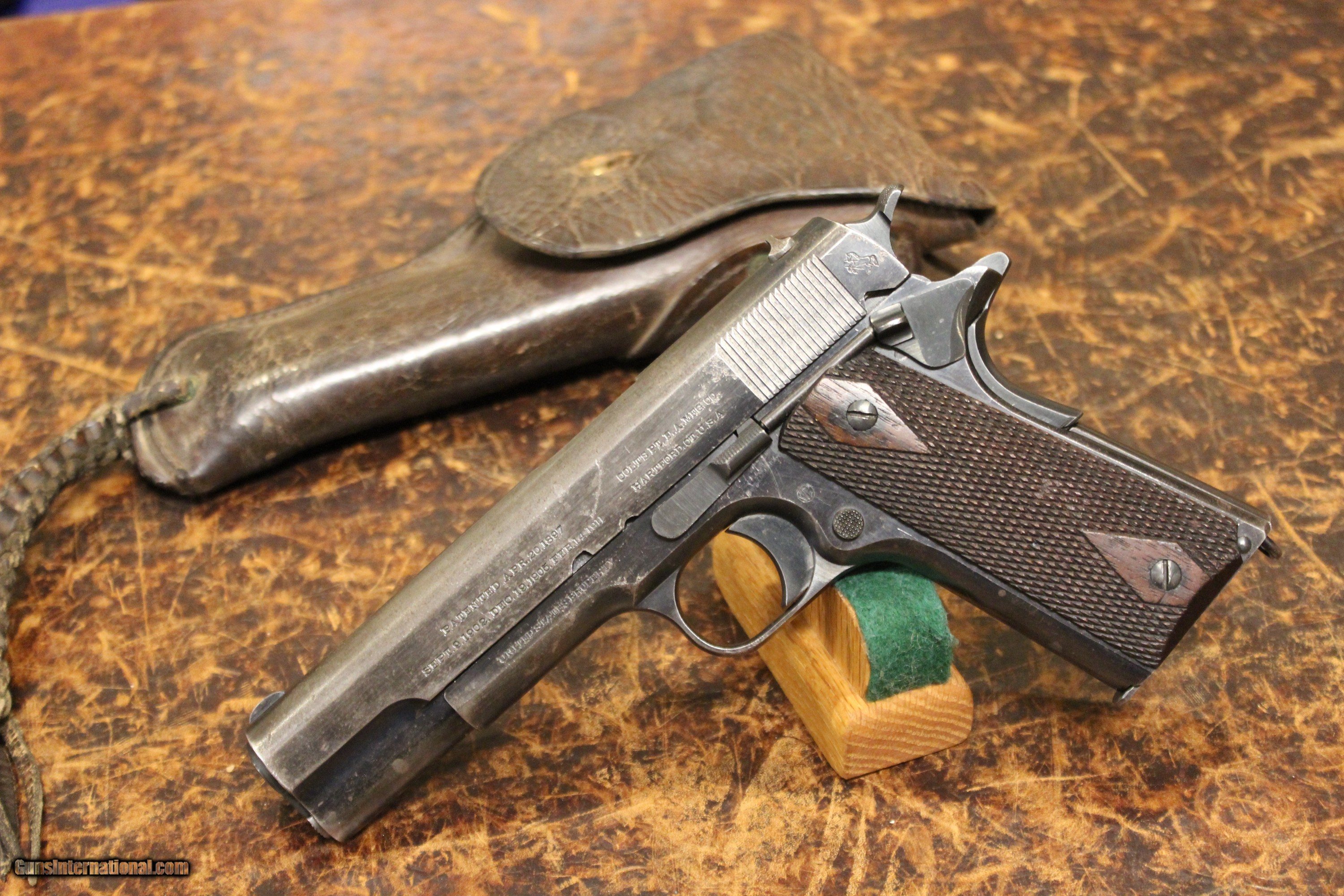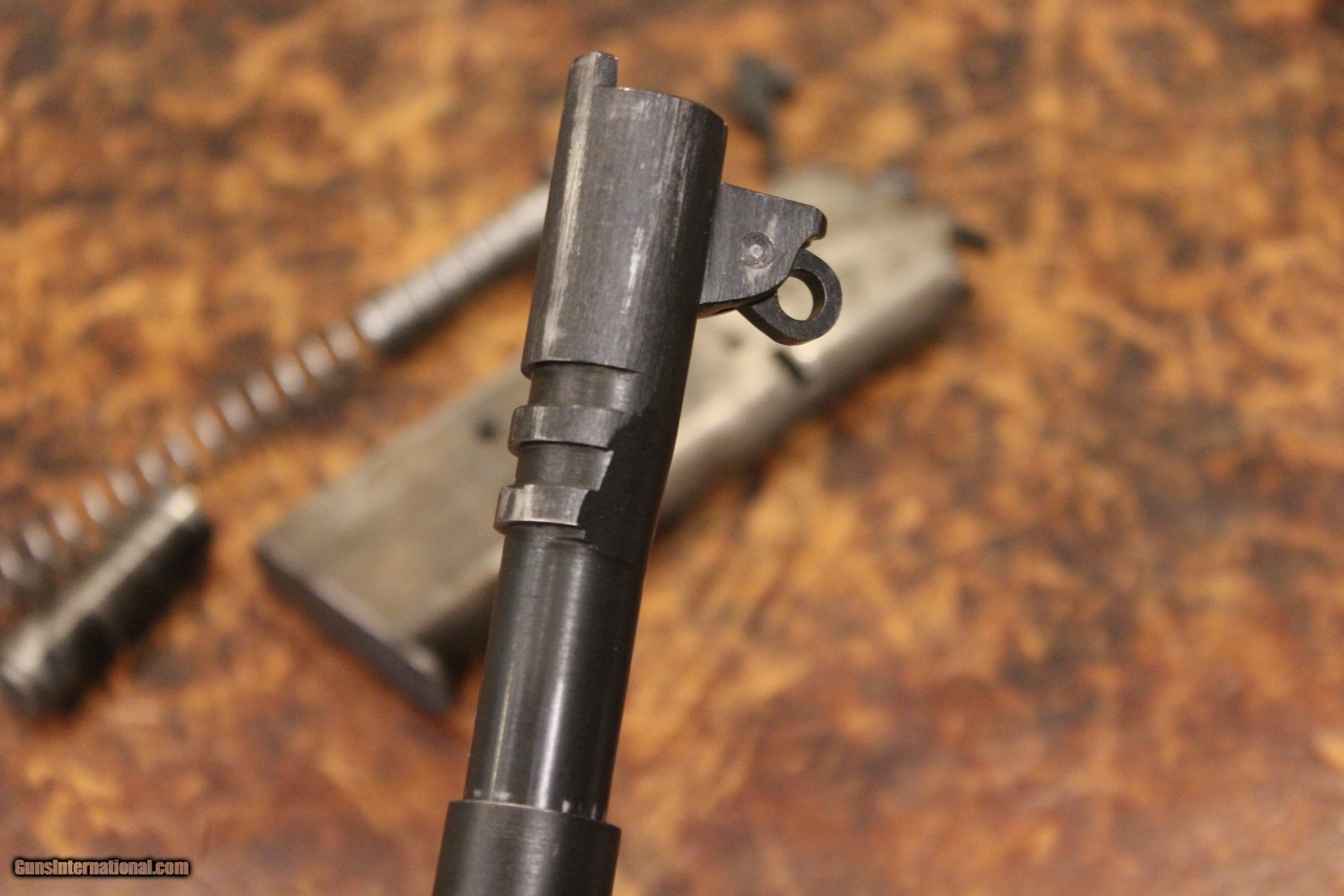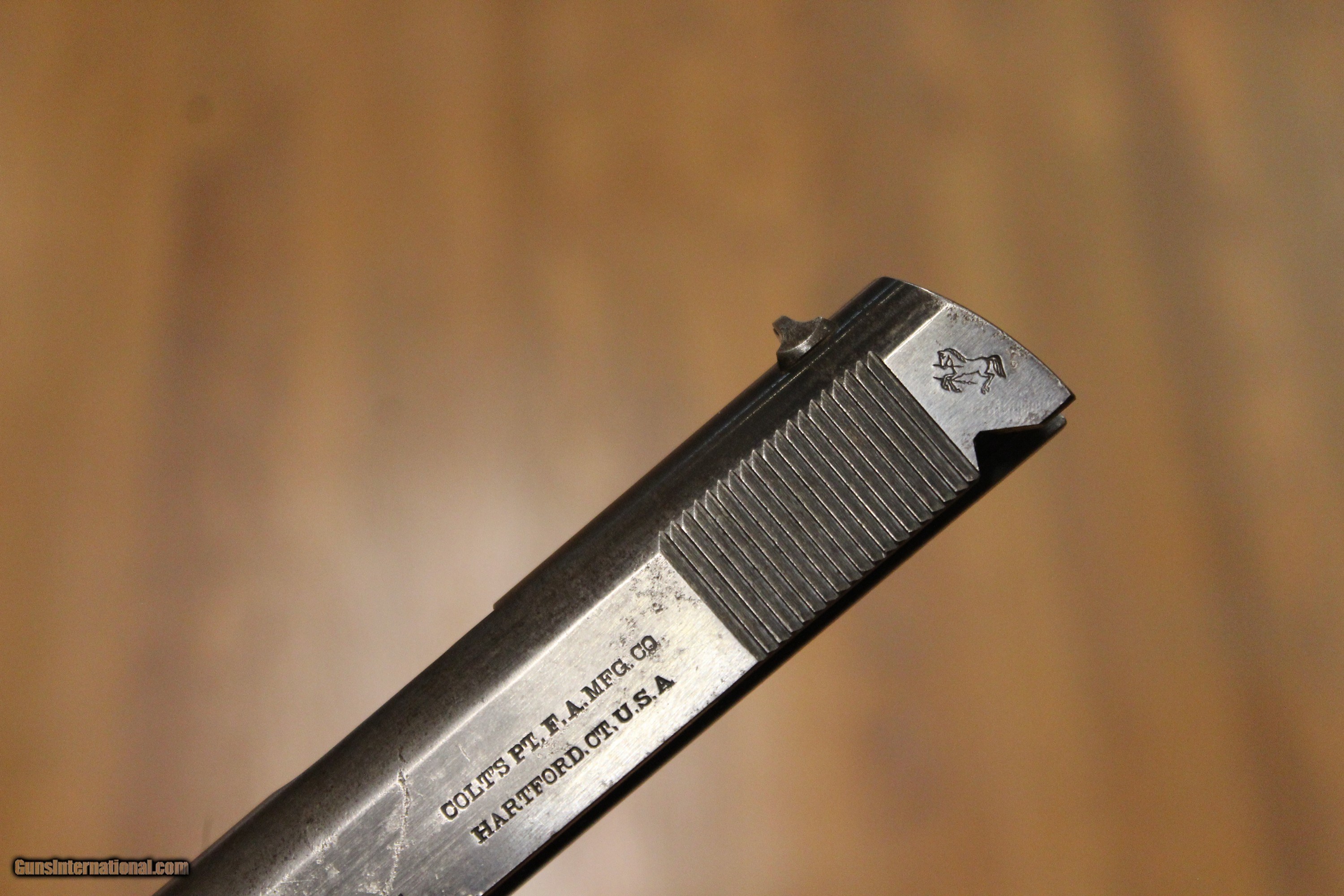 Description: COLT 1911 ARMY MODEL,BUILT IN 1913. ALL APPEARS ORIGINAL,ALL MARKINGS AND STAMPS ARE CORRECT TO THIS ERA. GOOD BORE ON THE ORIGINAL BARREL WHICH IS STAMPED "H" .PLEASE FOLLOW THE PHOTOS COMES WITH ONE TWO TONE MAG AND ONE WWII "S" STAMPED MAG, HOLSTER IN 1916 TYPE BY "SHELLER & ROSSUN",STAMPED J.P.C. SOLD Curio/Relic: Yes |