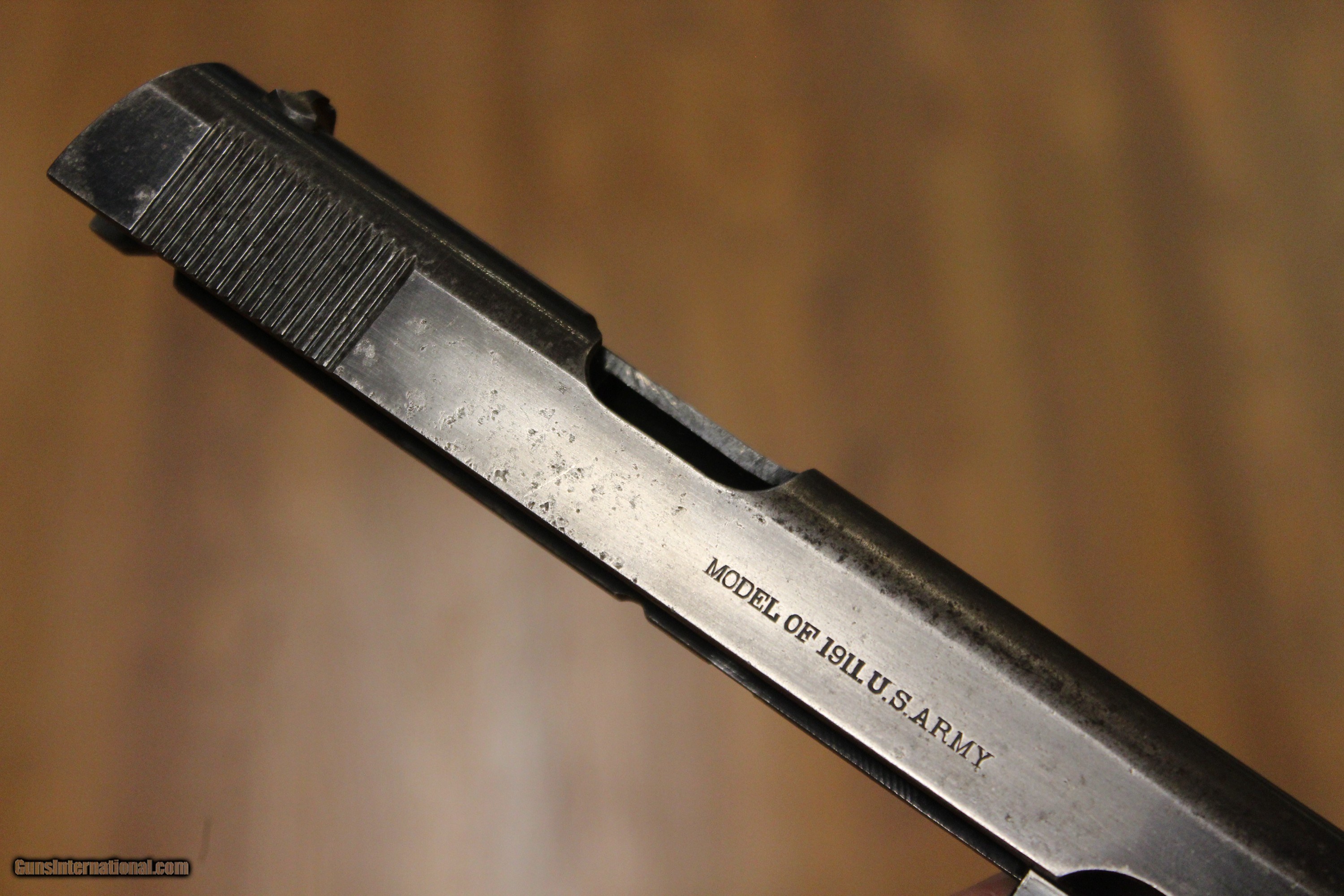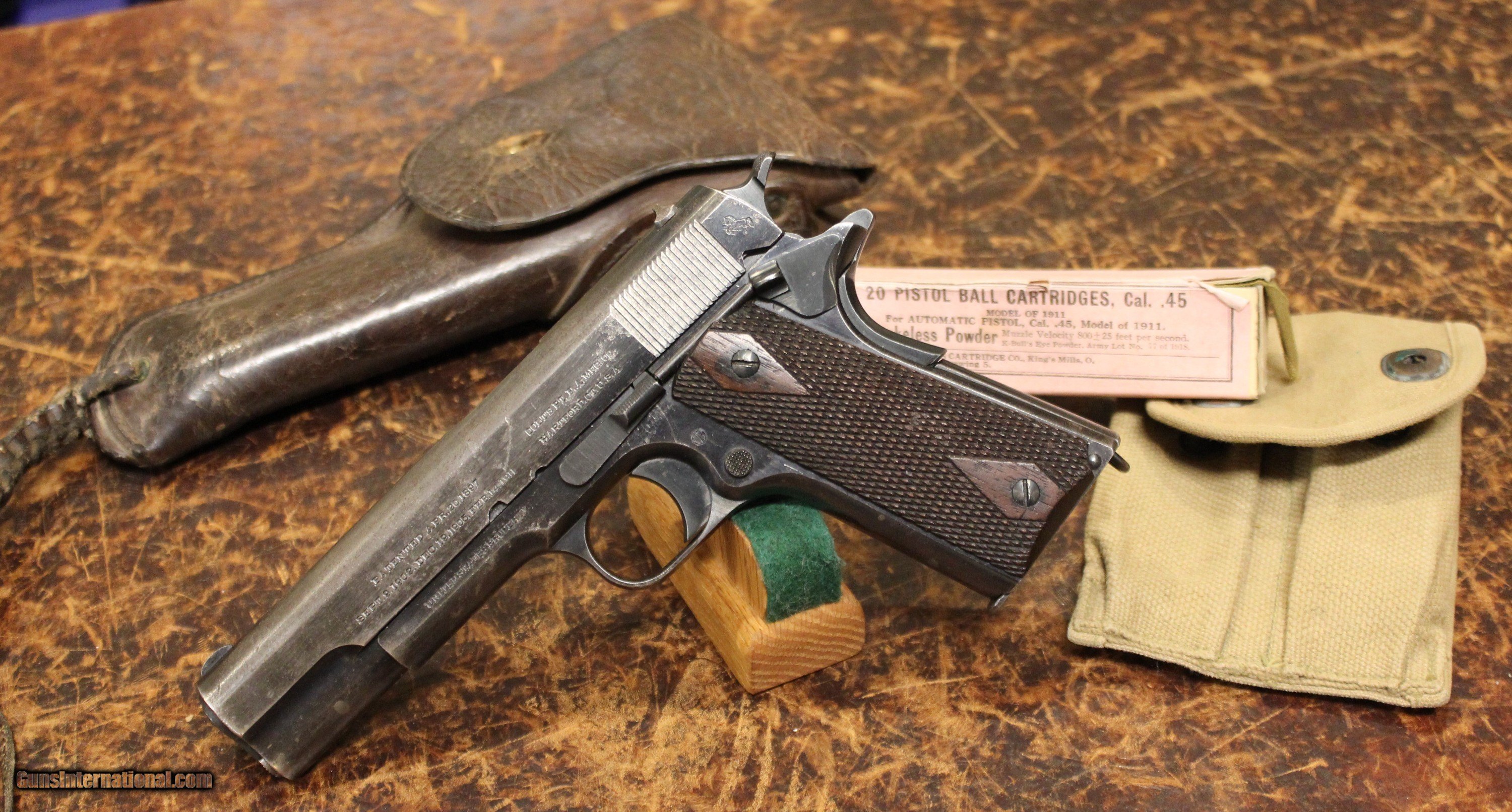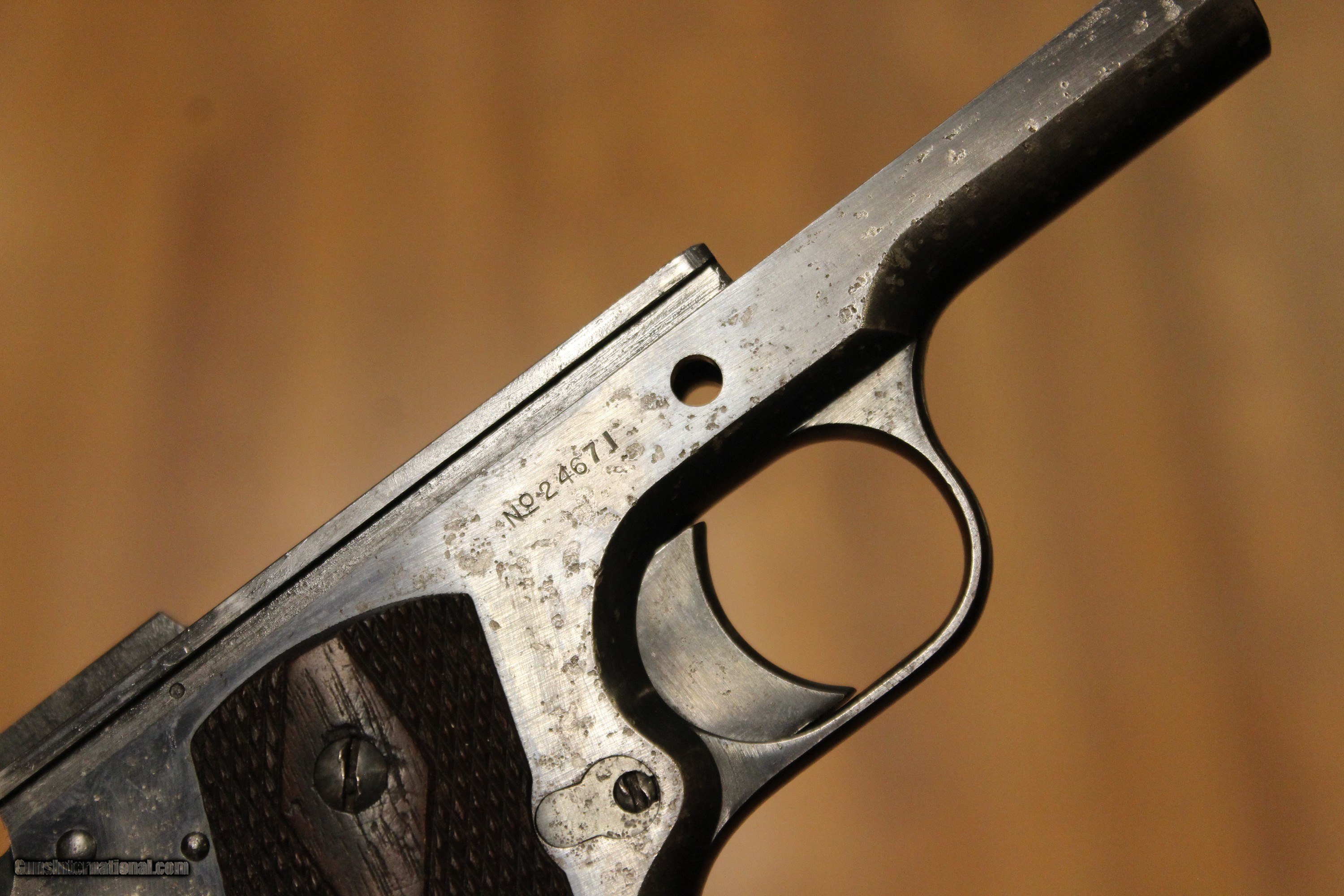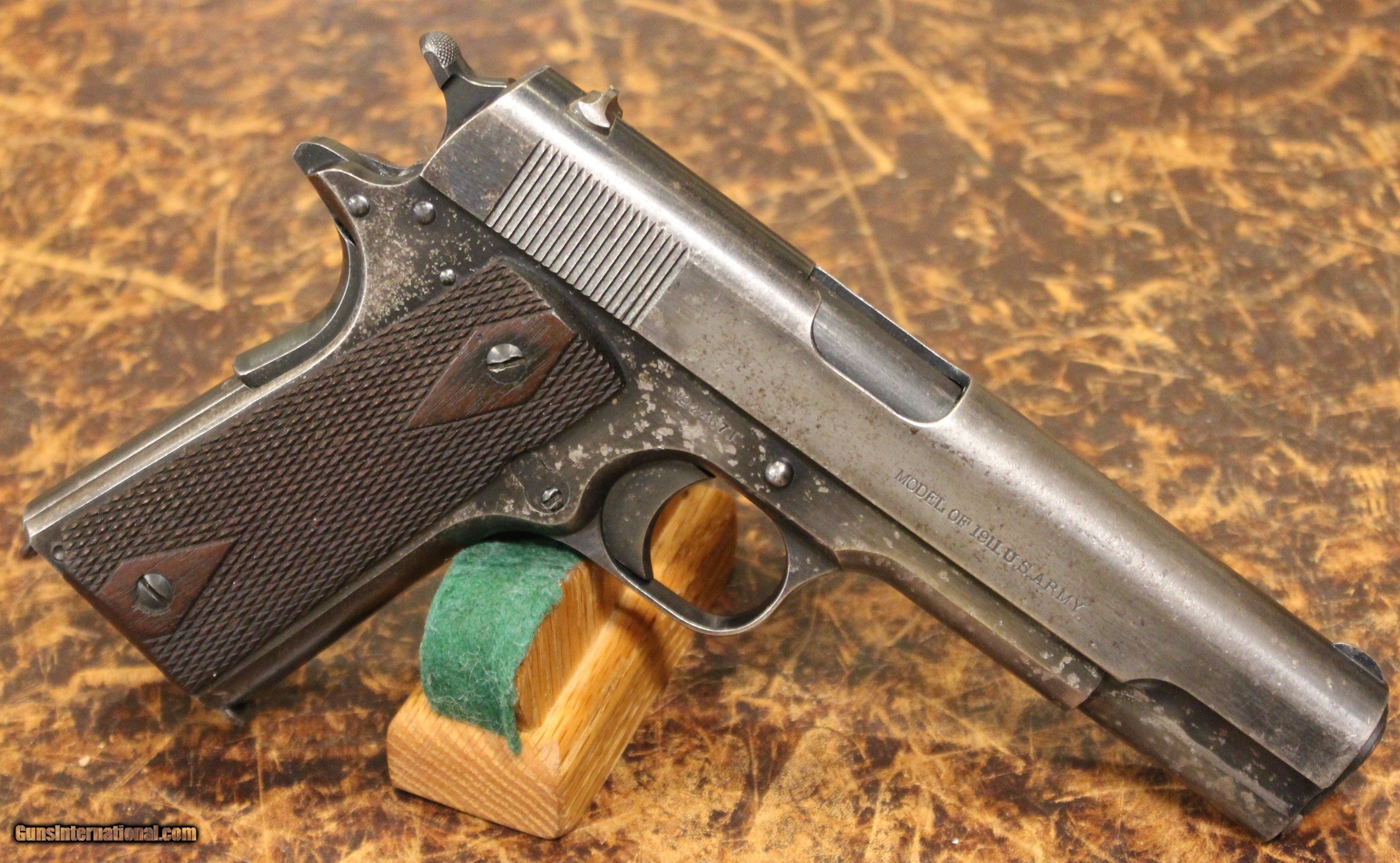 Description: COLT 1911 ARMY MODEL,BUILT IN 1913. ALL APPEARS ORIGINAL,ALL MARKINGS AND STAMPS ARE CORRECT TO THIS ERA. GOOD BORE ON THE ORIGINAL BARREL WHICH IS STAMPED "H" .PLEASE FOLLOW THE PHOTOS COMES WITH ONE TWO TONE MAG AND ONE WWII "S" STAMPED MAG, HOLSTER IN 1916 TYPE BY "SHELLER & ROSSUN",STAMPED J.P.C. SOLD Curio/Relic: Yes |