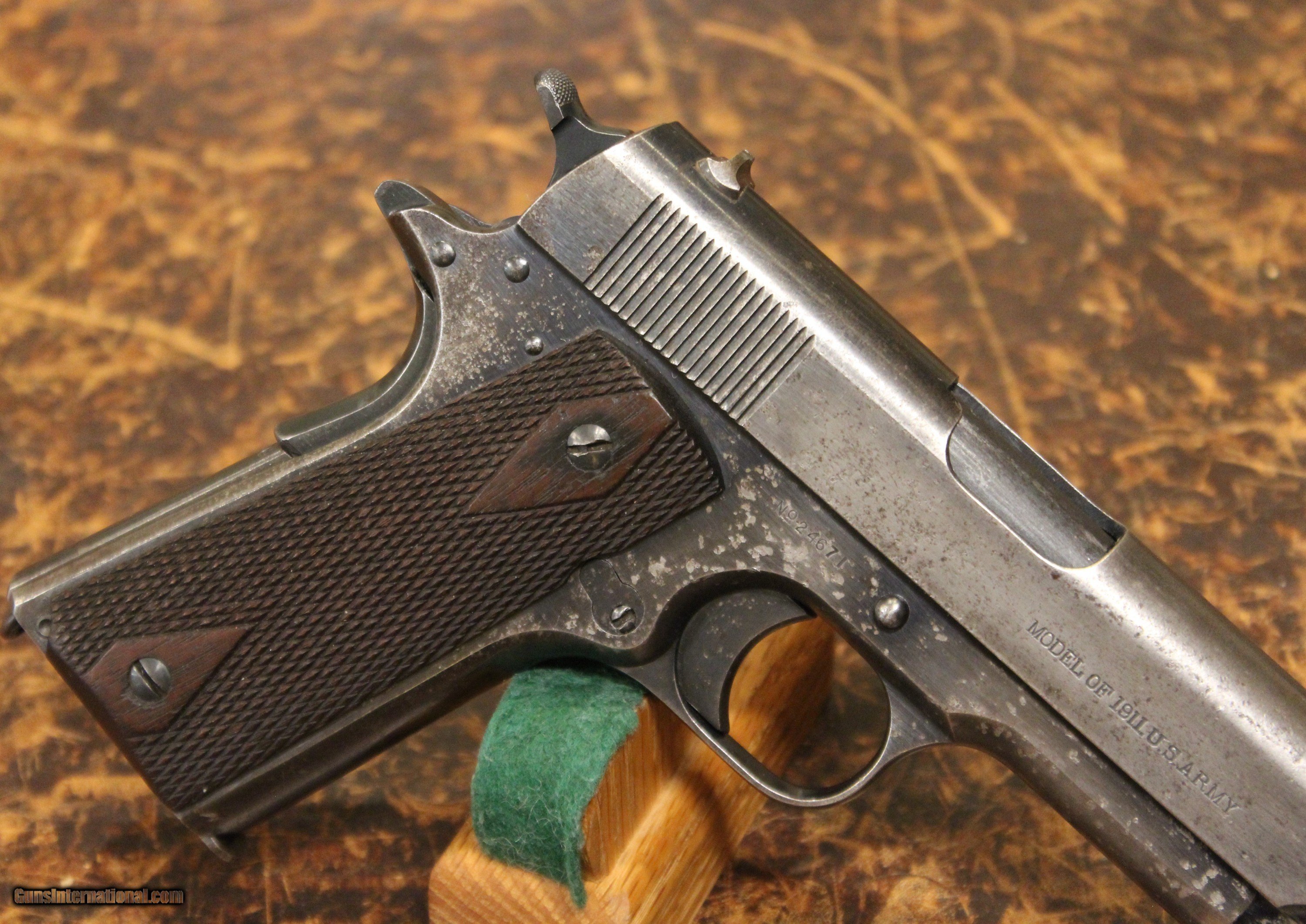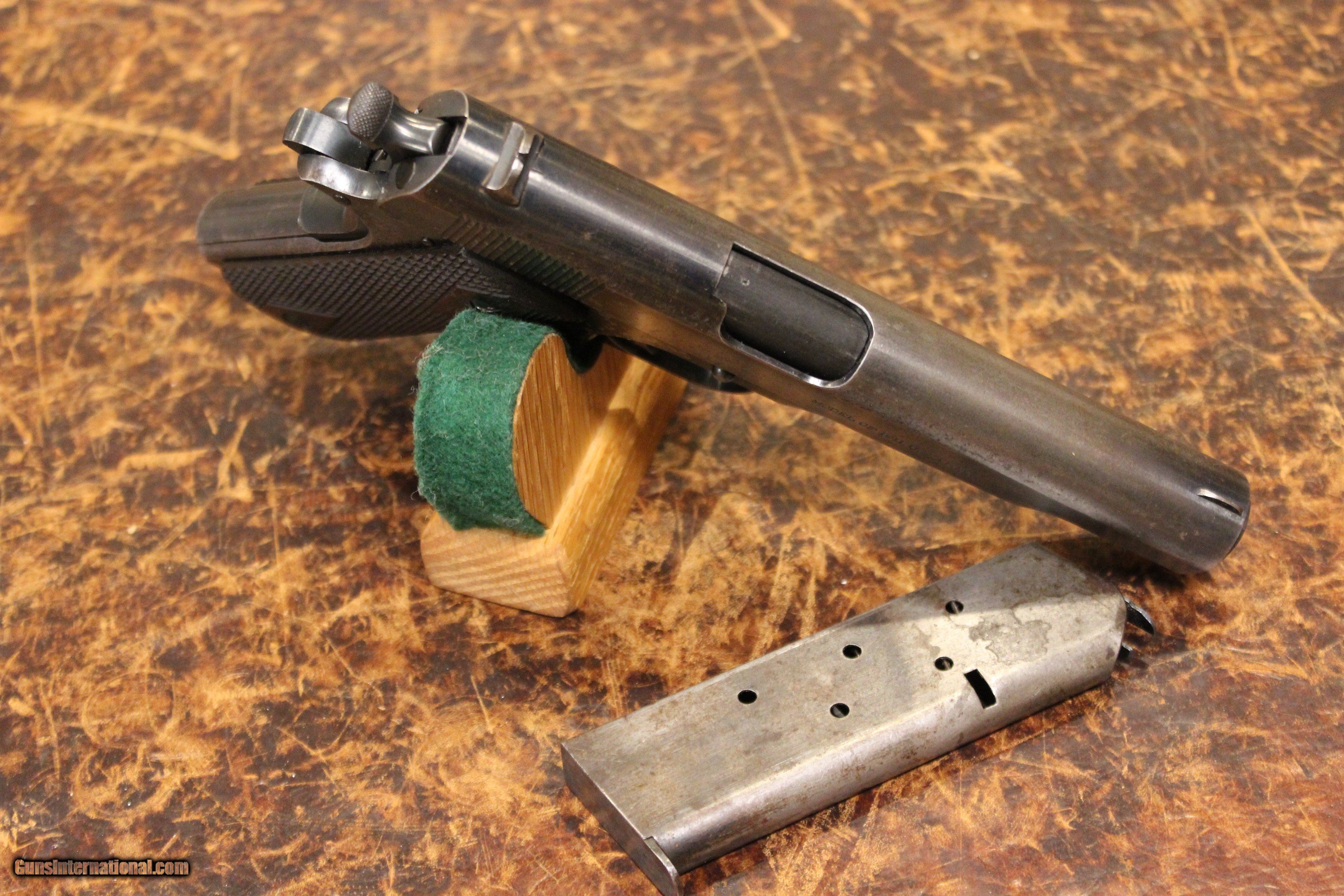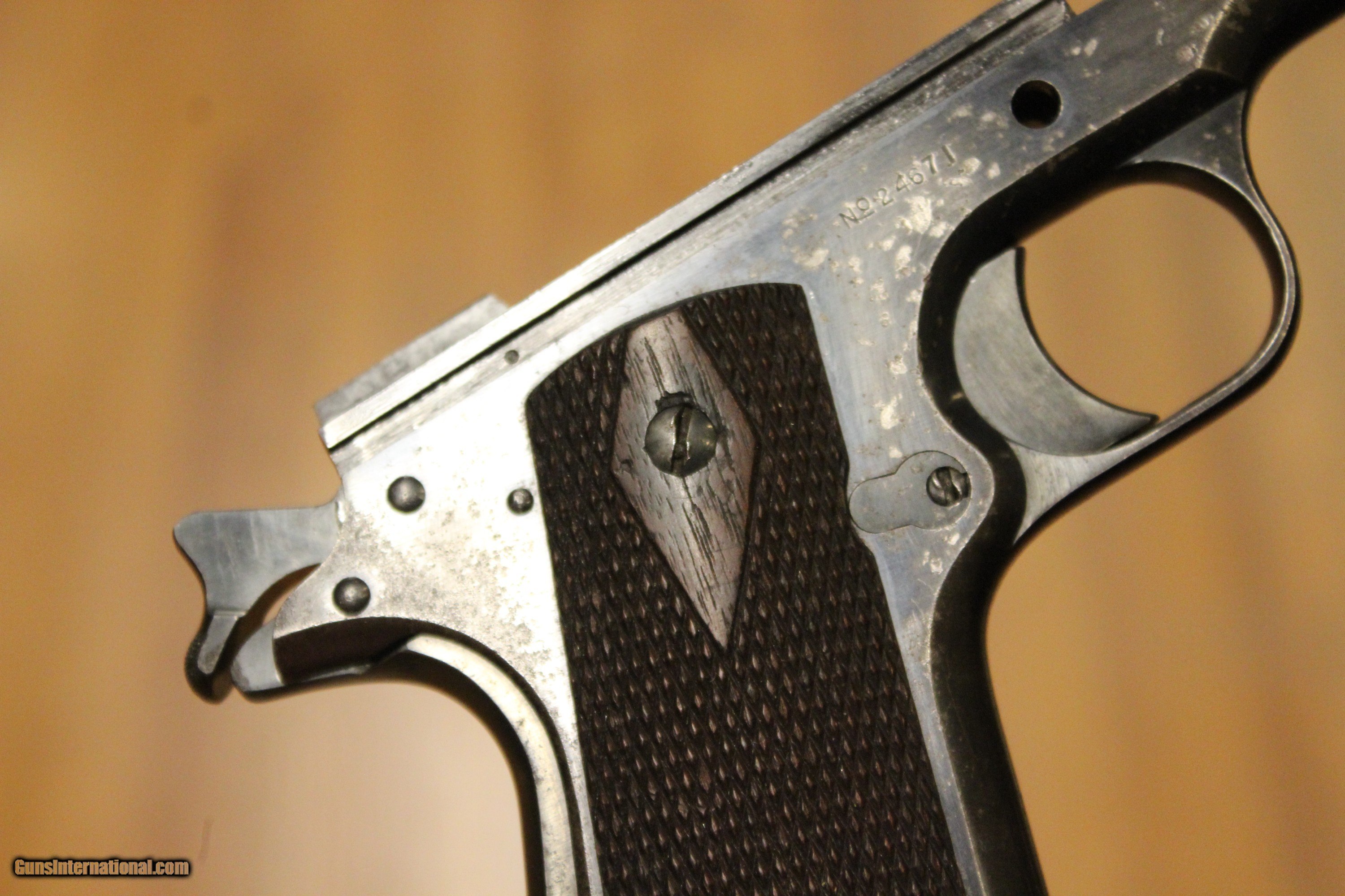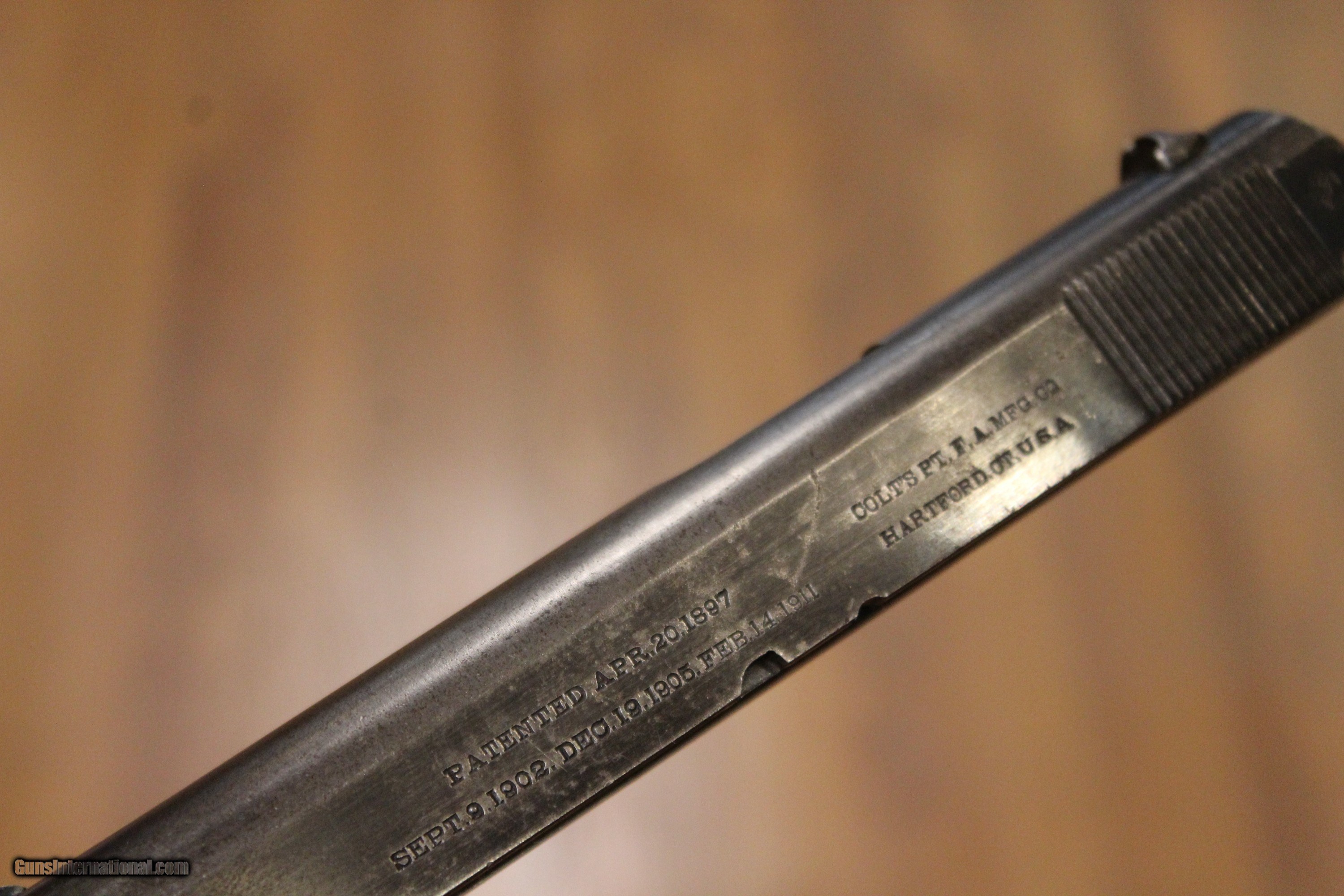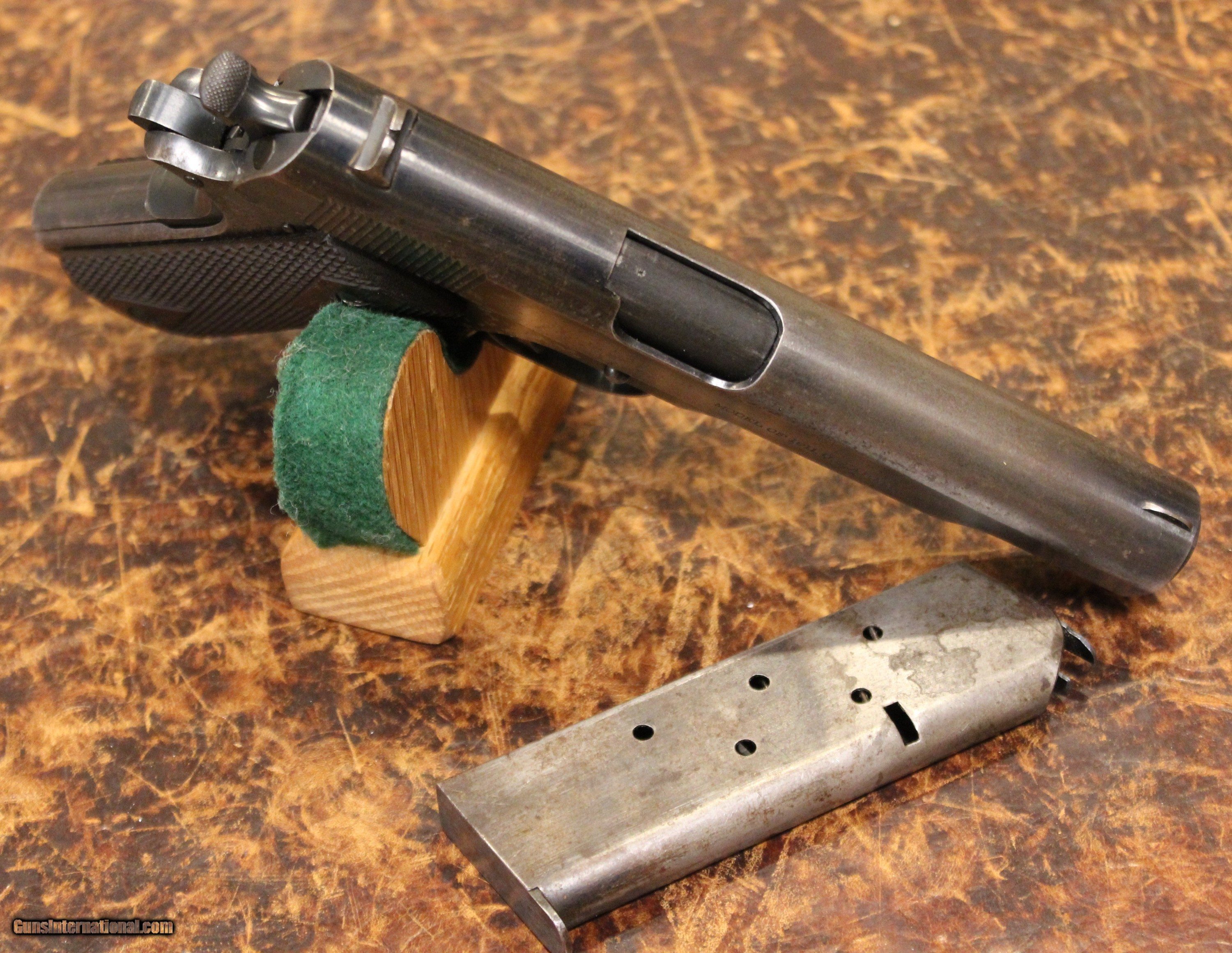 Description: COLT 1911 ARMY MODEL,BUILT IN 1913. ALL APPEARS ORIGINAL,ALL MARKINGS AND STAMPS ARE CORRECT TO THIS ERA. GOOD BORE ON THE ORIGINAL BARREL WHICH IS STAMPED "H" .PLEASE FOLLOW THE PHOTOS COMES WITH ONE TWO TONE MAG AND ONE WWII "S" STAMPED MAG, HOLSTER IN 1916 TYPE BY "SHELLER & ROSSUN",STAMPED J.P.C. SOLD Curio/Relic: Yes |