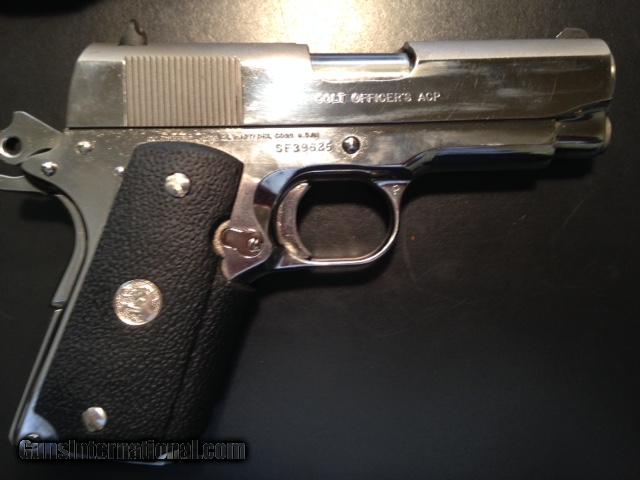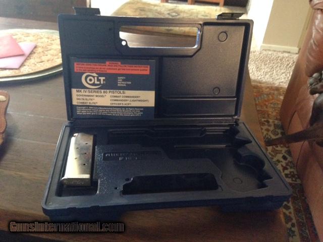 Description: Original owner early 90s. Shot maybe 20 boxes through it. Excellent condition. Inspect at Scottsdale Gun Club. Original case & manual. Bianchi holster & 3 mags. Call 602-625-4222 to buy. SOLD Manufacturer: Colt Model: MK IV Series 80 Officers ACP 45 Serial Number: SF39625 Caliber Info: 45 Finish: Nickel Plated |