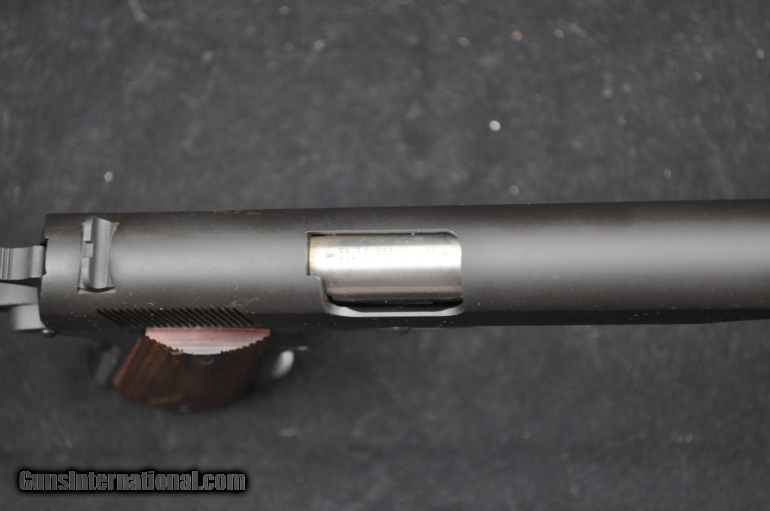 Description: New In Box Colt Government Model (Series 80) in .38 Super. This gun is factory blue with beautiful rosewood diamond checkered grips. Full size 5 inch barrel with military style white sights on slide. Standard grip safety with a flat backstrap. Comes in factory blue box with 2 factory magazines (9 rnds.) and a box of .38 Super ammo. SOLD |