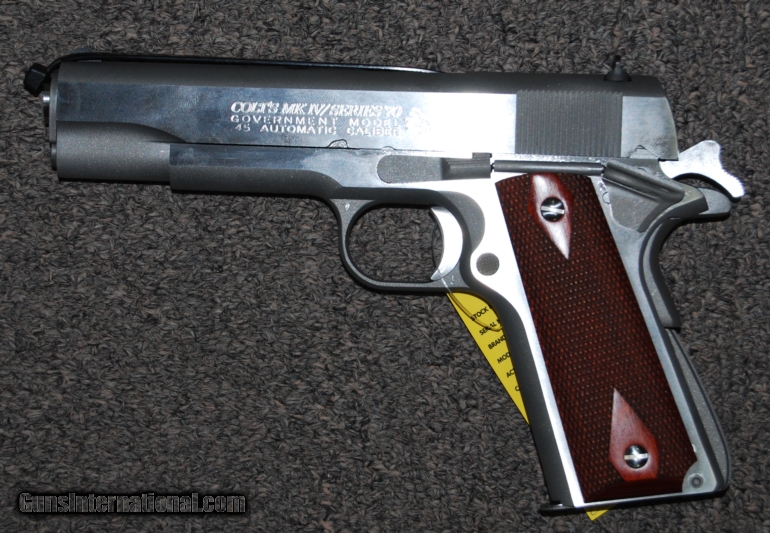 Description: Colt Government Model Series 70 stainless comes with 2 mags, box. Used only 100 rounds were fired through the gun. The gun is very clean. Any questions please call 610-630-7468. Shipping $35.00 SOLD |