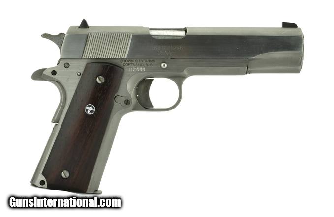 Description: Crown City Condor .45 ACP caliber pistol. Unusual stainless 5” 1911. Very good condition.