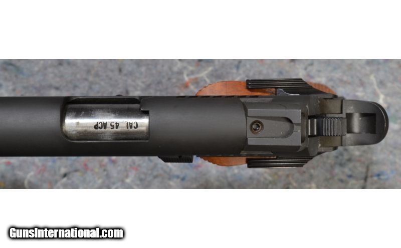 Description: SOLD Caliber Info: .45 ACP Metal Condition: Excellent with some wear on receiver Wood Condition: Excellent Bore Condition: Very good with very good rifling Barrels: 5 Stock: Checkered wood grips Weight: 2lbs 8oz Sights: Factory sights Extras: Comes with box Item Location: Wichita, KS |
