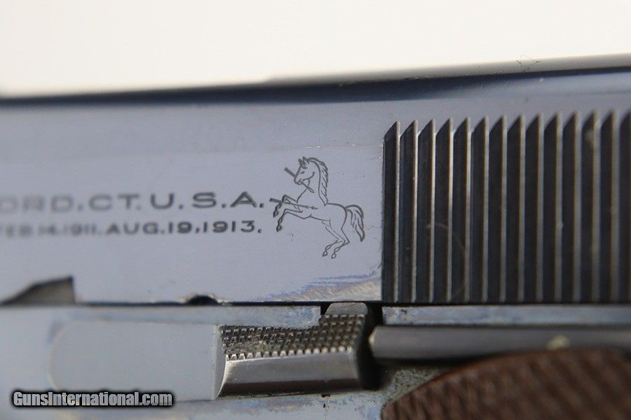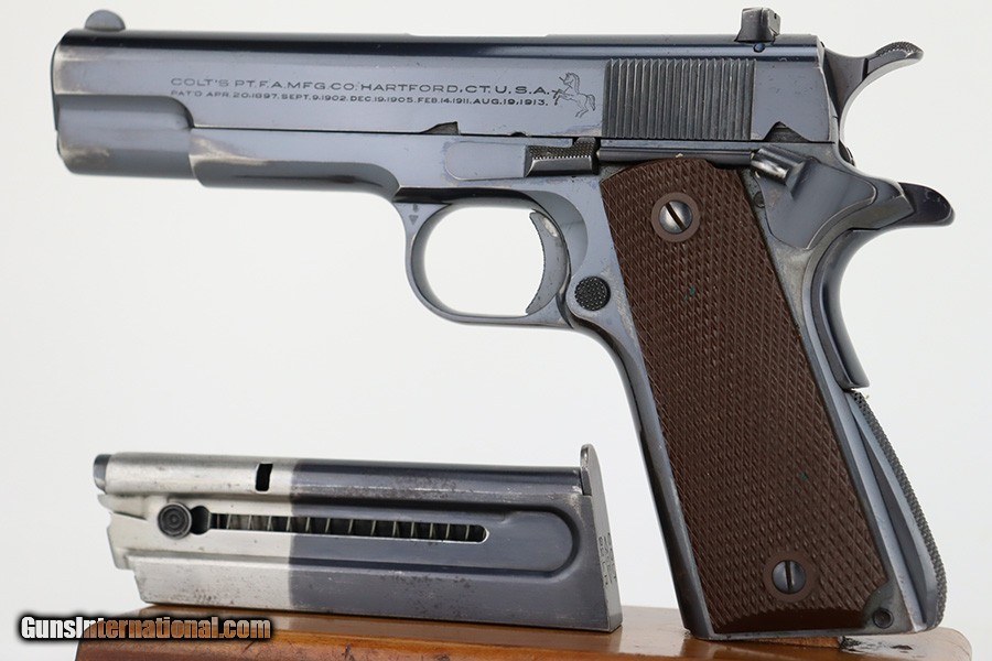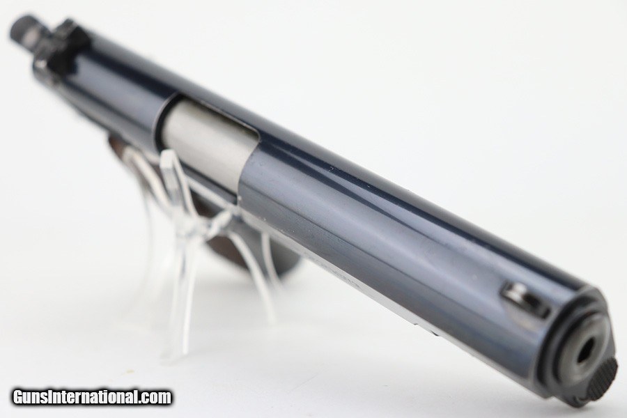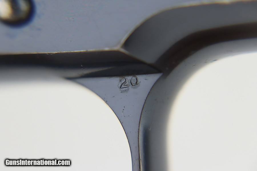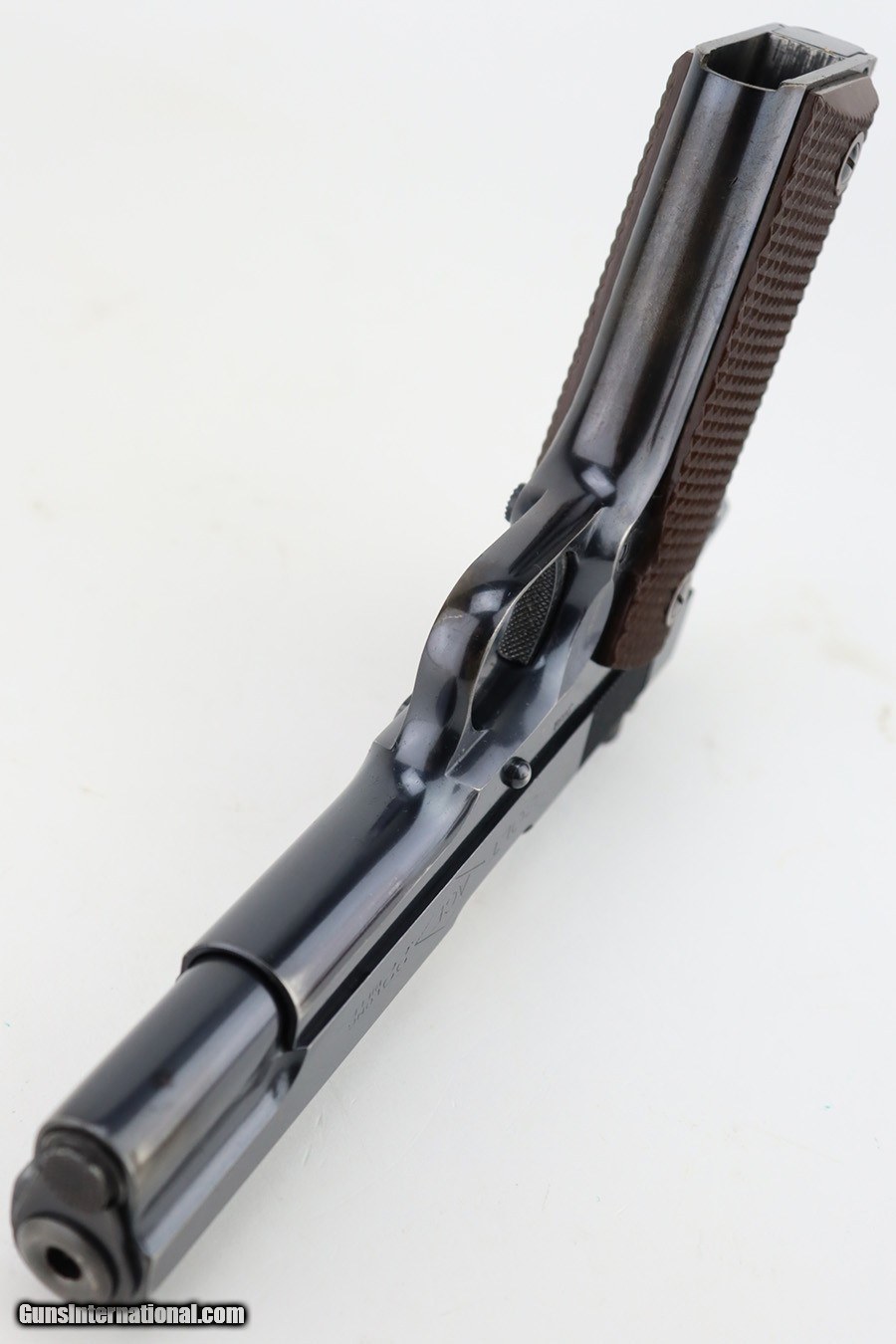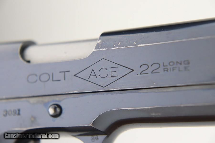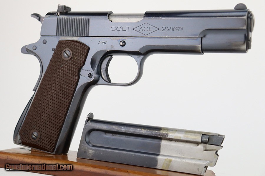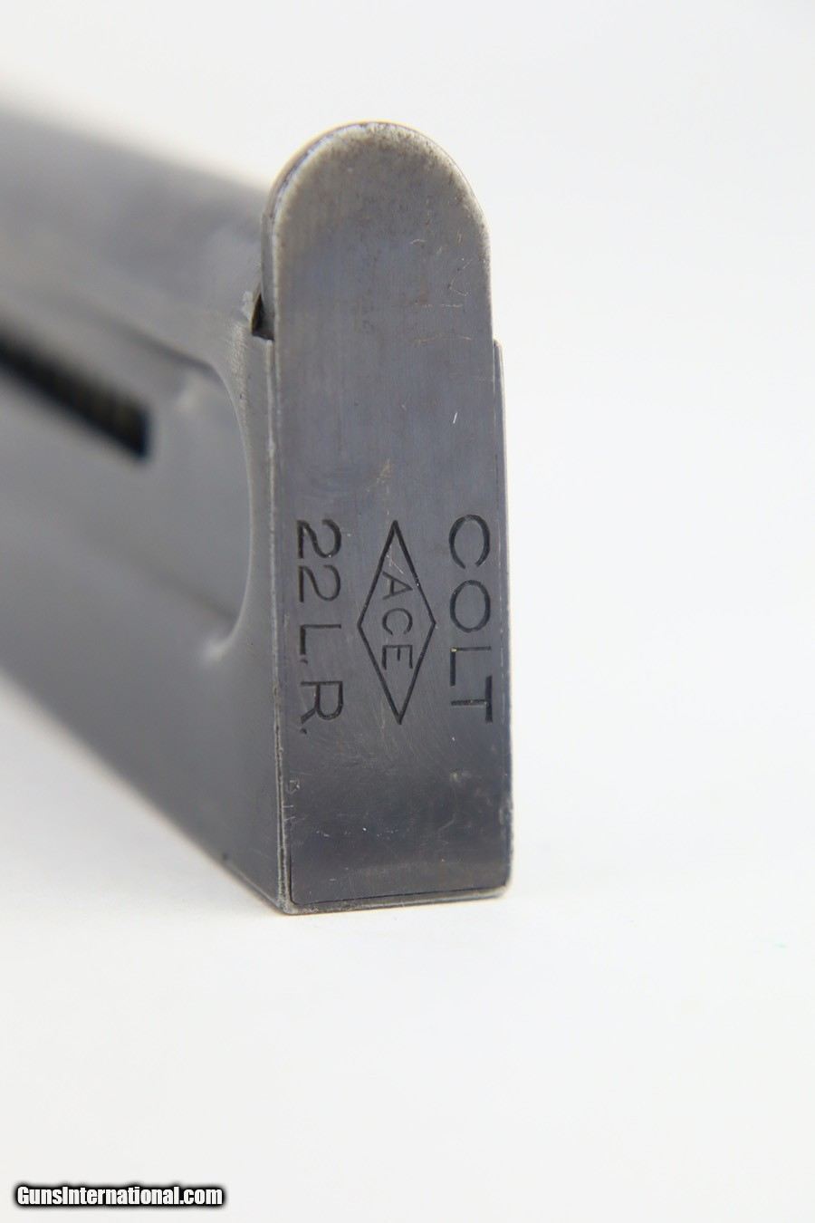 Description: This is an excellent, original Colt ACE from 1931, the first year of production. It has 93-94% of the high-polish blue remaining, with minor thinning and patina on the front strap, and somewhere on the left edges of the pistol. Minty bore and grips. Correct magazine. Excellent function mechanically. SOLD Curio/Relic: Yes Handgun Caliber: .22 Long Rifle |