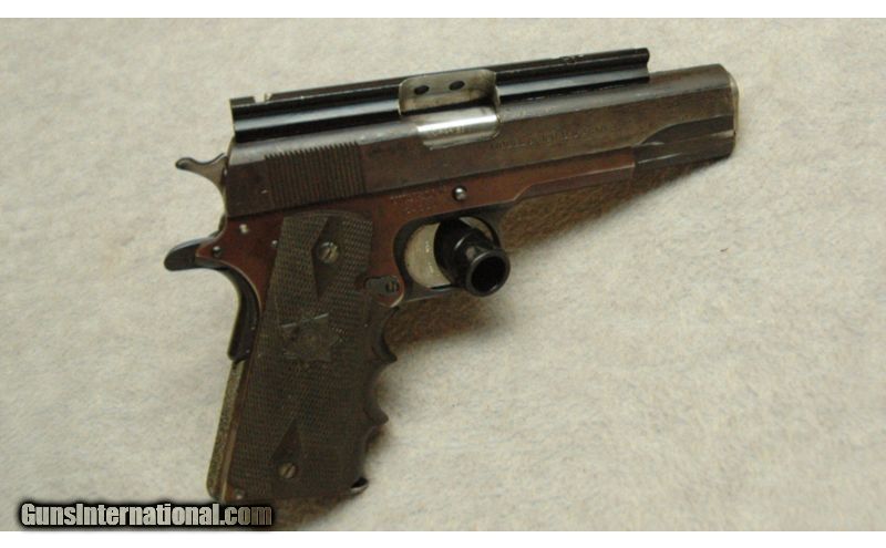 Description: Essex Model 1911 Pistol .45 Auto. Good condition, with one mag. Colt slide on Essex frame, scope mounting rail installed. A good choice for target practice or bullseye type handgun target matches. SOLD Caliber Info: .45 Auto. Chambers: Semi auto. Metal Condition: Good, some finish wear, small nicks and scratches over most metal. Wood Condition: Grips are in good condition. Bore Condition: Bright. Barrels: 5" Barrel. Triggers: Single action. Stock: Bianchi grips. Weight: 44 Ozs. Sights: Scope mounting rail installed. Extras: With one mag. Item Location: La Vista, NE |