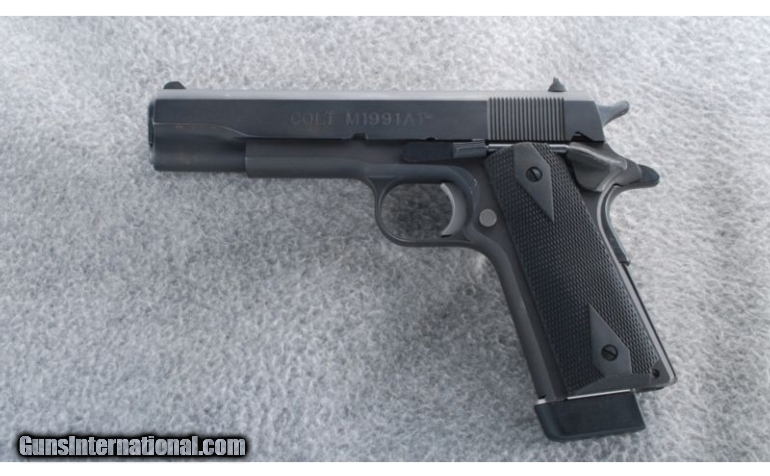 Description: This Essex 1911 has a Colt slide and a Springfield barrel. It does not have the Series 80 firing pin block safety. SOLD Caliber Info: .45 Auto Metal Condition: Holster wear and handling marks. Wear from use. Wood Condition: A couple of scuffs on the rubber grips. Bore Condition: Bright bore with sharp rifling. Barrels: 5 Triggers: Single Action. Serrated, short reach. Stock: Double diamond rubber grips. Butt Pad: Flat, serrated mainspring housing. Weight: 2 lbs. 5 oz. (Empty without magazine.) Sights: Fixed - Blade front with notch rear. Extras: Kimber 8 round KimPro Tac-Mag. Item Location: Gonzales, LA |