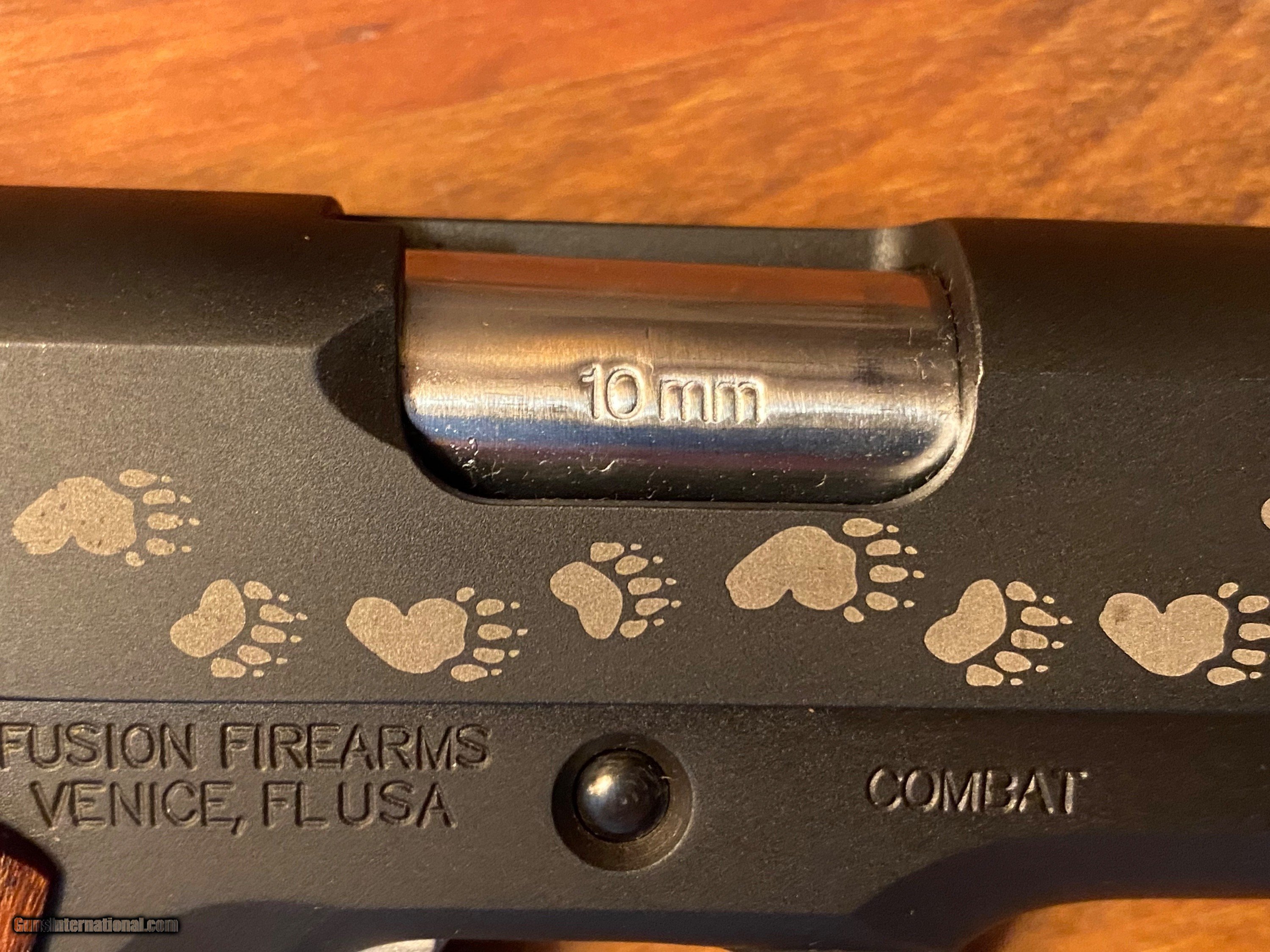 Description: Like New Fusion Combat Limited Edition Bear 1911 chambered in 10mm. comes with Fusion Case! No credit card fees! FedEx 2day shipping $20 SOLD |