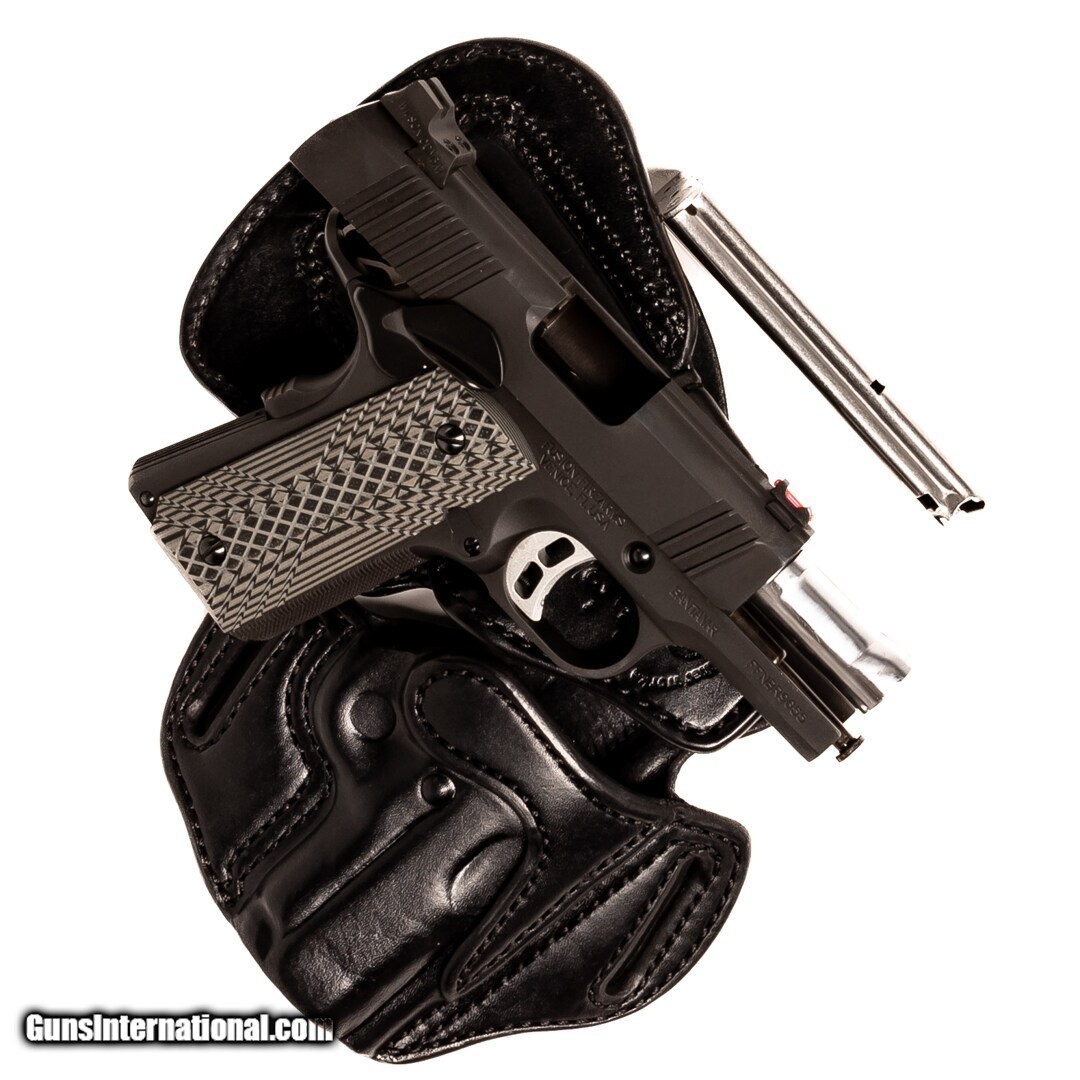 Description: Guns Listing ID: 844361 The Fusion Freedom Series Bantam-R is a top-of-the-line 1911 series 70 Colt design that offers unmatched performance and reliability. Upgraded features ensure that it is easy to handle and comfortable to carry, while the all-steel construction is designed to withstand even the harshest conditions. With its combination of classic design and modern upgrades, the Freedom Series Bantam-R is the perfect choice for concealed carry. Whether you‚‚re a seasoned shooter or just starting out, it is sure to exceed your expectations and provide you with reliable performance for years to come. Purchase includes a nylon zippered carrying case, owner‚‚s manual, two 8-round magazines, and two right-handed leather holsters (one OWB and one IWB). Get the best bang for your buck when you get a Certified Used Firearm . When you see the Certified Used stamp on any of our firearms, you can be confident that you’re getting exactly what you want – a gun only in very good to excellent condition and held to the highest quality standard. All Certified Used Guns come with a ‘no questions asked’ return policy . PLUS, ALL CERTIFIED USED GUNS SHIP FRE SOLD Manufacturer: FUSION FIREARMS Model: BANTAM-R Caliber Info: 9MM LUGER (9X19 PARA) Condition: Used - Certified Barrels: 3 BARREL Finish: BLACK |
