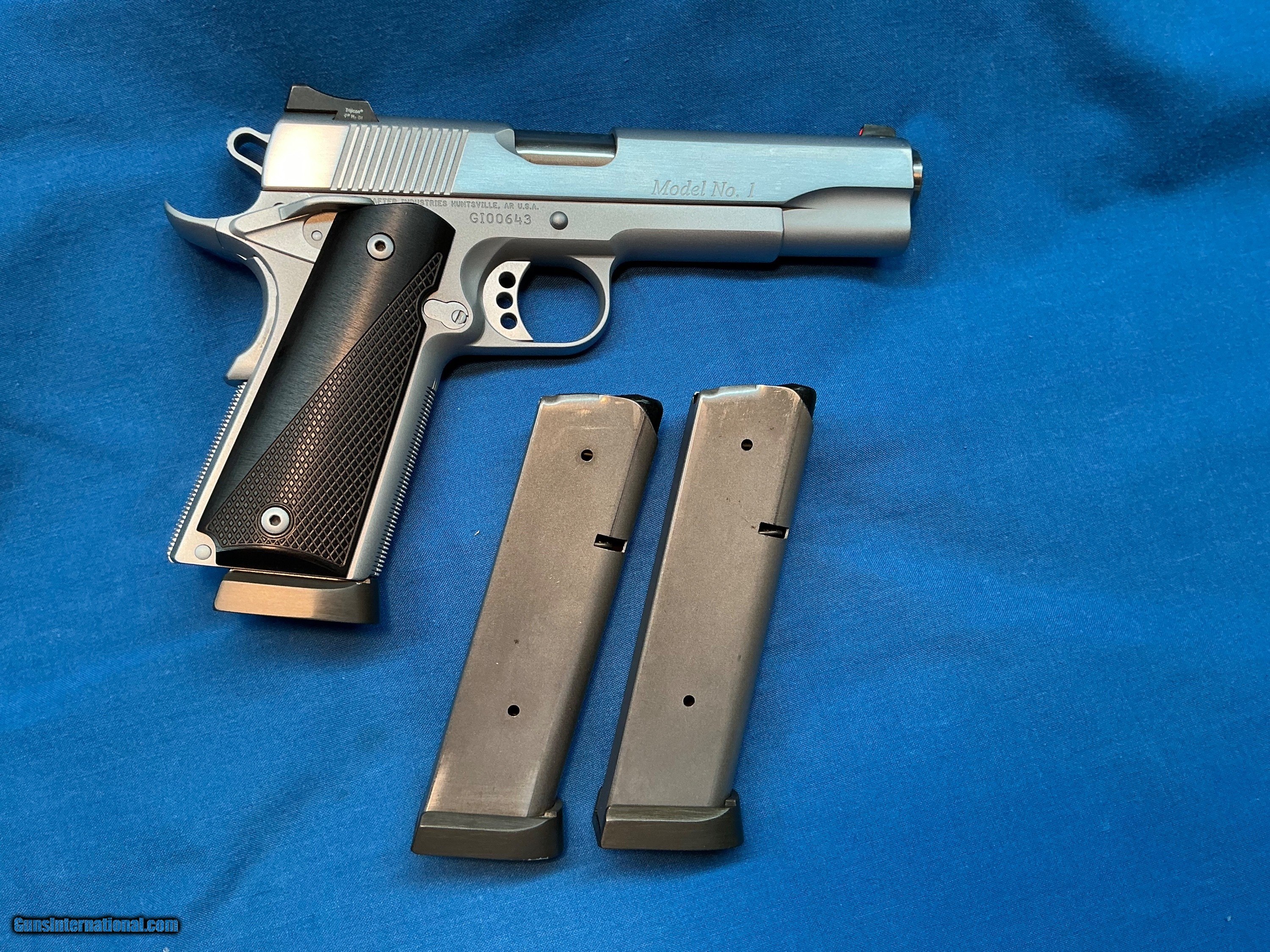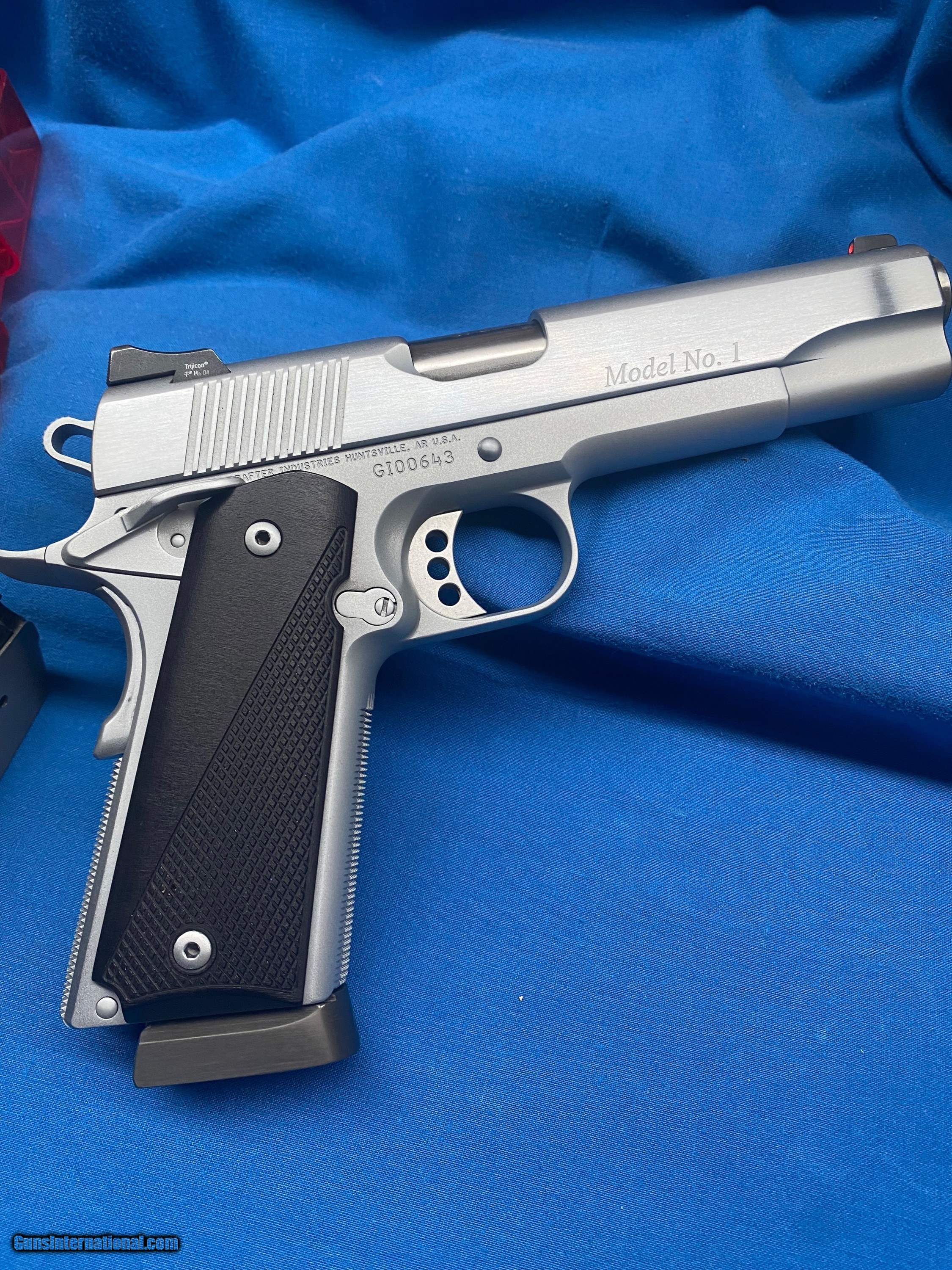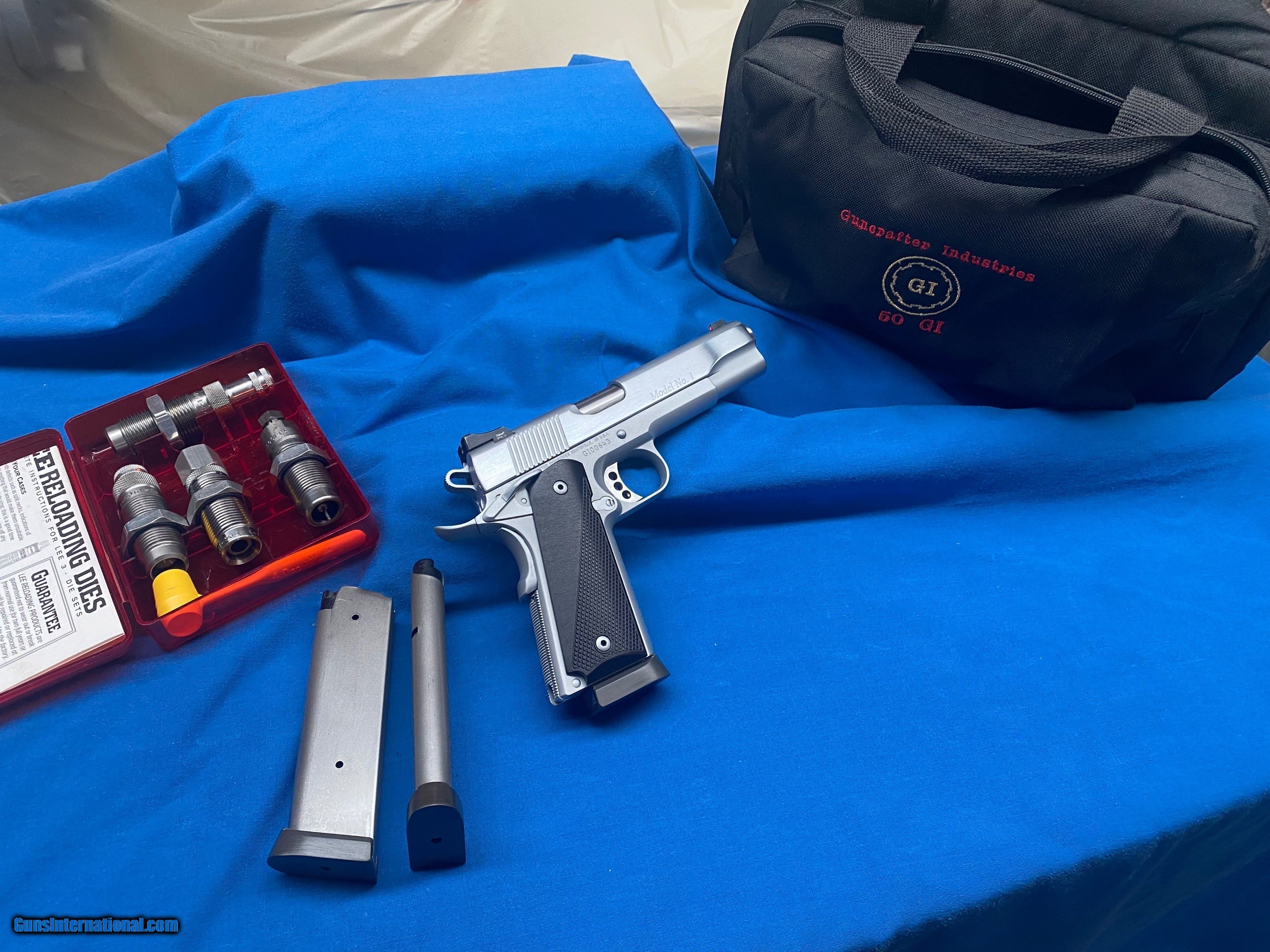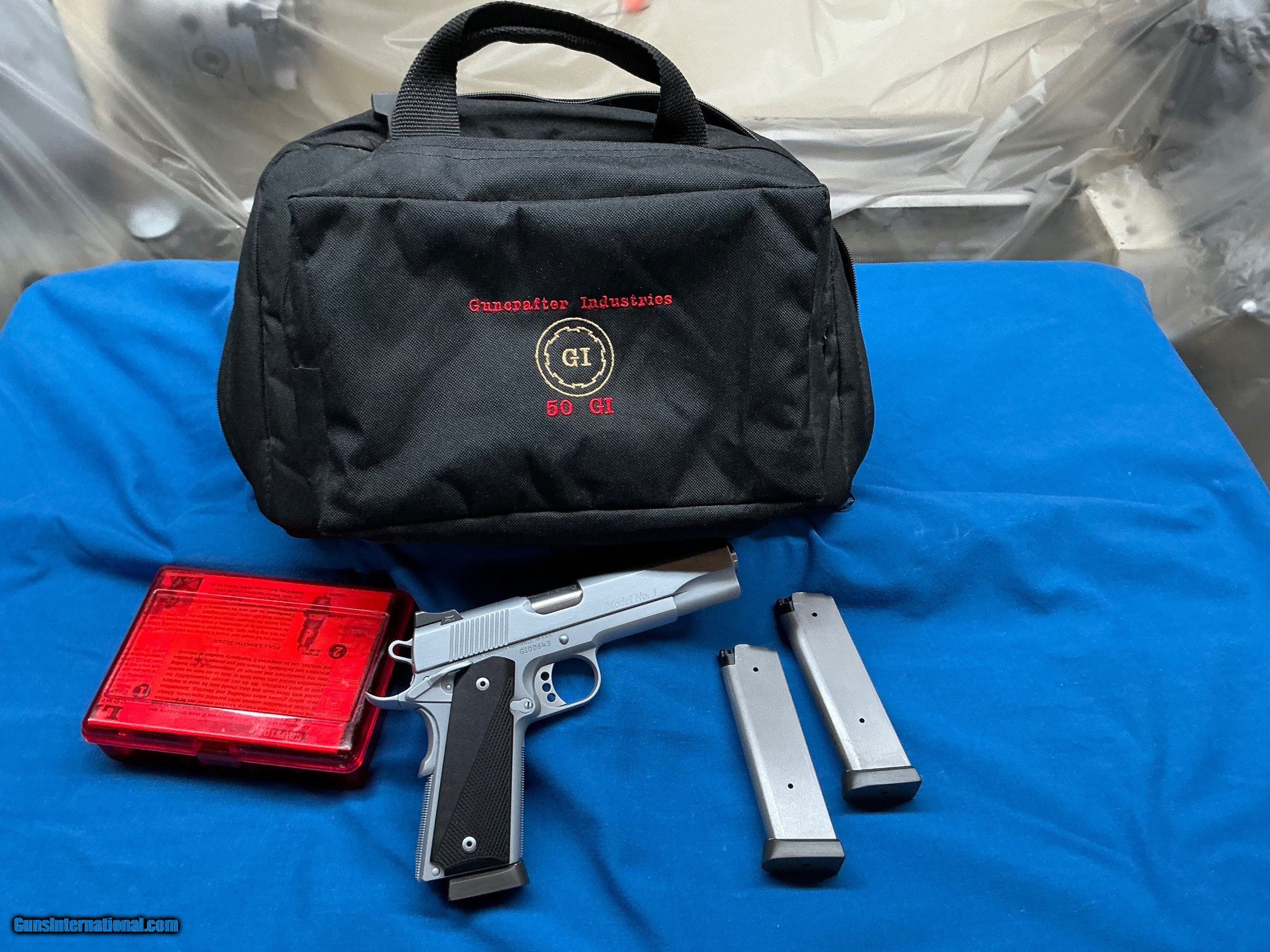 Description: Early production GUNCRAFTER Industries Model 1, 1911 style pistol in .50GI caliber, 4 die set, 5 full boxes, 1 partial box of originally loaded by GUNCRAFTER Ind. ammo in plastic boxes, original Heine straight 8 sights are no longer glowing but dot's have been enhanced for better sight picture,(see photo), soft original embroidered carry bag, 3- 50 GI caliber specific magazines included. Shipping of ammo will be under seperate package and all shipping and insurance for both, will depend on location of transferring FFL Dealer with costs being a bit more than typical. Please contact us with any questions prior to purchase. Use the G.I. Email system in place or call number as listed. Price: $4,300.00 Contact Seller |