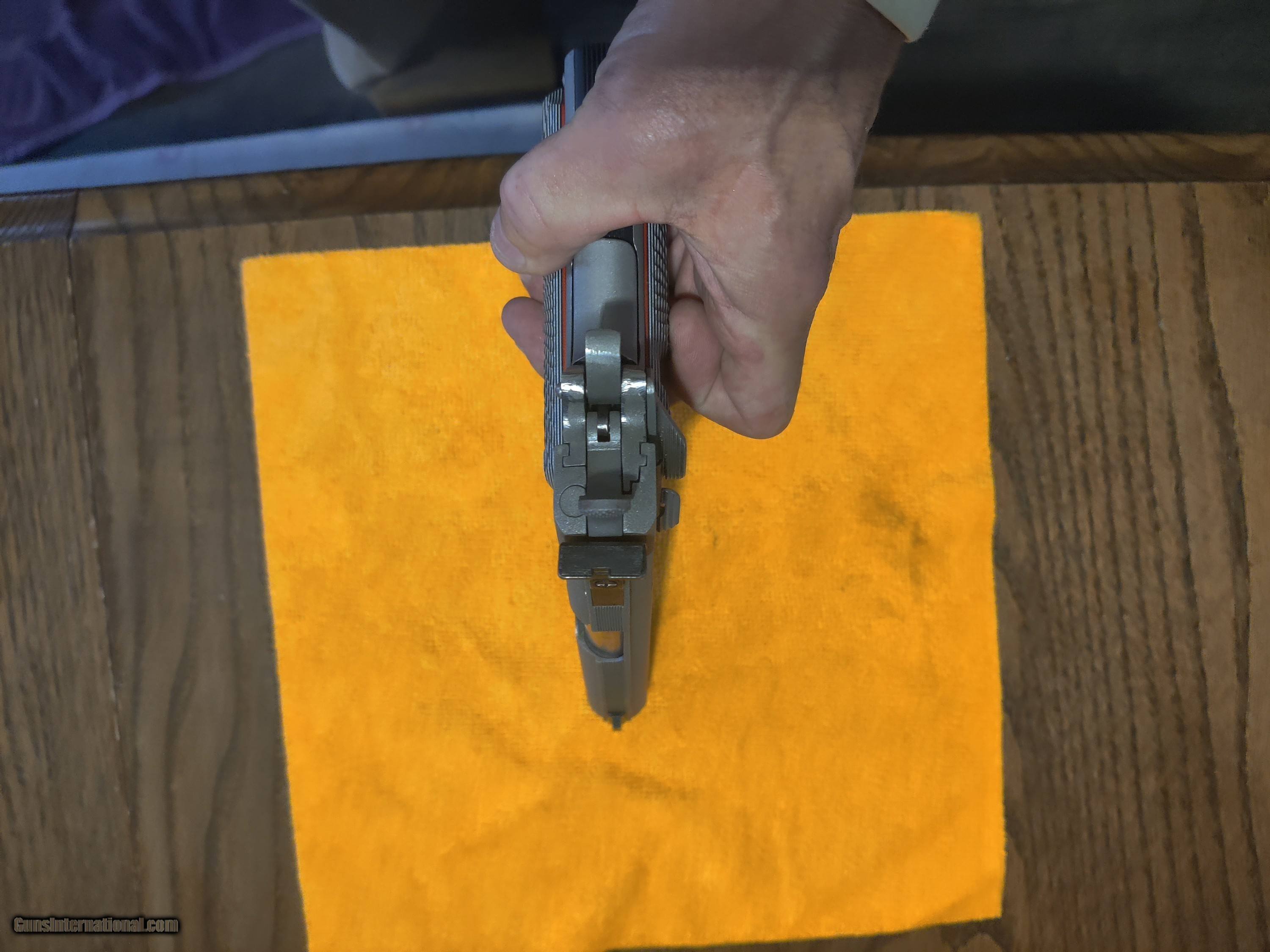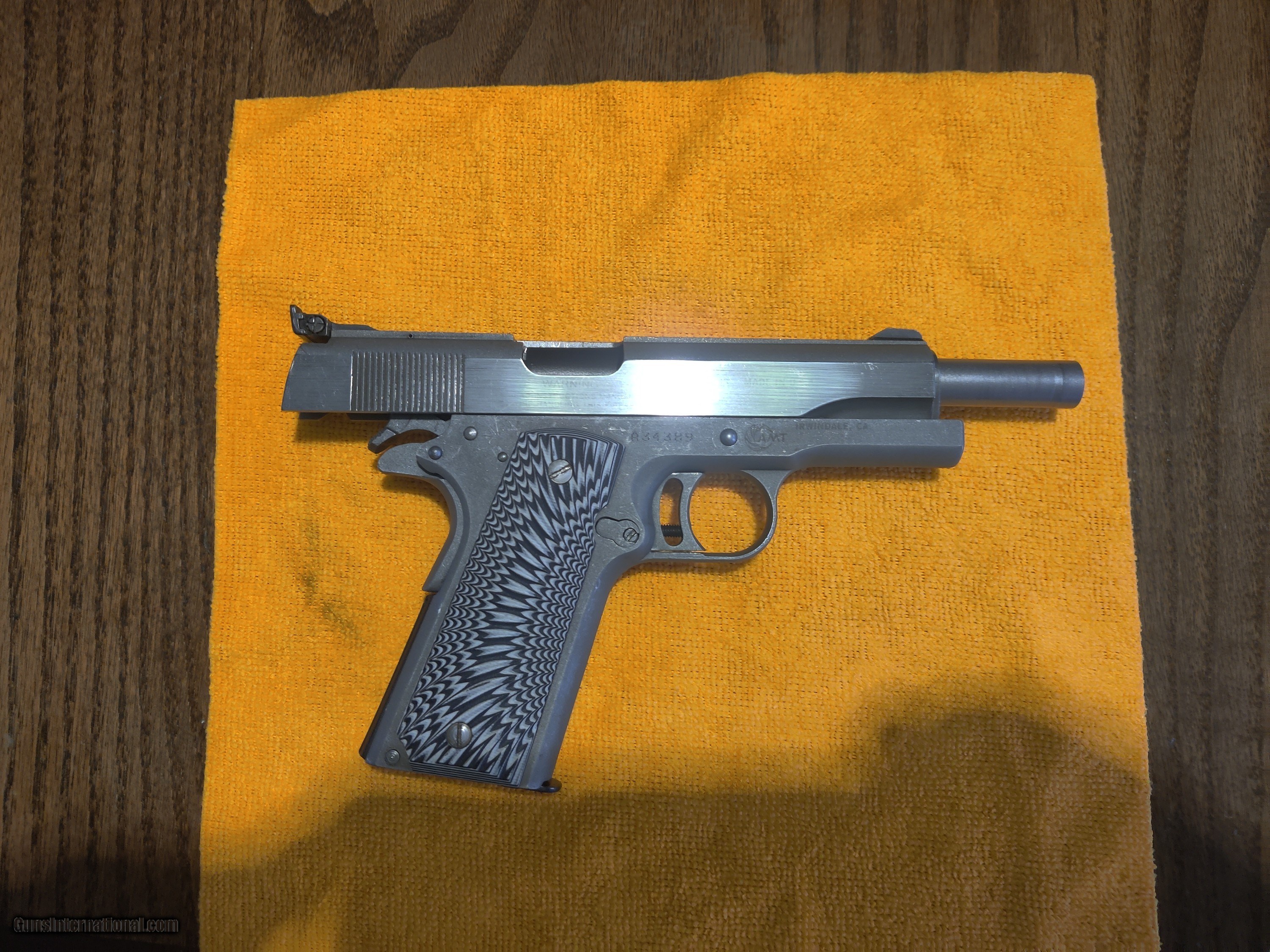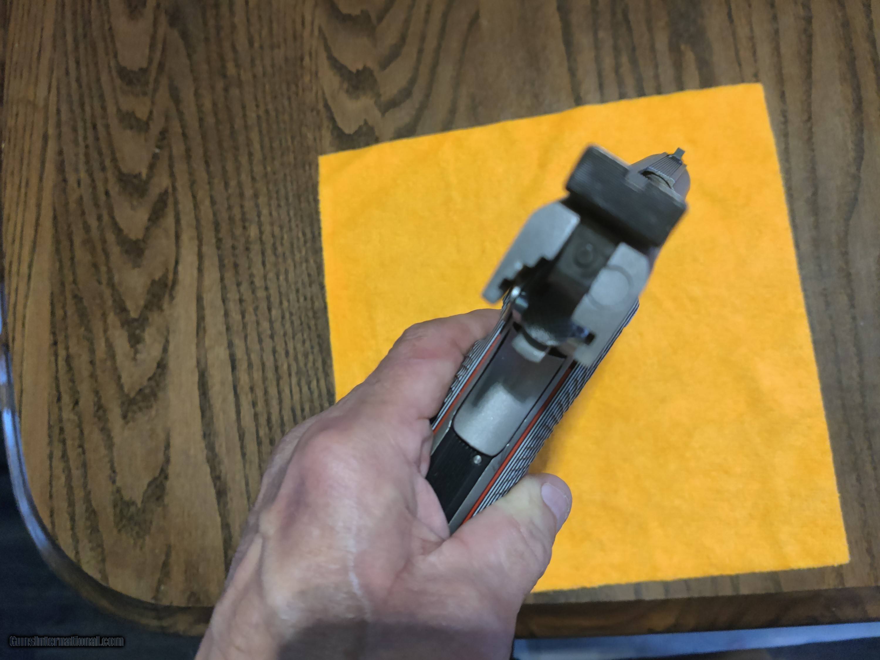 Description: Made one year only 1996 AMT javelina excellent condition fires flawlessly perfect boar no scratches or dents custom grips 10 mm auto free shipping Make an offer negotiable beautiful stainless steel as far as I can tell this is the only one for sale anywhere extremely rare also fires 40 caliber every available option is on this pistol extended slide release extended safety extended dovetail safety adjustable trigger SOLD Handgun Caliber: 10mm Auto Manufacturer: Amt Model: Javelina Condition: Excellent Metal Condition: Excellent Bore Condition: Excellent Triggers: Adjustable |