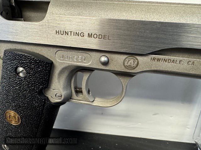 Description: Guns Listing ID: 582094 10mm cal., 7 in. barrel, 8 shot mag., Millett adj. rear sight, wraparound neoprene grips, wide adj. trigger, long grip safety, 48 oz. Mfg. 1992 only. IRWINDALE ARMS WAS THE MANUFACTURER. This single action semi-automatic 1911 variant was only produced in 1992 and comes with the factory end label matching gray box. This Javelina Hunting Model was only produced for one year and features a 7\" barrel. This would be a GREAT ADD on to your COLLECTION SOLD Manufacturer: ISRAEL ARMS INTERNATIONAL Model: Javelina Caliber Info: 10MM Condition: Used - Non-Certified Barrels: 7" BARREL Action: SEMI AUTOMATIC Finish: BRUSHED STAINLESS |