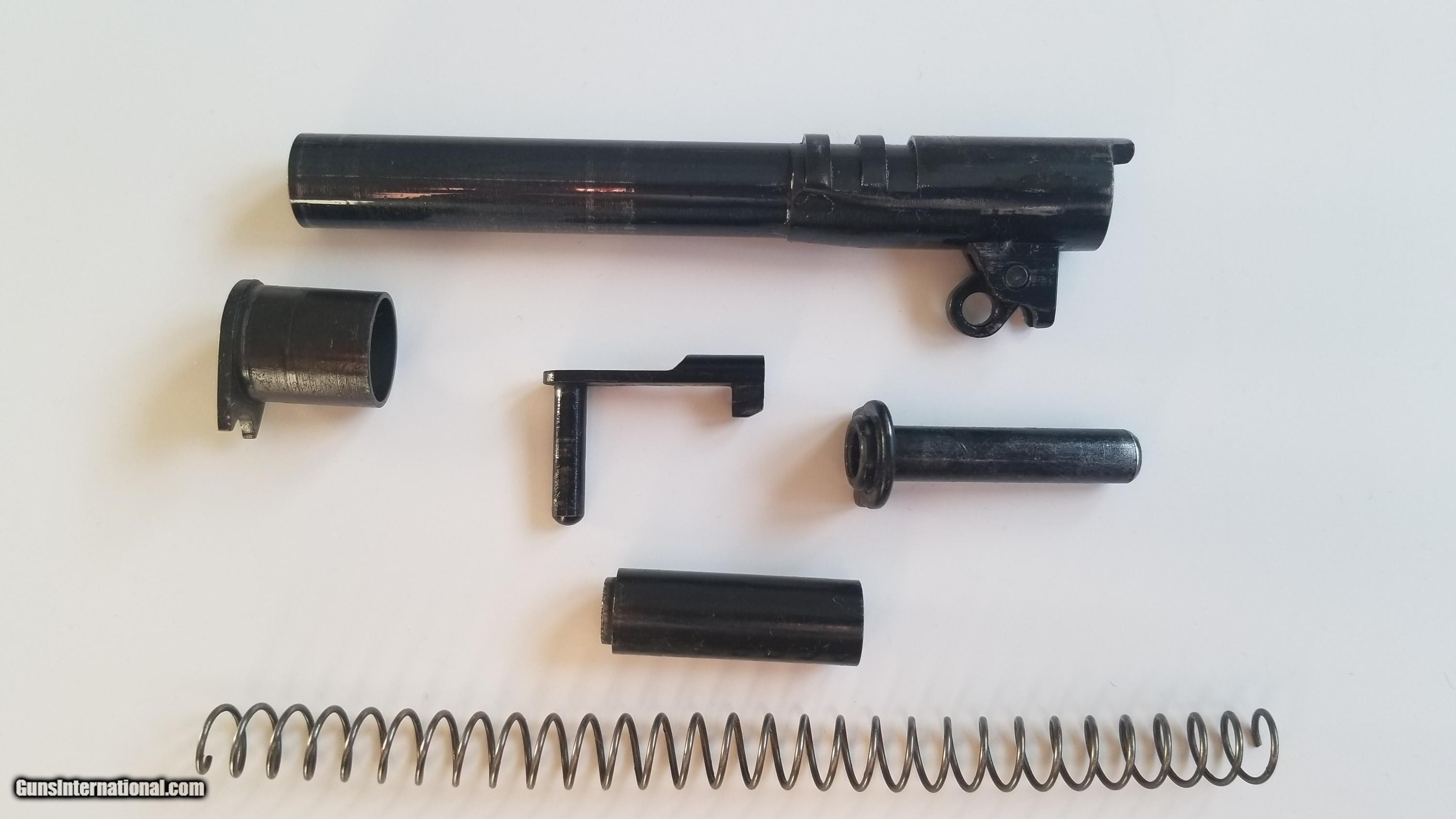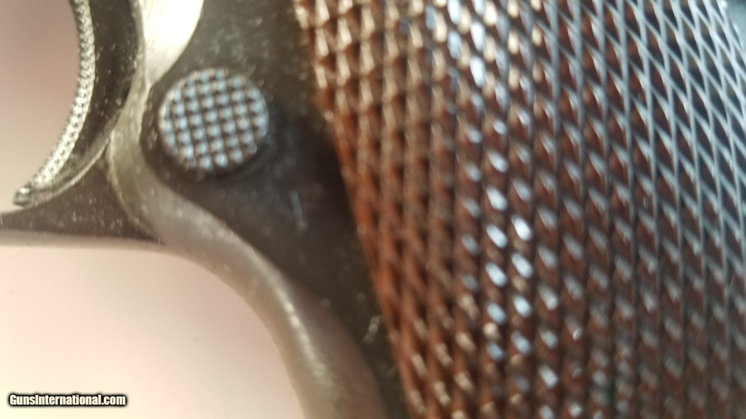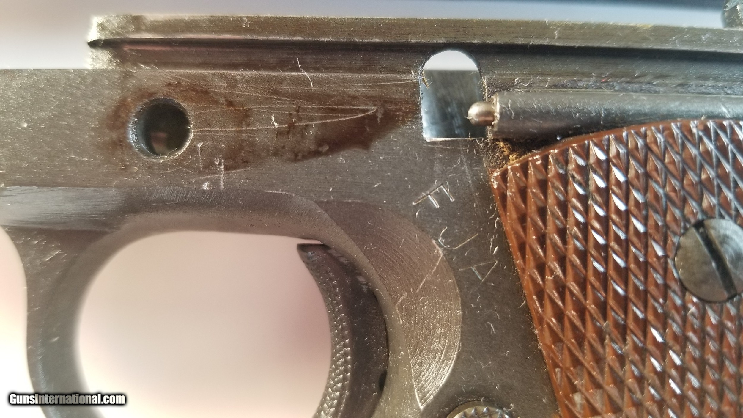 Description: Up for sale is an Ithaca 1911 A1, Serial Number 1847504, with accessories. The pistol was manufactured in 1944 and is all original. There are a few light scratches on the frame from previous owner(s) most likely caused during disassembly. The gun shows some minor wear from usage, but overall it is in very good condition given its age. The parkerizing is original and the bore is bright and shiny. All appropriate markings are present. The package also comes with all era (WWII) correctbelt, magazine pouch, two additional clips, leather holster, and leather shoulder holster. Additionally, the magazines are marked with an S, L, and R, (S - on top lip of base - Scovill Mfg. Co., Waterbury, Conn. (Scovill acquired American Pin Co. in 1923), L - on top lip of base - M. S. Little Mfg. Co. (subcontracted for Colt), and R - on top lip of base - Risdon Tool & Machine Co., Naugatuck, Conn.). SOLD Curio/Relic: Yes Handgun Caliber: .45 ACP (.45 Auto) Manufacturer: Ithaca Model: 1911 A1 Serial Number: 1847504 Barrel Length: 5 Condition: Great Metal Condition: Great Bore Condition: Excellent Finish: Parkerized |
