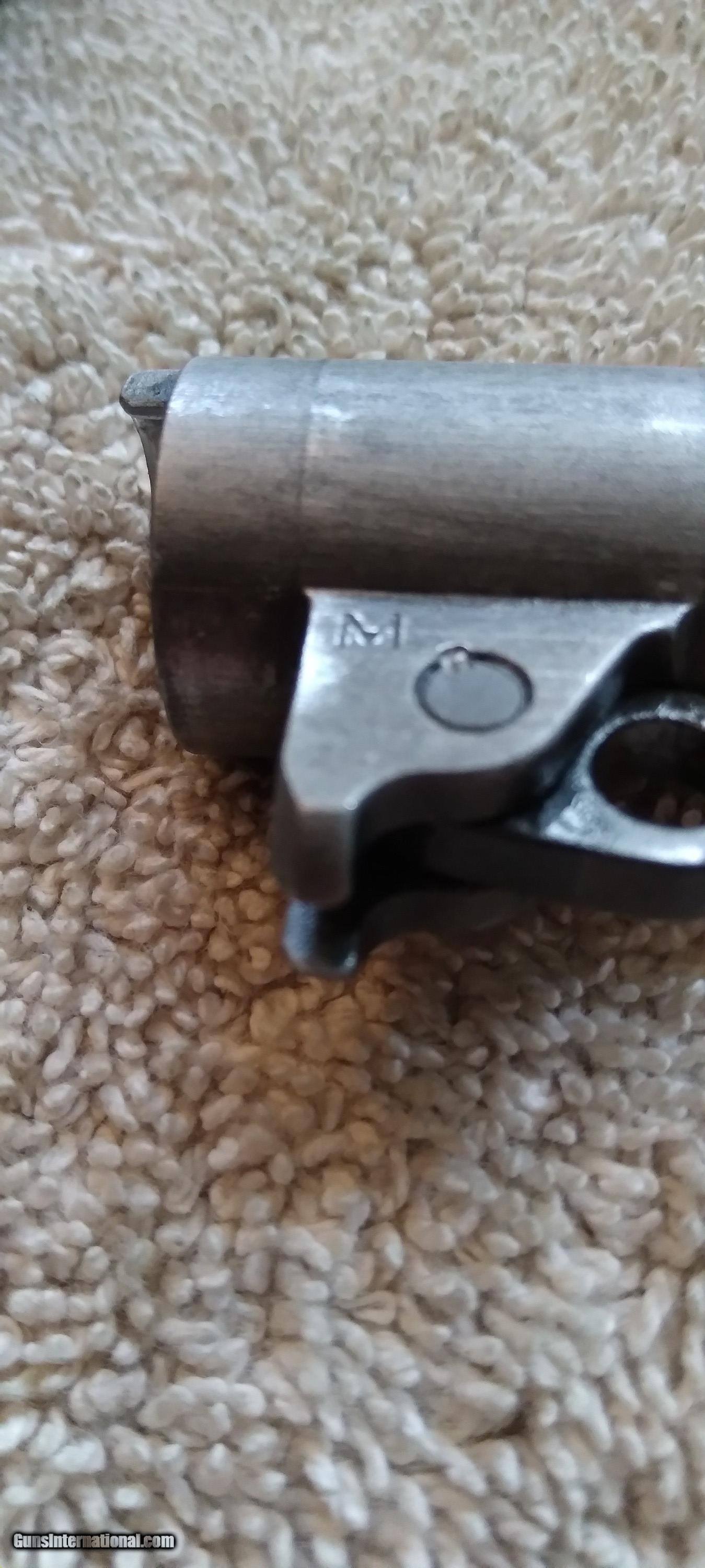 Description: 1943 ITHACA FRAME WITH COLT SLIDE POST WAR ARSENAL REFURBISHED AT THE SPRINGFIELD ARMORY CALIBER .45 ACP S/N 902434 RIGHT SIDE OF FRAME ONLY THIS IS ONE OF THE 60,000 S/N THAT COLT AND ITHACA BOTH RECEIVED IN 1943 IN THE S/N RANGE BETWEEN 85,6405-91640 ITHACA FRAME HAS THE PROPER ROLL MARKINGS ON THE BOTTOM OF THE RIGHT SIDE OF FRAME FRANK J. ATWOOD INSPECTION MARK ( FJA) ON LEFT SIDE OF FRAME UNDER SLIDE STOP "P" PROOF MARK NEXT TO MAGAZINE RELEASE SPRINGFIELD ARMORY PROOF WITH CROSSED CANNONS ON TOP REAR OF RIGHT FRAME BARELY VISIABLE THE RIGHT FRONT OF THE TRIGGER GUARD ROOT HAS THE #7 INSPECTION MARK THE COLT SLIDE HAS THE PROPER COLT PATENT ROLL MARKINGS AND COLT LOGO ON THE LEFT SIDE OF SLIDE "P" PROOF ON THE TOP OF COLT SLIDE IN FRONT OF REAR SIGHT CORRECT POST WAR REPLACEMENT BARREL # 7791193 ONE CORRECT POST WAR REPLACEMENT MAGAZINE EARLY ITHACA ARCHED CHECKERED MAIN SPRING CHECKERED HAMMER AND TRIGGER THE SLIDE FINISH HAS HIGH EDGE WEAR WITH NUMEROUS MARKS AND SEVERAL HITS AND DINGS THE FRAME FINISH HAS SOME EDGE WEAR WITH VERY FEW MARKS AND A SMALL AREA OF OLD PITTING UNDER THE FINISH ON THE TOP OF THE FRONT GRIP STRAP BELOW THE TRIGGER GUARD THE BORE IS BRIGHT AND SHINY WITH EXCELLENT RIFLING BARREL HAS CORRECT POST WAR MARKINGS ON BOTH SIDES OF THE LOWER BARREL LUG THE GRIPS ARE EXCELLENT BROWN CHECKERED PLASTIC WITH CORRECT POST WAR MARKING ON THE INSIDE OF EACH THE SECOND MAGAZINE IS A MODERN COPY OF THE REPLACEMENT POST WWll MAGAZINES LAYNARD LOOP BOTTOM REAR OF FRAME MUST SHIP TO C&R FFL OR FFL SHIPPING $35.00 SOLD Curio/Relic: Yes Handgun Caliber: .45 ACP (.45 Auto) Manufacturer: ITHACA/COLT Model: 1911 A1 Serial Number: 902434 Barrel Length: 5 in Bore: BRIGHT AND SHINNY Condition: Excellent Metal Condition: Excellent Bore Condition: EXCELLENT RIFLING Action: SA Sights: FIXED IRON SIGHTS Manufacture Date: 1943 |