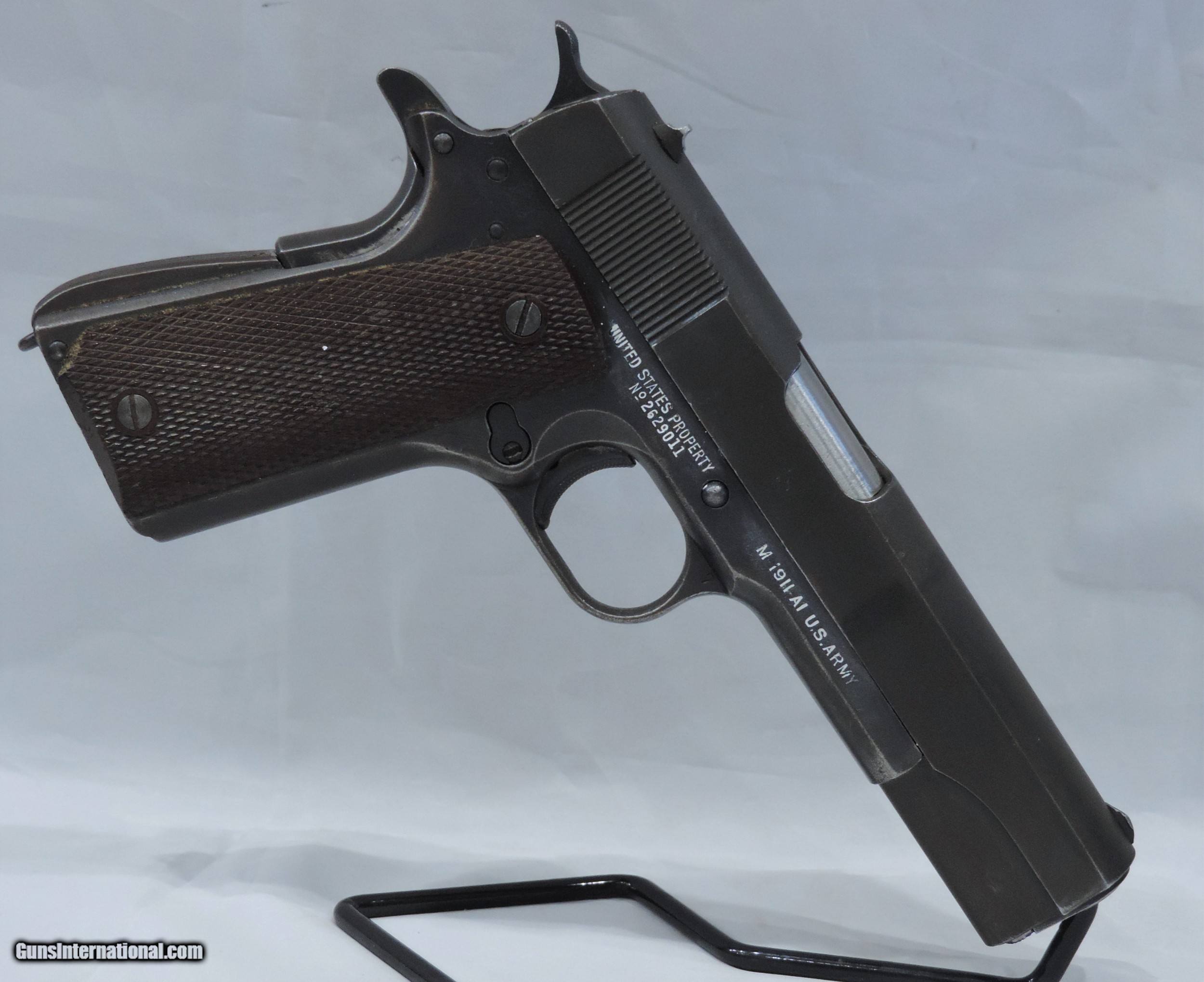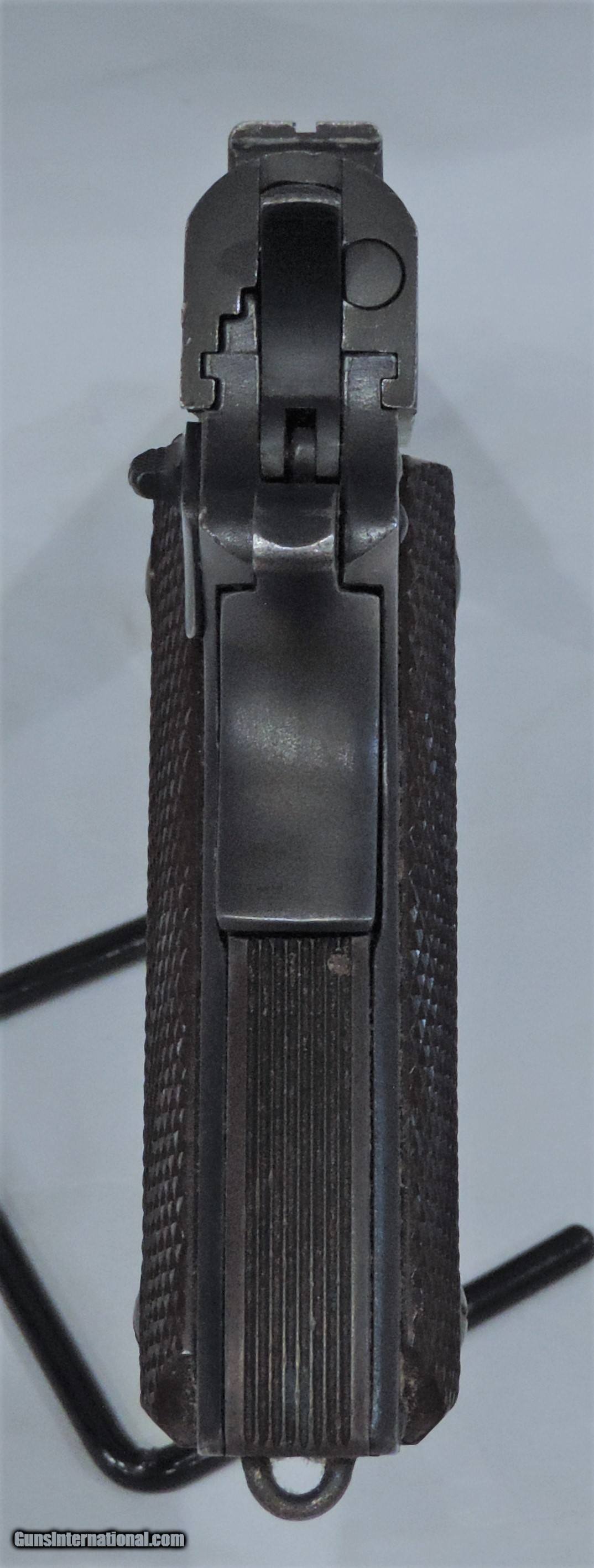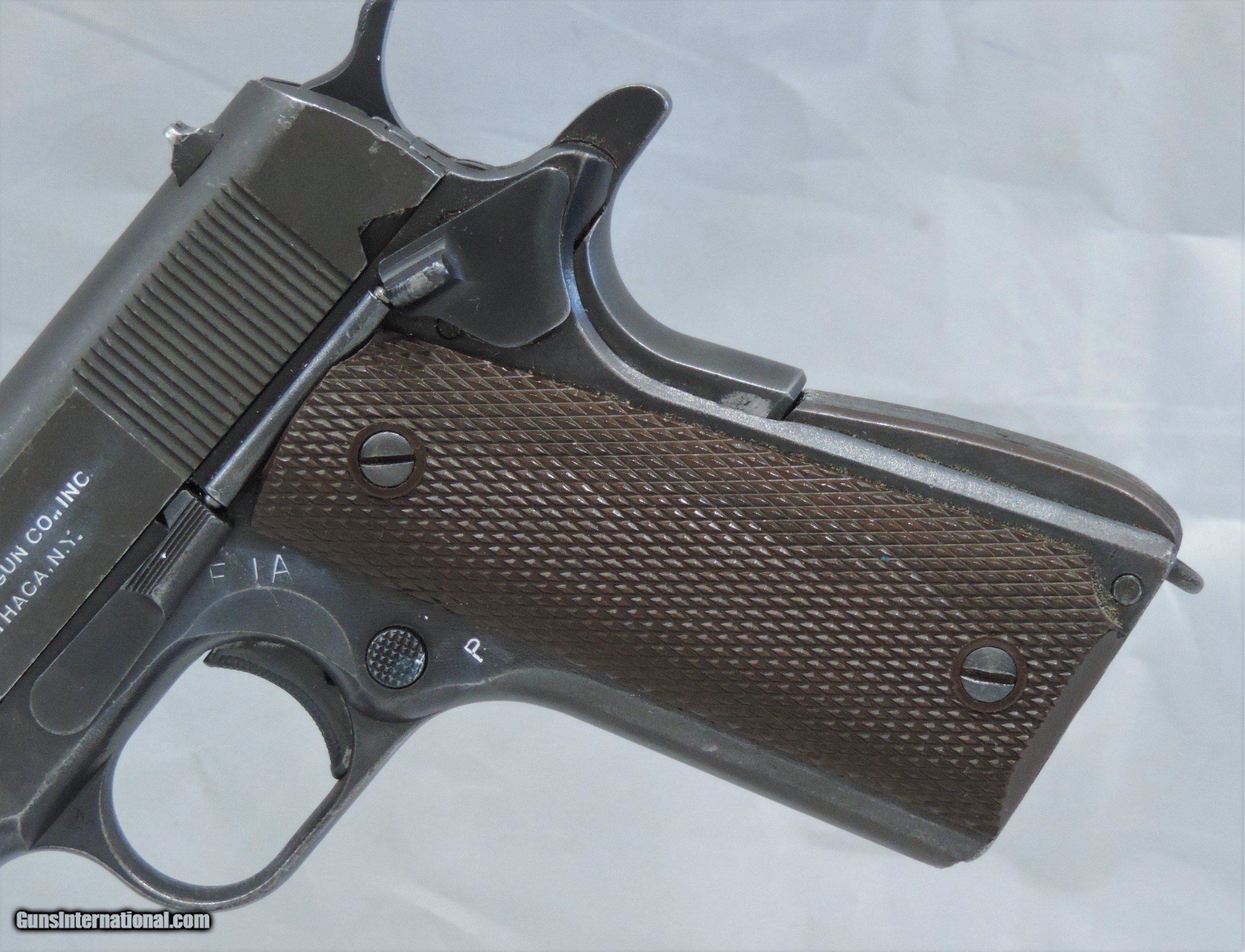 Description: INV. 7870 ITHACA U.S. 1911 A-1, CAL. .45 ACP, SER. 26290XX, THIS BEAUTY IS THE 3RD LEAST PRODUCED OF THE 1911A1s. THE CONDITION IS REALLY GREAT. THE GUN RETAINS ABOUT 97+% OF THE WARTIME FINISH. THE LITTLE LOSS THERE IS DUE TO SOME SLIGHT SHARP EDGE SILVERING FROM HOLSTER WEAR AND A LITTLE TONING OF THE FRONT GRIP. ALL PARTS ARE CORRECT FOR THE GUN. THE SLIDE DOES SHOW THE PROPER HEAT TREAT BAND. THE PLASTIC GRIPS ARE PERFECT AND THE RIGHT LARGE RING TYPE. THE LEFT SIDE OF THE FRAME IS STAMPED WITH A "P" PROOF, THE "FJA' INSPECTORS PROOF AND THE TOP OF THE SLIDE A "P" PROOF. THE GRIP SCREWS ARE ALSO PERFECT. THE FEED RAMP, SLIDE RAILS AND BOLT FACE SHOW VERY LITTLE USE. THE BORE IS MIRROR BRIGHT WITH RAZOR SHARP RIFLING. IT COMES WITH ONE PROPER MAGAZINE. MODESTLY PRICED FOR THE COLLECTOR AND IT SHOULD BE SUPER AT THE RANGE..... $2095. To purchase this firearm or if you want to request more information contact us at: Email ckguns[at]ymail[dot]com Phone 201-512-0002 Cell 201-575-6838 FAX 201-215-4759 We accept most major credit cards. Prices shown are Discounted 3% for Cash or Check. The buyer must be familiar with all the laws governing the purchase and the ownership of firearms in their own city and state. The Yankee Armorer, Inc is not responsible for any failure to comply with or observe these laws. The Yankee Armorer, Inc will only ship after full payment and receipt of all required documents. Shipping: Add $35.00 for handguns, $45.00 for long guns. New Jersey buyers are subject to a 7% sales tax. The Yankee Armorer, Inc offers a 3 day inspection period with full refund upon return of intact firearm and in the original condition. The Yankee Armorer, Inc offers a no interest lay away program - 25% down; 25% in 30 days; 25% in 60 days; and full payment in 90 days. Any violation of this policy is subject to restocking and forfeiture of all payments. Any variation from this policy must be agreed to in advance. Unshipped Cancelled sales are subject to a 20% restocking fee. Be advised that all firearms sold by The Yankee Armorer, Inc. or the Gun Exchange, LLC (SELLER) are sold as collector’s items. They have not been fired or tested for safety and must be examined by a license gunsmith prior to use. By purchasing any item from the (SELLER), you are agreeing to hold the (SELLER) free from any damages or lawsuits of any nature. Any item left for transfer or storage will be charged to $25.00 per month, per item from the day of its receipt. Any variation from this policy must be agreed to in advance. Store hours 10:00 am to 5:00 pm Tuesday -Saturday. It's always best to call for appointment. Store 201-512-0002, cell 201-575-6838. SOLD Handgun Caliber: .45 ACP (.45 Auto) |