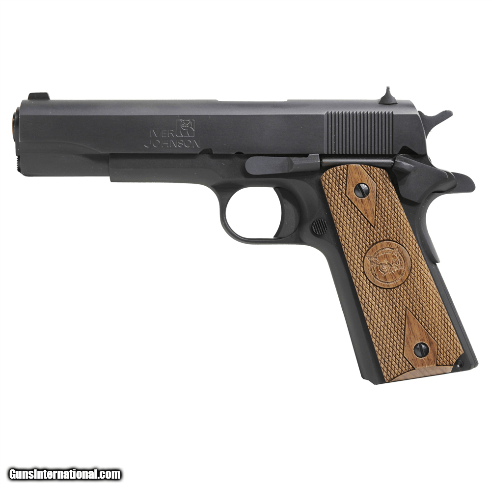 Description: Manufacturer: Iver Johnson Model: 1911A1 SKU: GIJ46 Action: Single Caliber: .38 Super Capacity: 9 Rounds Barrel: 5" Frame: Steel, Blued Finish Slide: Steel, Blued Finish Rear Serrations Grips: Walnut Double Diamond Overall Length: 8.5" Sights: Fixed Weight: 42 oz All items are factory new in box unless otherwise stated. Based on the information available to us, the above specifications describe this item to the best of our knowledge. For further information, please contact or visit the manufacturer's . SOLD |