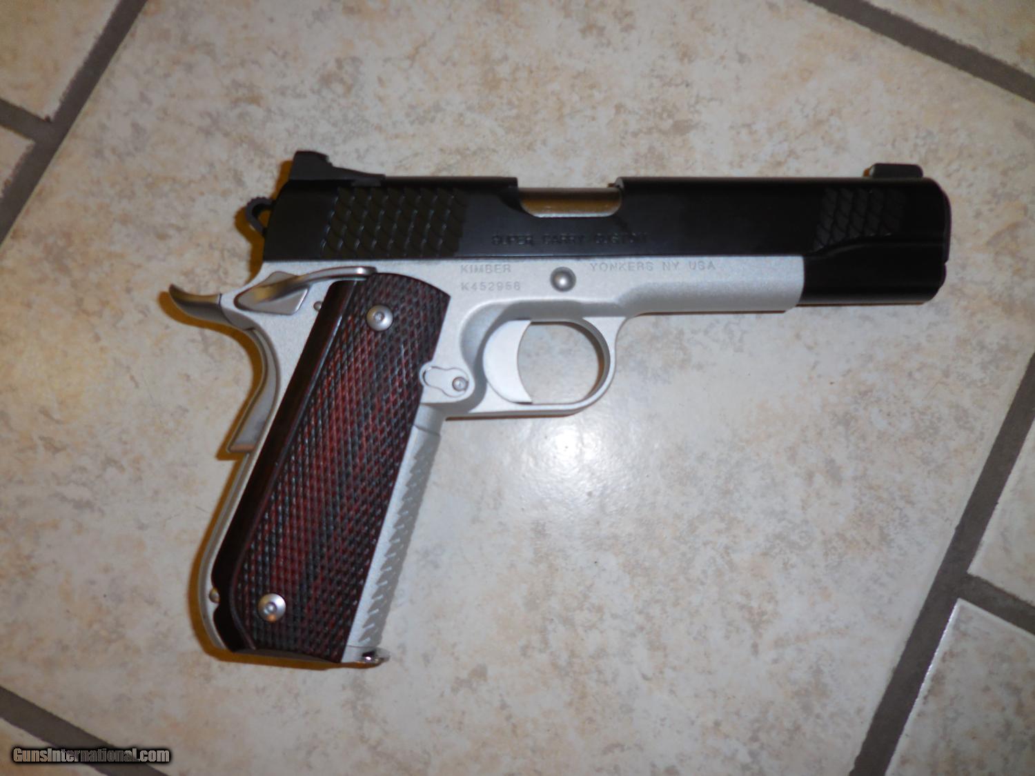 Description: This is a "as new" .45 cal pistol out of the Kimber Custom Shop. If you are looking for a high quality gun - here it is: Kimber Super Carry Custom 45 ACP with a 5 inch barrel, rounded main spring housing, dusl tone and match grade trigger. SOLD |