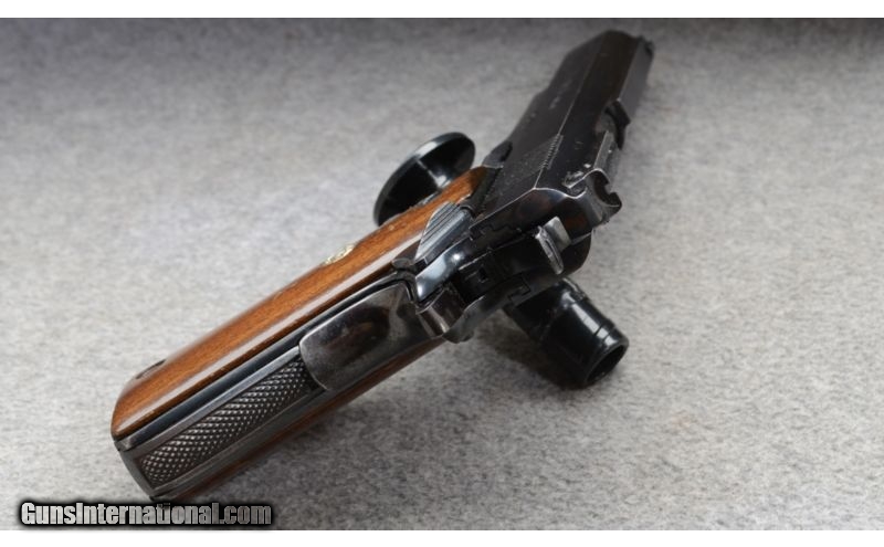 Description: A weel-executed copy of the venerable Colt 1911 SOLD Caliber Info: .45 ACP. Metal Condition: Good, has most of the bluing. There is a few pits, none really bad, and a lot of fine scratches. Wood Condition: Good Bore Condition: Bright and serviceable Barrels: 5 Inch Stock: Smooth hardwood. Weight: 2 lbs. 8 oz. Sights: Post and notch Extras: One magazine total Item Location: Rogers, MN, MN |