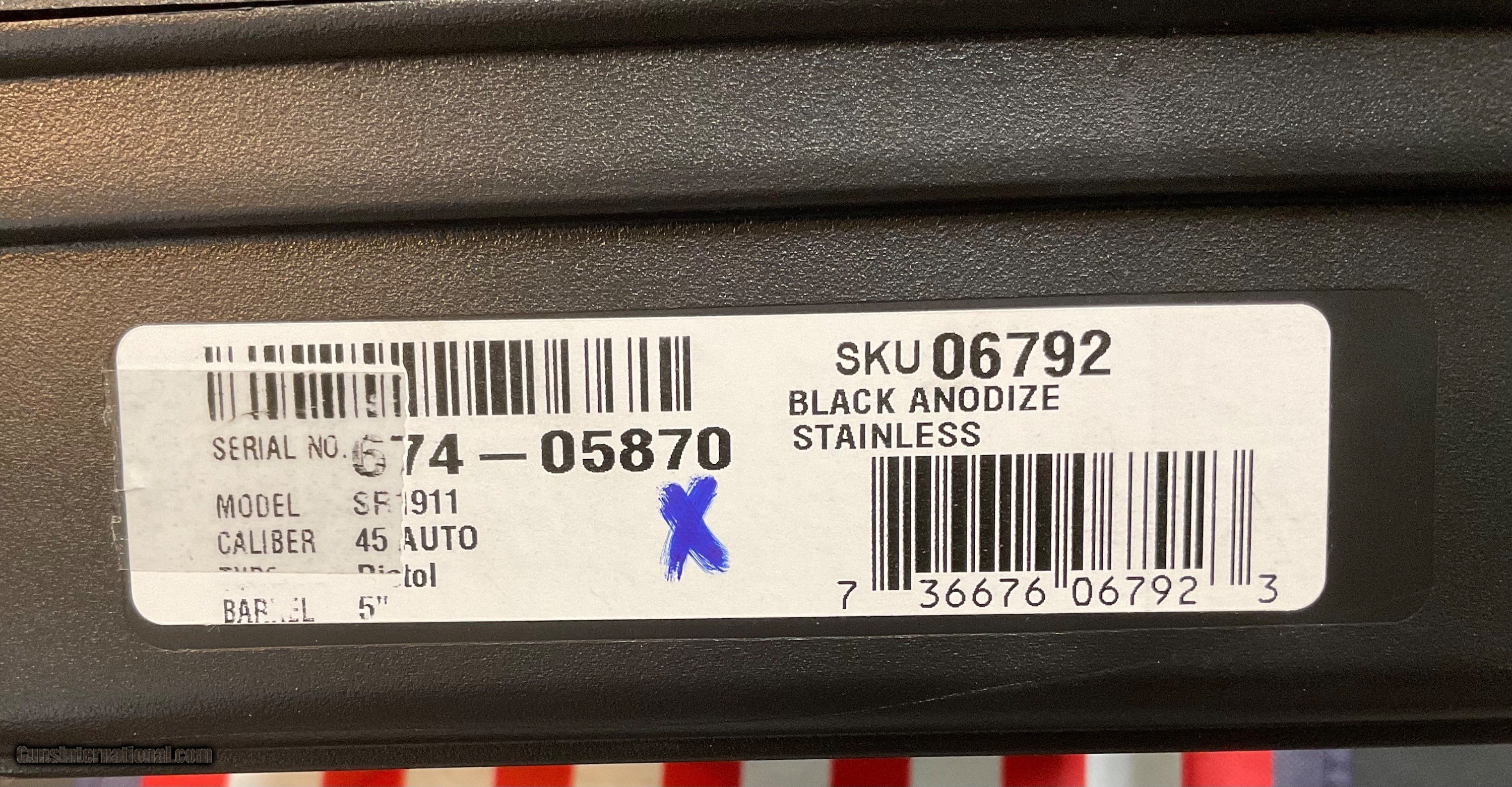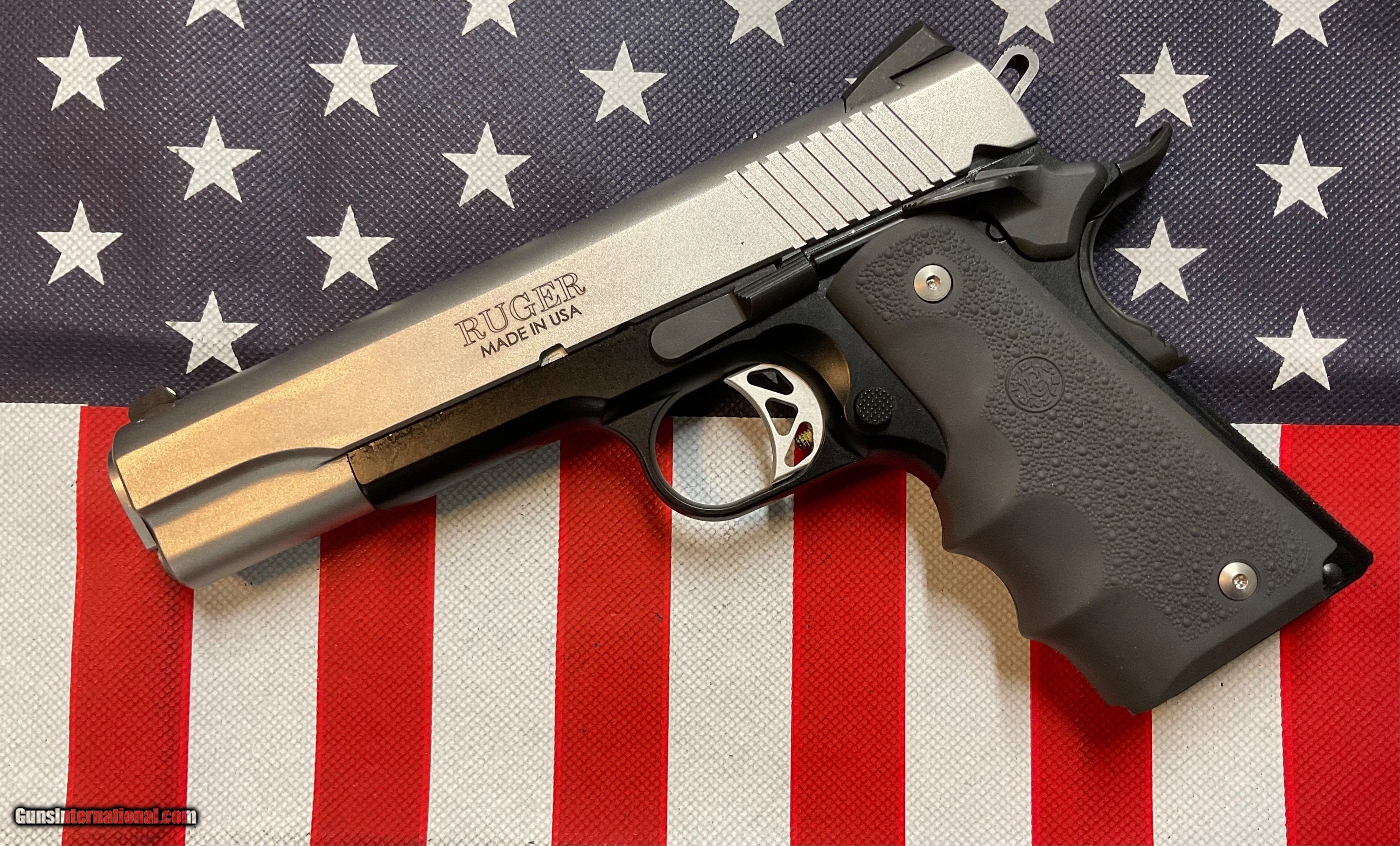Description: LNIB Lightweight Ruger full size SR1911 .45 ACP I only shot this gun about 4 times… maybe 75 rounds total I’m continuing to cull my centerfire herd as I age and near retirement Includes pistol plus: - Original Ruger plastic case and all paperwork, bushing tool etc - 2 orig Ruger mags… one flush 7 rd, one with bumper holds 8 - This one sports a gray Hogue rubber wraparound finger grip The lightweight Ruger® SR1911® in .45 Auto. This model gives you the feel and accuracy of a full-sized SR1911, but its aluminum frame makes the pistol nearly a 1/2 pound lighter (7.9 oz) than classic stainless steel frame SR1911 pistols. Firearm Features?