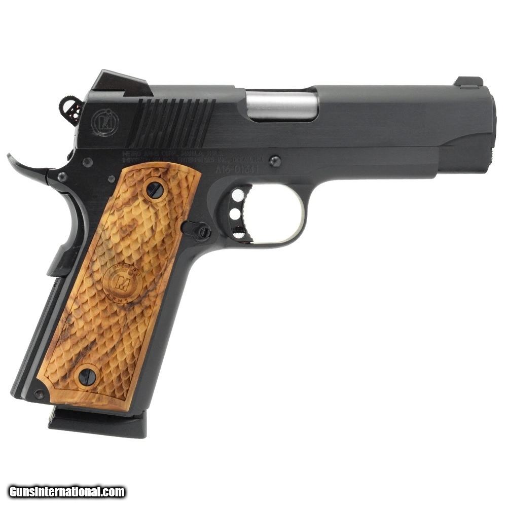Description: Manufacturer: Metro Arms Model: American Classic1911 Commander SKU: ACC9B Caliber: 9mm Capacity: (1) 10 Round Magazine Barrel Length: 4.25" Forged Steel Frame: Steel Finish: Blued Overall Length: 7.5" Sights: Dovetail Front - Novak Style Rear Grips: Custom Hardwood with Mac Logo Approximate Weight: 36.96 ozs All items are factory new in box unless otherwise stated. Based on the information available to us, the above specifications describe this item to the best of our knowledge. For further information, please contact or visit the manufacturer's . SOLD |