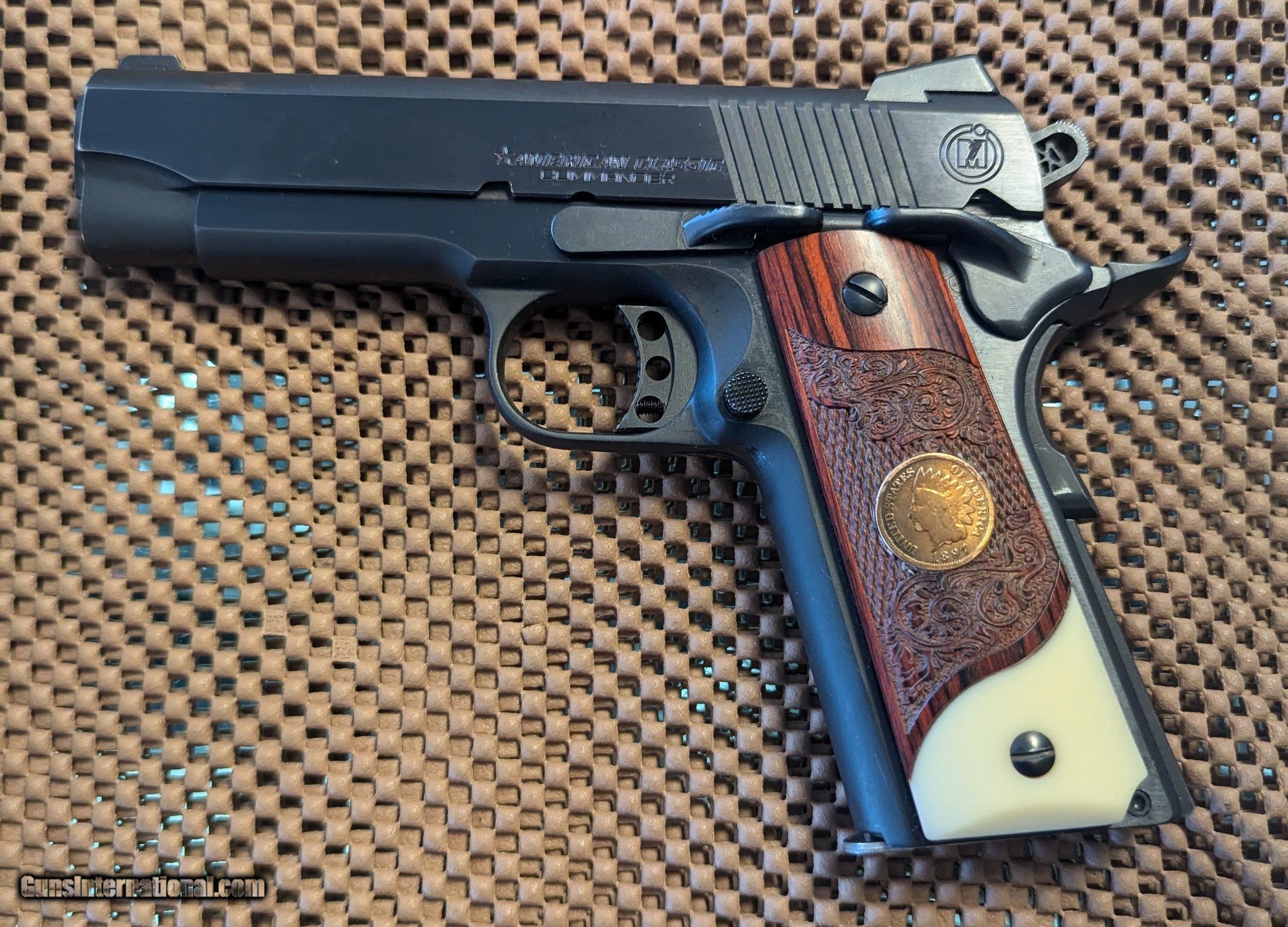 Description: Guns Listing ID: 1317795 Metro Arms American Classic Commander .45 ACP in original hard case with aftermarket grips and 5 magazines. SOLD Manufacturer: METRO ARMS Model: American Classic Commander Caliber Info: .45 ACP Condition: Used - Non-Certified Barrels: 4.25 BARREL Finish: BLUED |