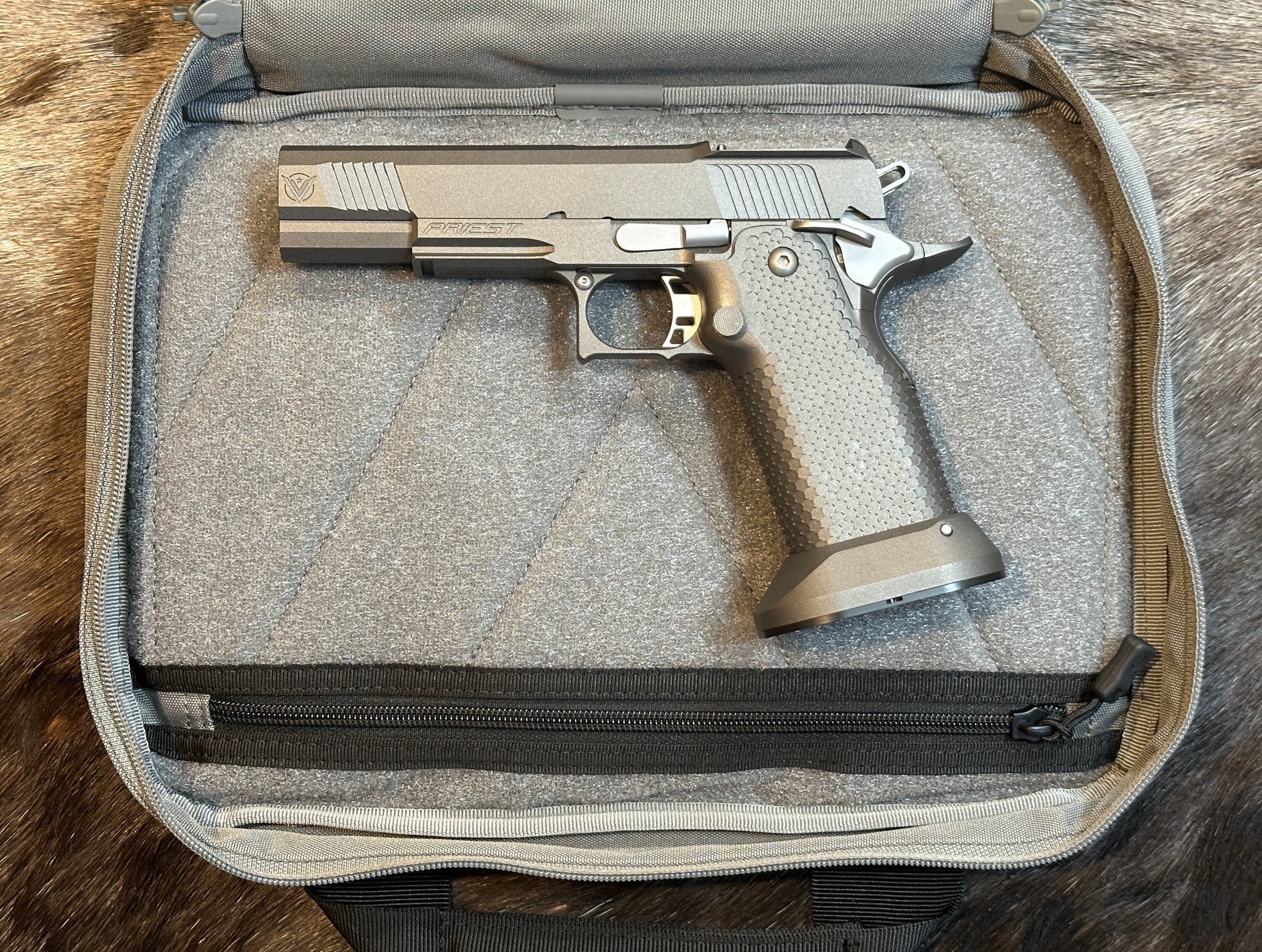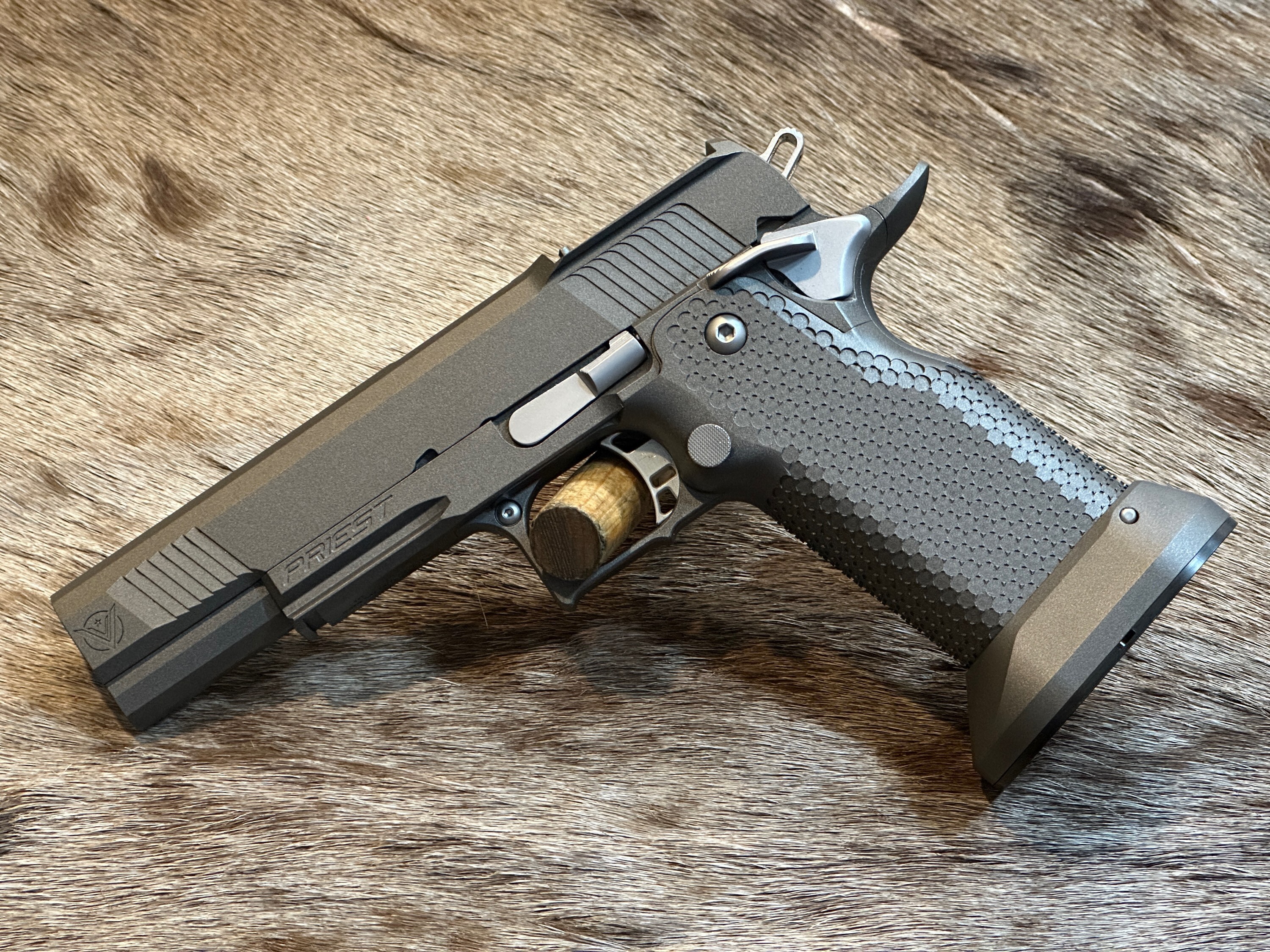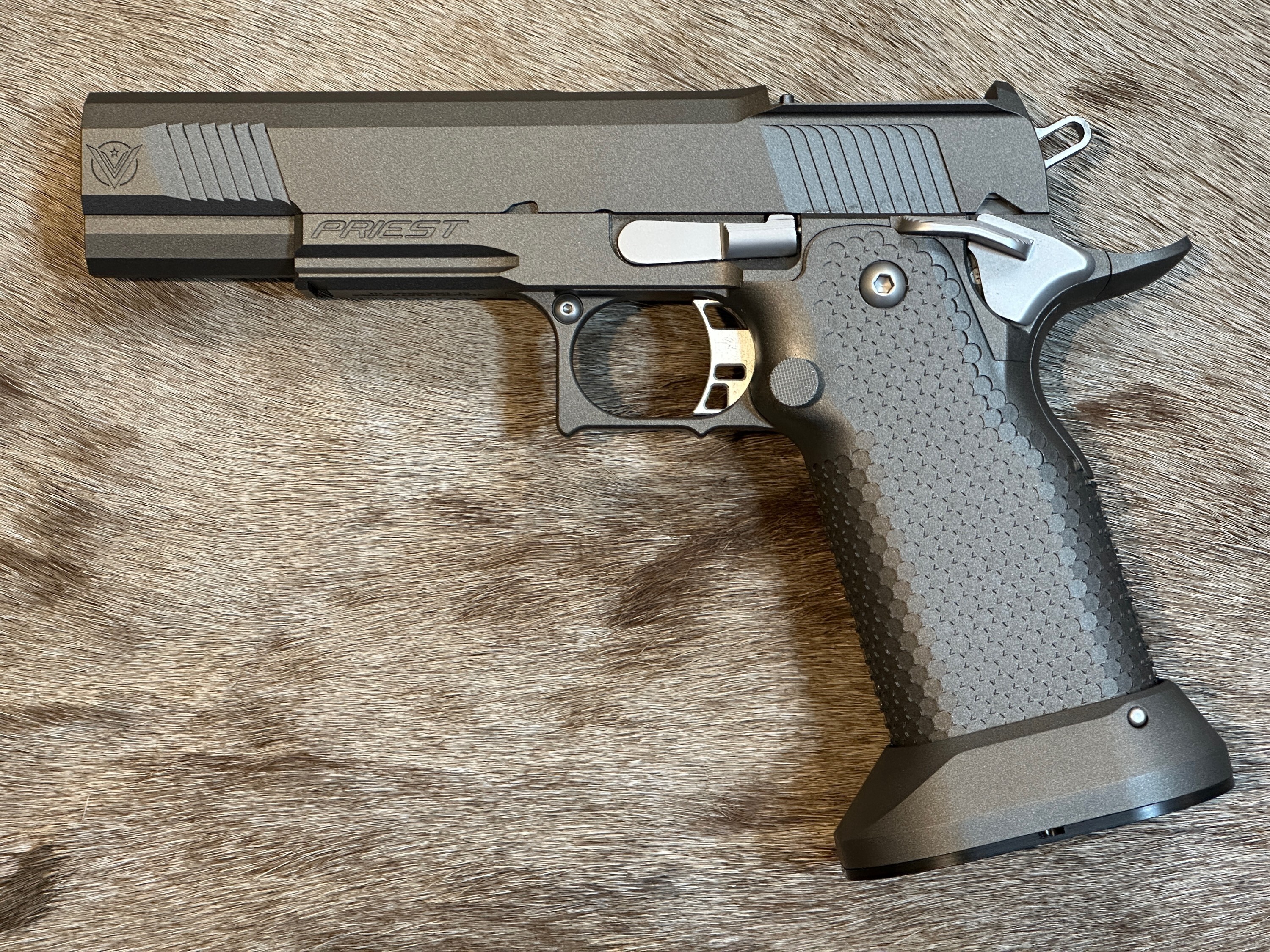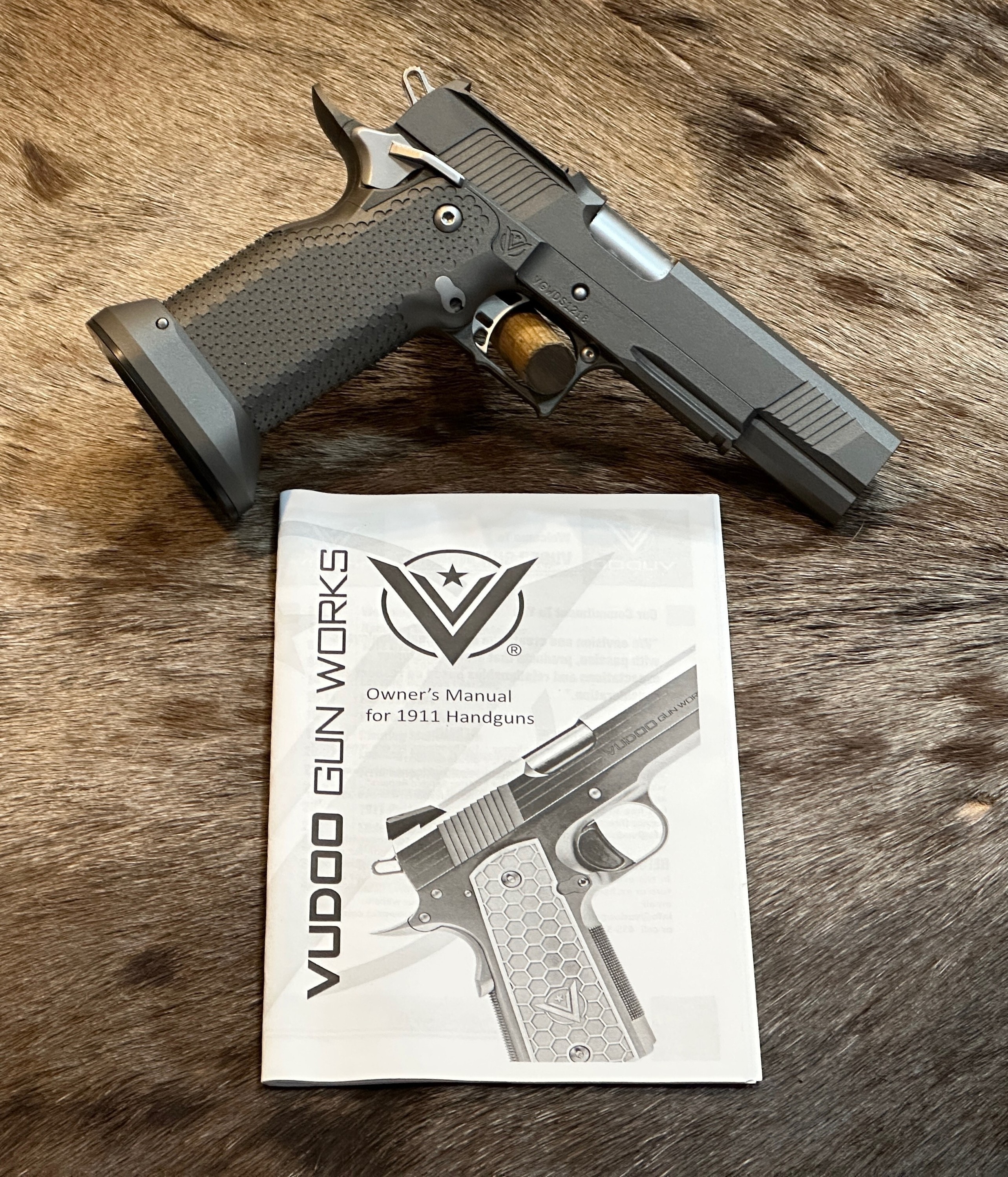Description: NEW VUDOO PRIEST SDC HEAVY GOV'T 1911 9MM DOUBLE STACK PISTOL, TRIJICON RMR OPTIC-READY - LAYAWAY AVAILABLE Unleash the ultimate edge with the Vudoo Priest 5” SDC Heavy. Built for unbeatable performance, this pistol features a standard-length dust cover, aggressively textured stainless steel grip, and extra large magwell, delivering superior balance and accuracy with every shot. The added weight of the stainless steel grip assists with recoil absorption. Built with an unmatched premium fit and finish, the Priest 5" SDC Heavy sets the standard in double-stack 1911s. With a contour-matching RMR footprint, competition blended safety, flush-cut barrel, and toolless guide rod for ease of takedown, this powerhouse is ready to elevate your performance to the next level. The Priest 5" SDC Heavy is compatible with STI/SVI family of magazines giving users 22 round capacity and ships with two magazines. At its core, the Priest SDC Heavy features precision fitment and attention to detail, ensuring every shot is as consistent as the last. The Priest SDC Heavy offers a perfect balance of accuracy and portability, while the double-stack design provides increased capacity without sacrificing ergonomics. FEATURES OF THIS GREAT CUSTOM 1911 INCLUDE: