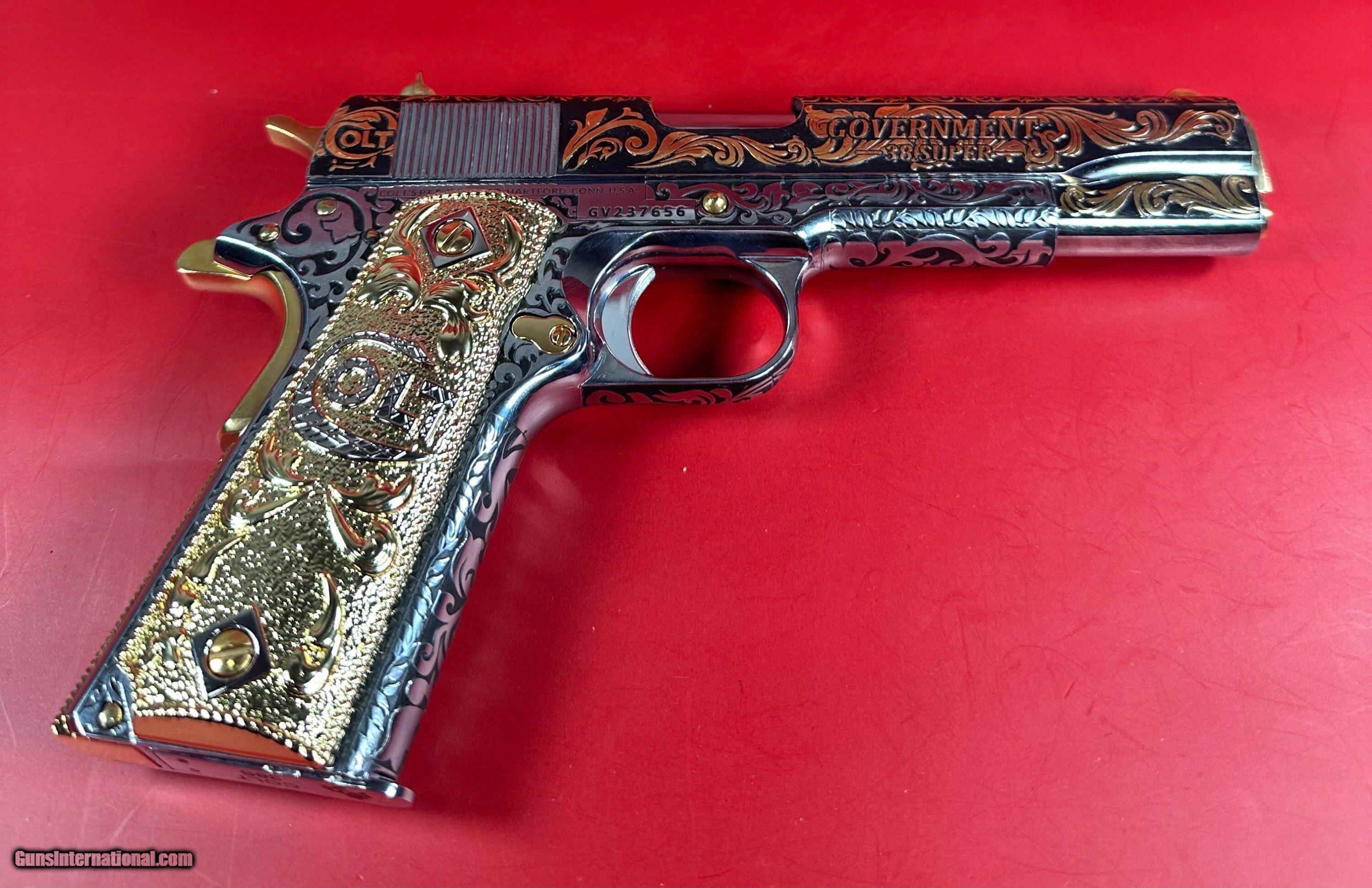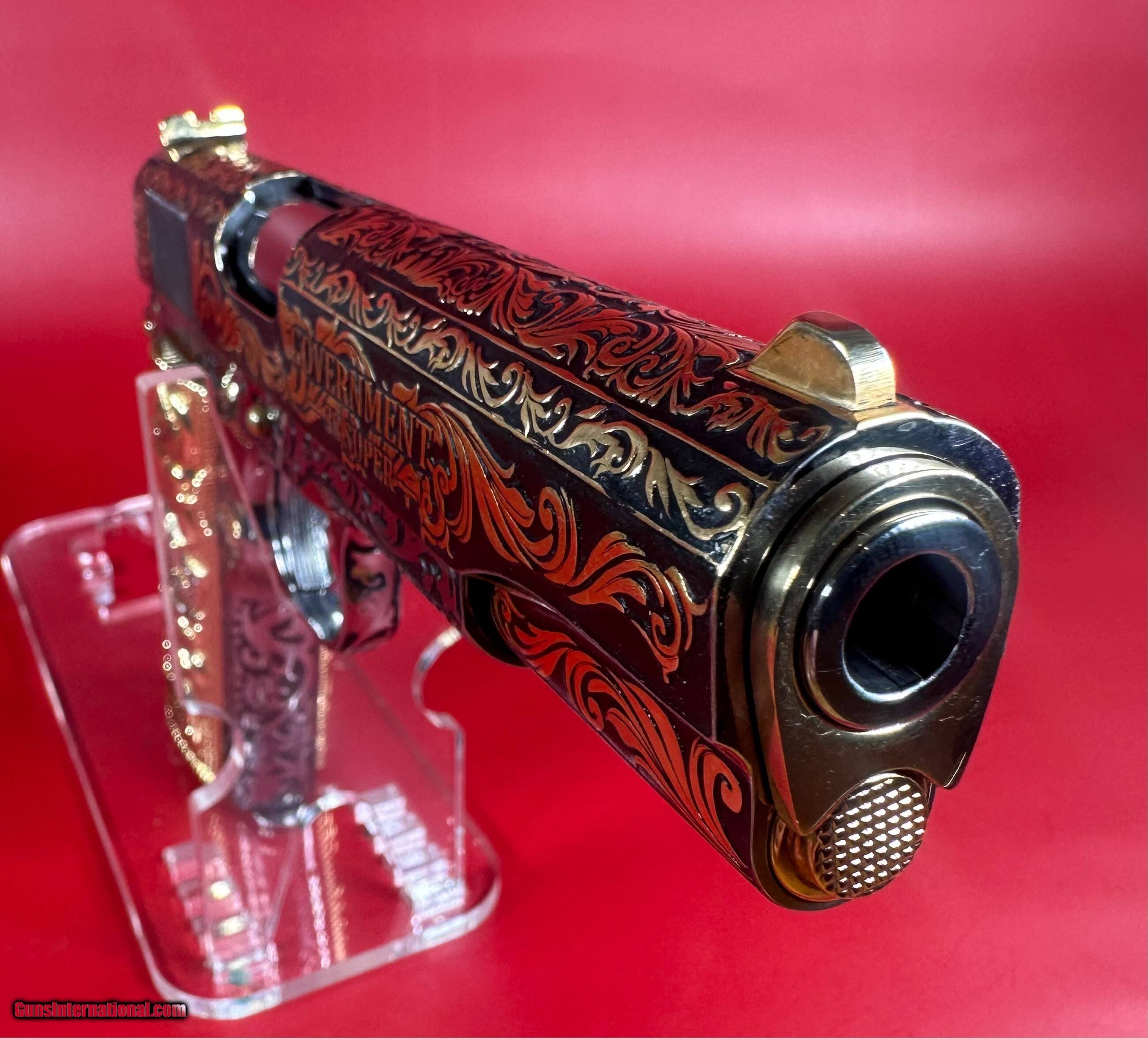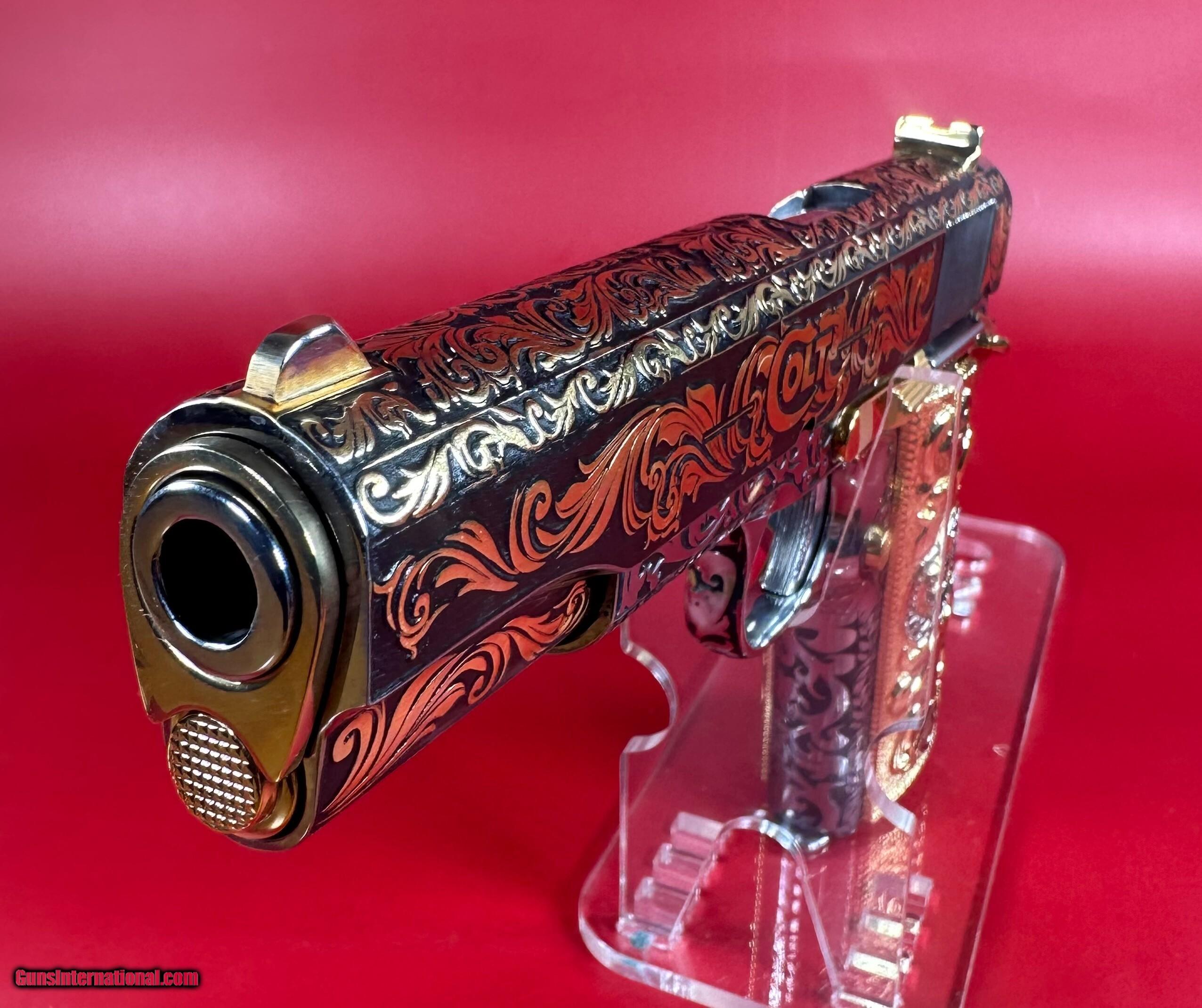NIB Colt 1911 Government. Engraved, Gold Plated .38 Super. Stunning.