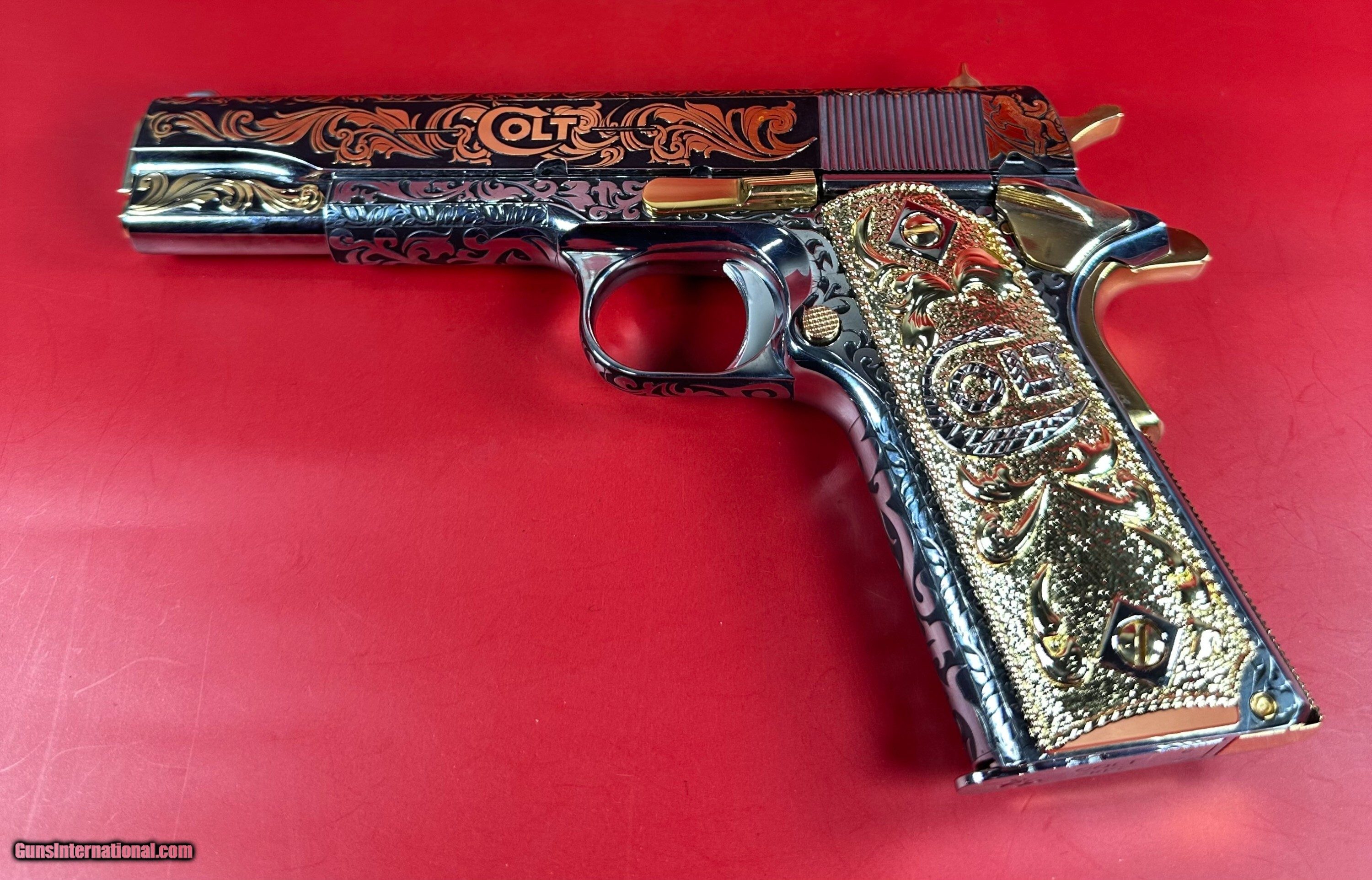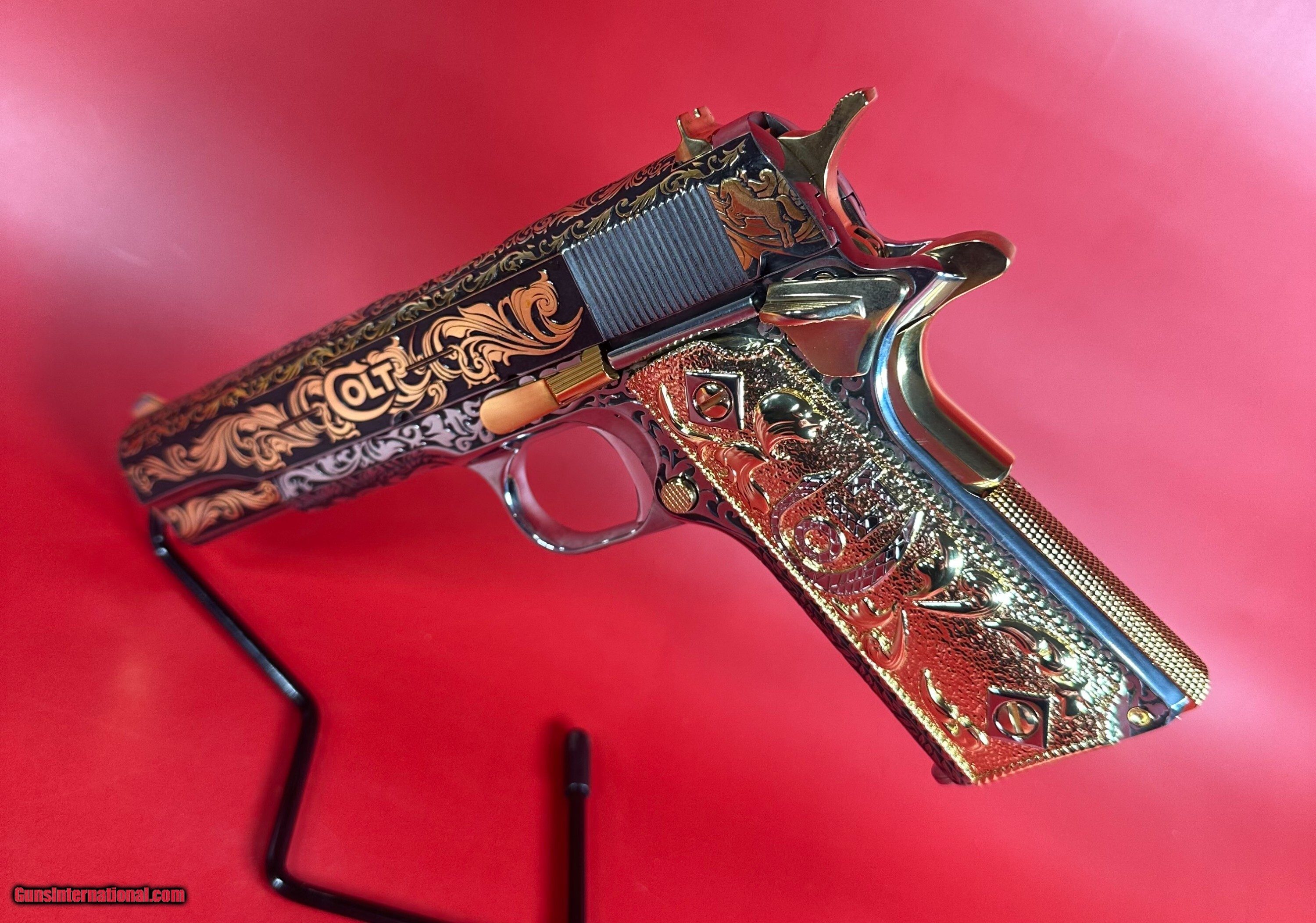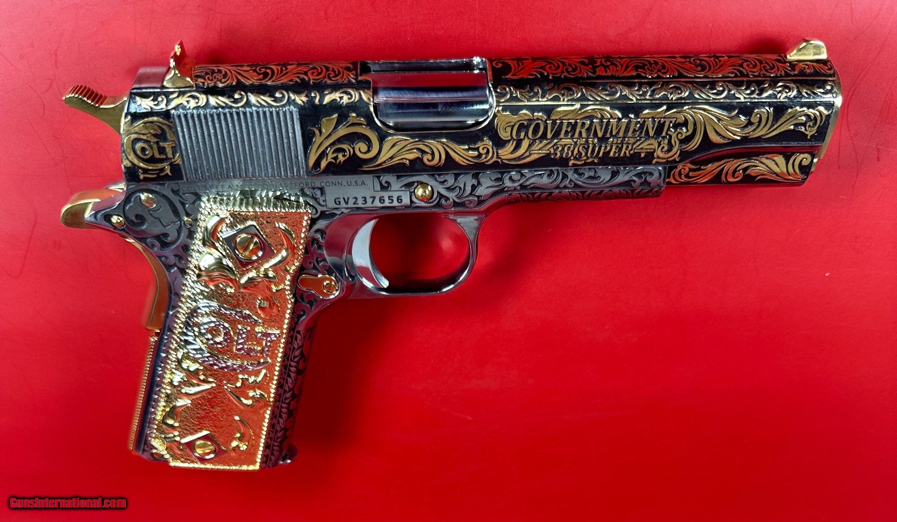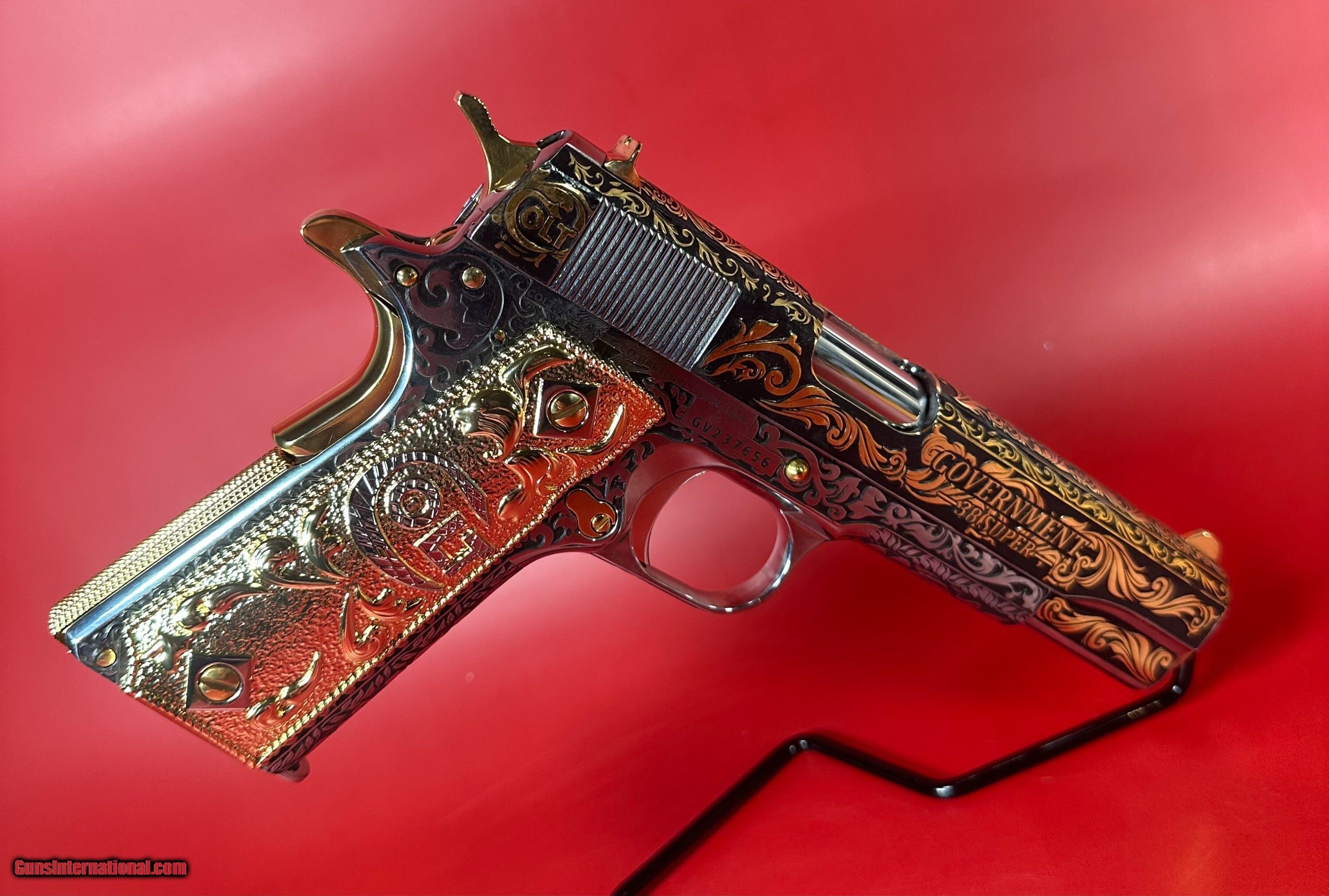 NIB Colt 1911 Government. Engraved, Gold Plated .38 Super. Stunning.