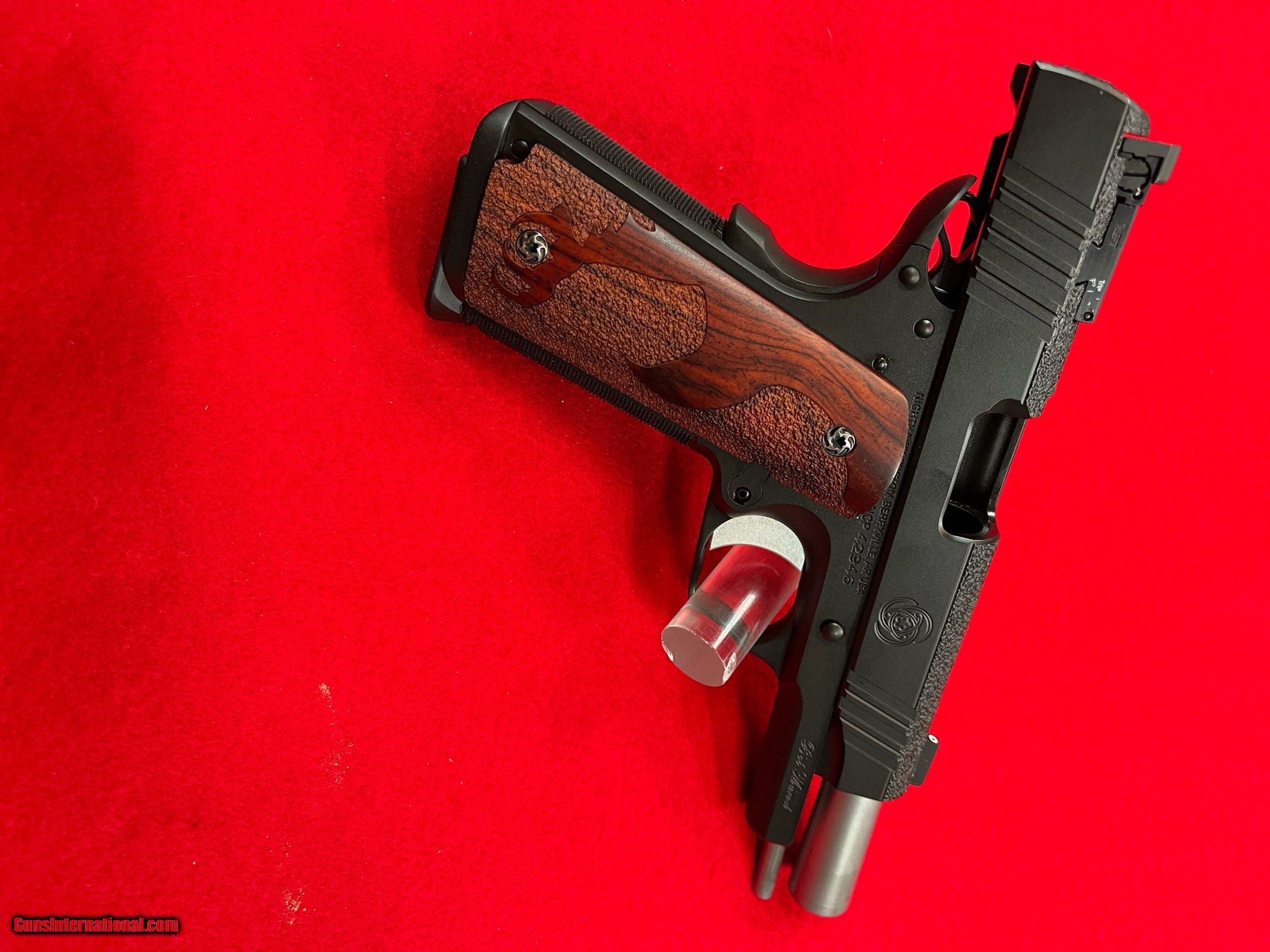 FRAME SIZE: COMMANDER CALIBER: 9 MM / .45 ACP LIGHT RAIL: NO RAIL SAFETY: SINGLE HEIGHT: 5.62" OVERALL LENGTH: 7.90" PISTOL WIDTH: 1.41" SLIDE WIDTH: 0.92" GRIP THICKNESS: REGULAR WEIGHT EMPTY: 37.6 OZ SIGHT RADIUS: 5.76" BARREL LENGTH: 4.25" MAGAZINE CAPACITY: 8 REAR SIGHT: FULLY ADJUSTABLE 2-DOT TRITIUM FRONT SIGHT: TRITIUM FINISH: BLACK NITRIDE FIRING PIN SIZE: .38 SUPER FIRING PIN MATERIAL: STAINLESS STEEL **BUYER PAYS SHIPPING AND INSURANCE** SOLD Handgun Caliber: .45 ACP (.45 Auto) Manufacturer: NIGHTHAWK Model: BOB MARVEL Serial Number: NCP42946 Barrel Length: 4.25 Condition: NEW Metal Condition: NEW Wood Condition: NEW Bore Condition: NEW |