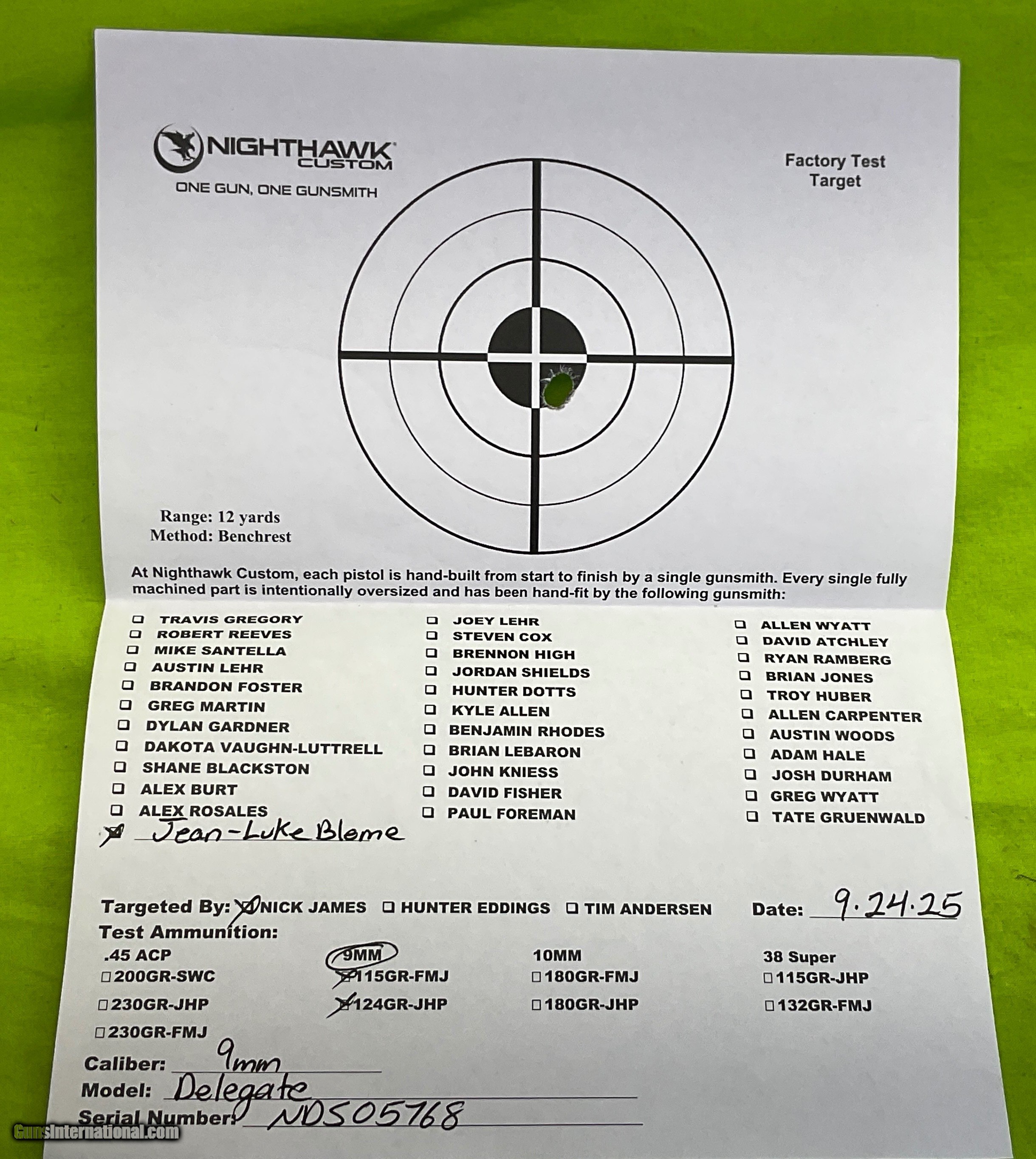 Handgun Caliber: 9x19mm Parabellum (9mm Luger, 9x19mm NATO) Manufacturer: Nighthawk Custom Model: 2011 Condition: NIB Metal Condition: NIB Wood Condition: N/A Bore Condition: NIB Price: $5,600.00 Contact Seller |