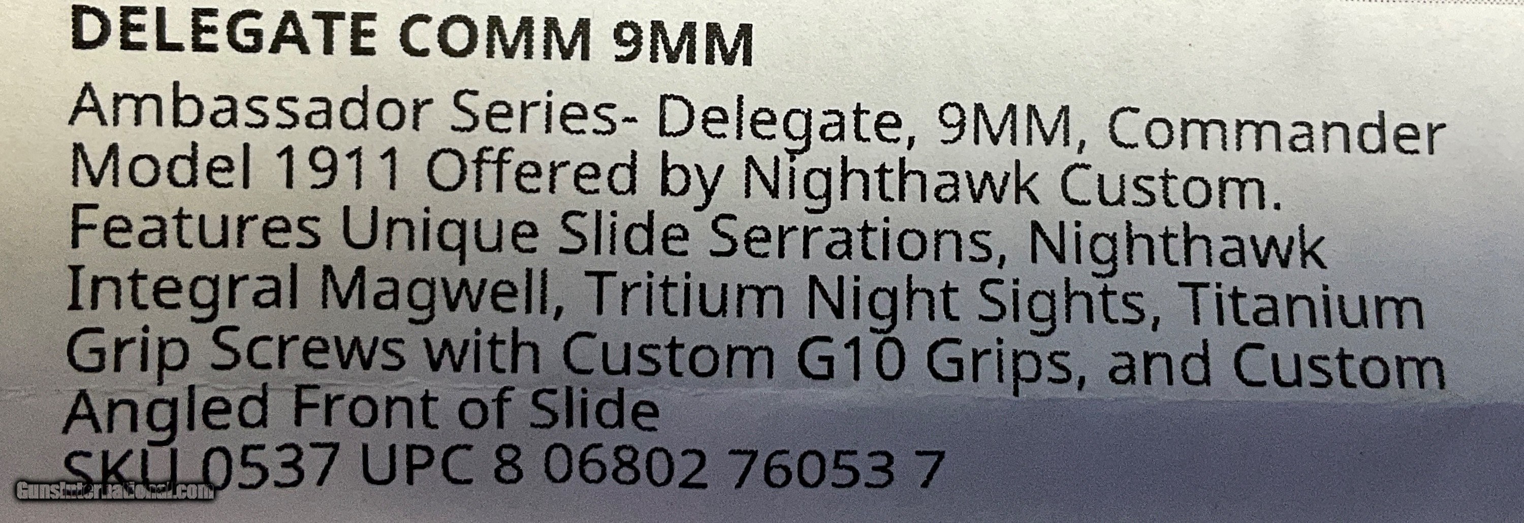 Description: NIGHTHAWK CUSTOM Delegate 2011 Commander 9MM FDE SANDHAWK Nitride Two Tone