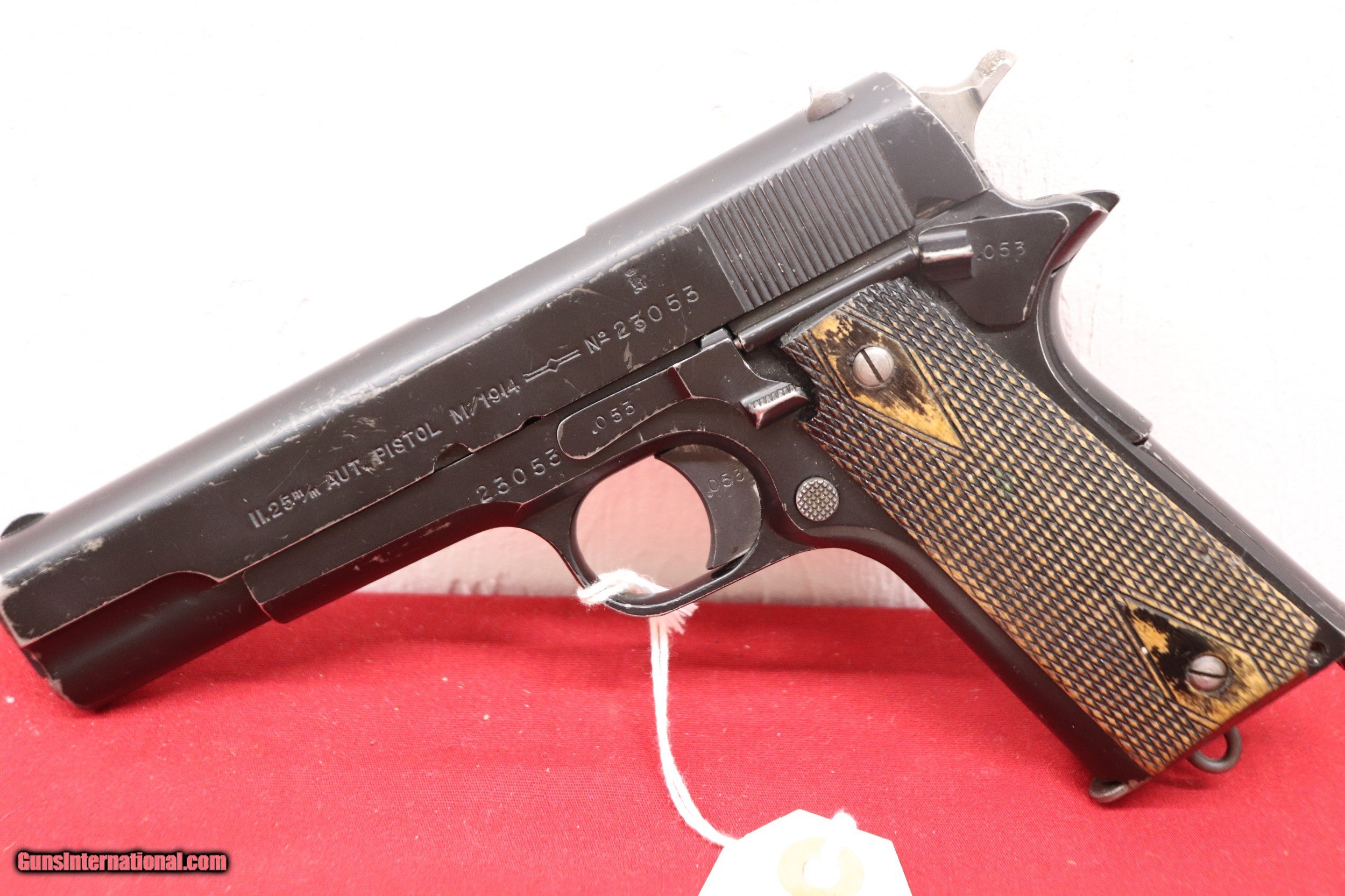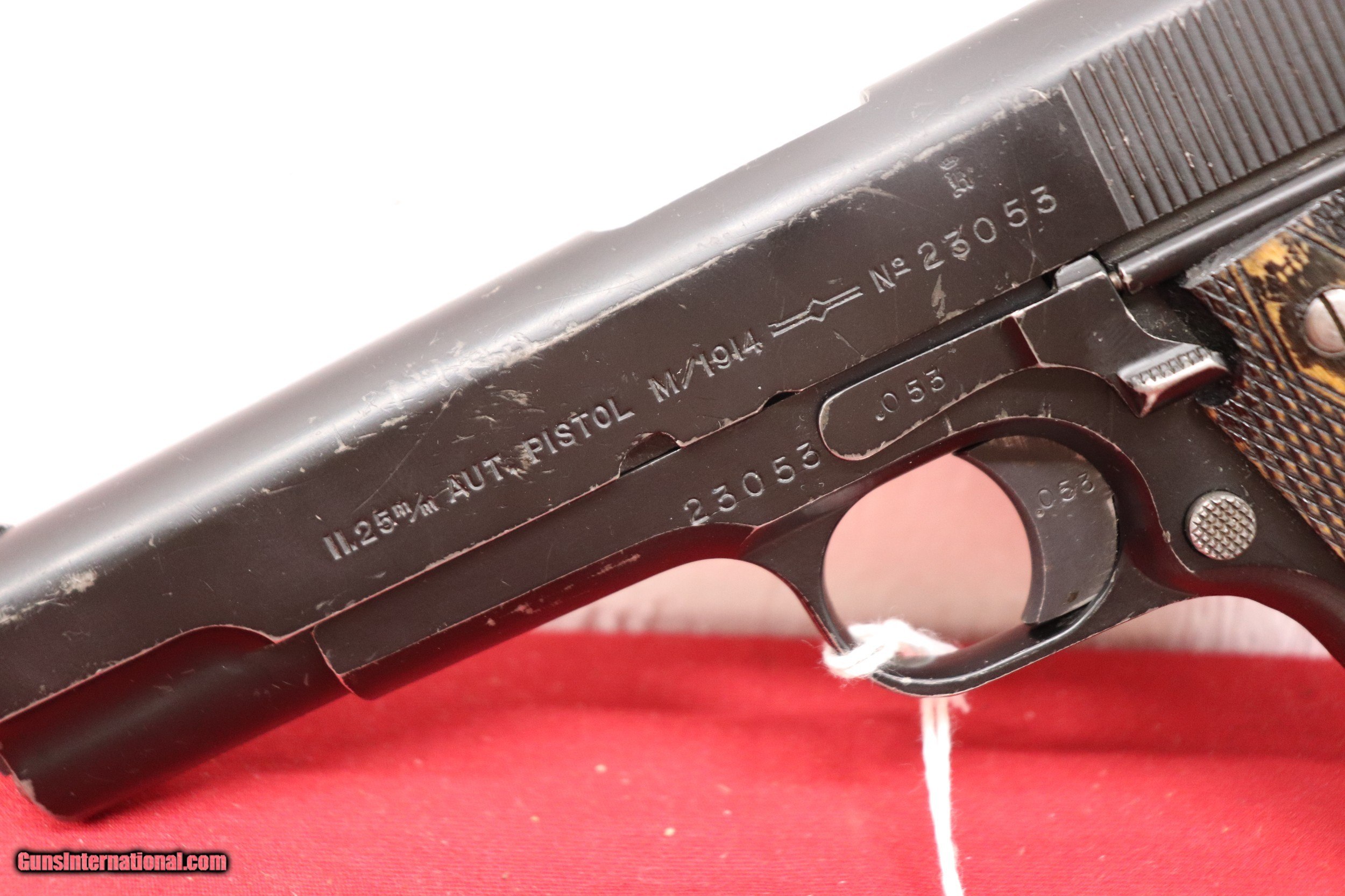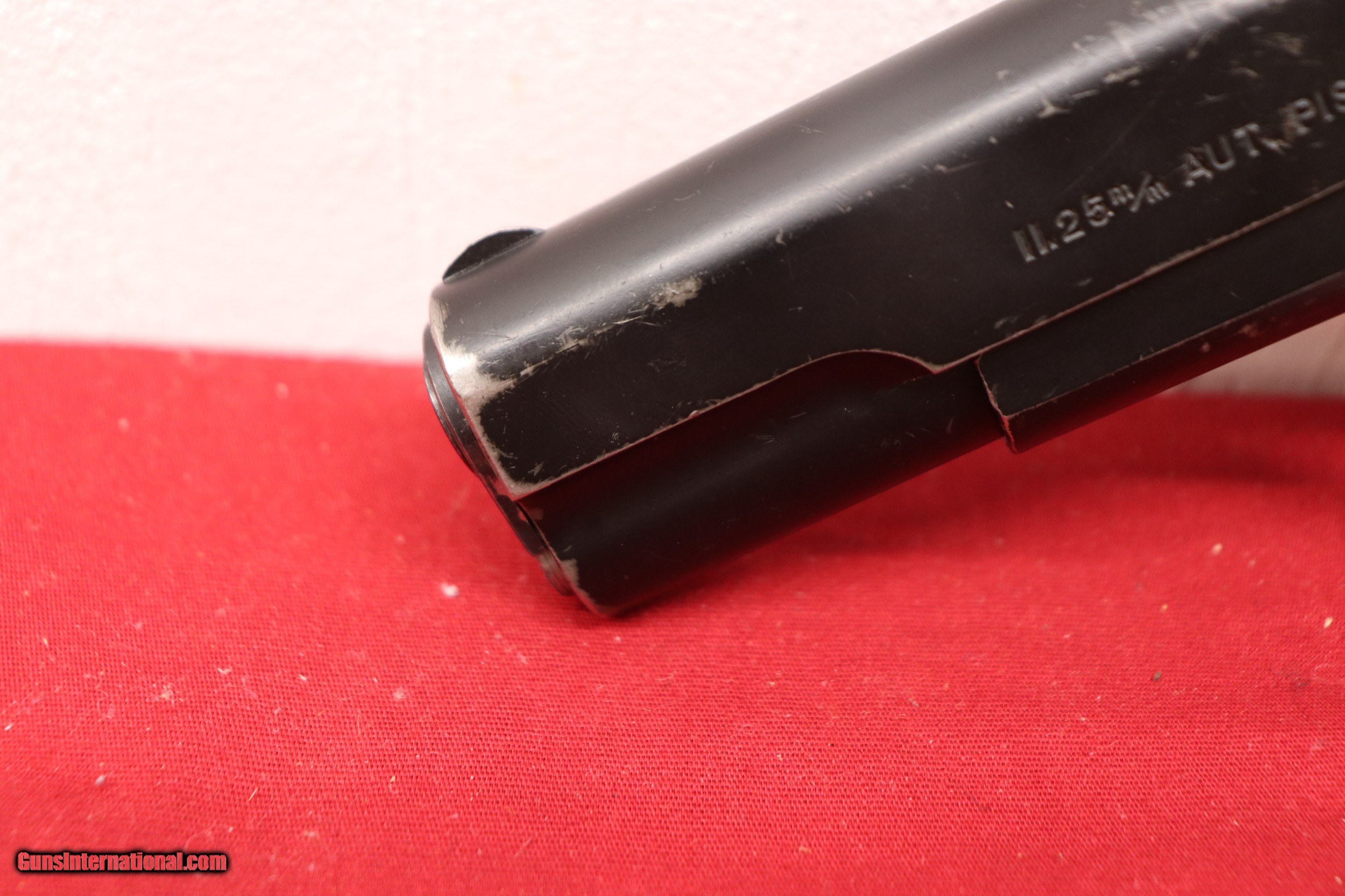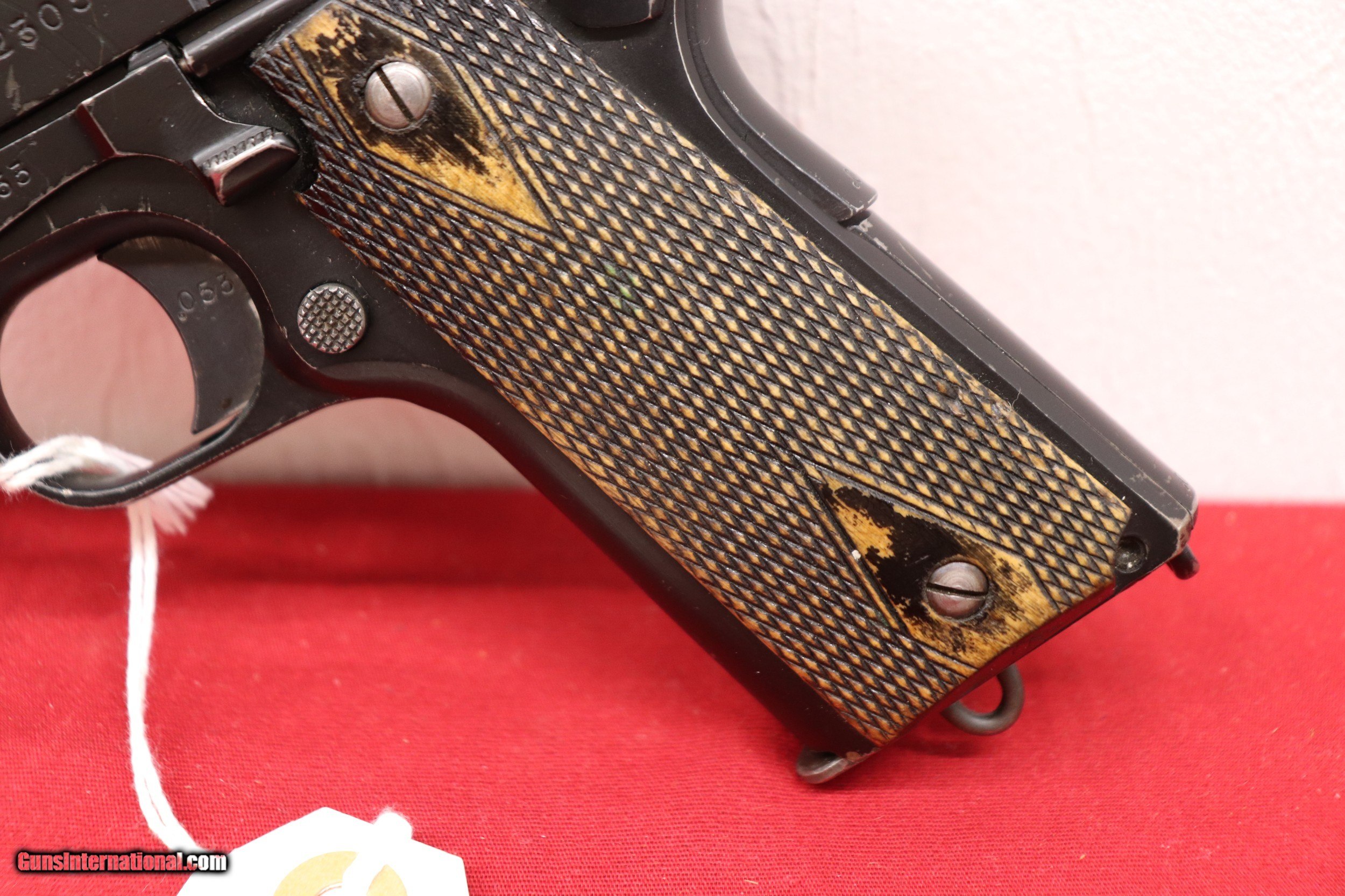 Description: Another great item from Gainesville Pawn! Up for sale is a Norwegian Kongsberg 1914. In 1914 Norway Adopted the Colt 1911 pistol. Norway obtained a license to produce the pistols at the Kongsberg Vaapenfabrikk facility. These are Scarcely seen in the U.S. This one is wartime being produced in 1941. Nice condition proper baked on black finish. The barrel, front bushing and trigger were replaced post war. Small import mark.*Please be aware that all items are sold “AS IS”. Feel free to call us at our store (352) 240-6452 or email us at Gainesvillepawngmail with ANY questions. We do not accept trades or offers through through Guns International We only entertain trades and offers through our store. $35 shipping and handling. Insurance extra. We only accept USPS money orders and major credit cards for payment. 3% convenience fee for credit cards. WE collect Florida state sales tax for in state sales. Please be aware that this item is for sale in our store as well as the occasional gun show so it may be sold there at any time. We will not ship the item until you have your dealer/receiving store email us a signed copy of their FFL to gainesvillepawngmail. SOLD Curio/Relic: Yes Handgun Caliber: .45 ACP (.45 Auto) Manufacturer: Kongsberg/ Colt Model: 1914 Serial Number: 23053 Barrel Length: 5 inch Condition: very good Metal Condition: very good Wood Condition: very good Bore Condition: excellent |