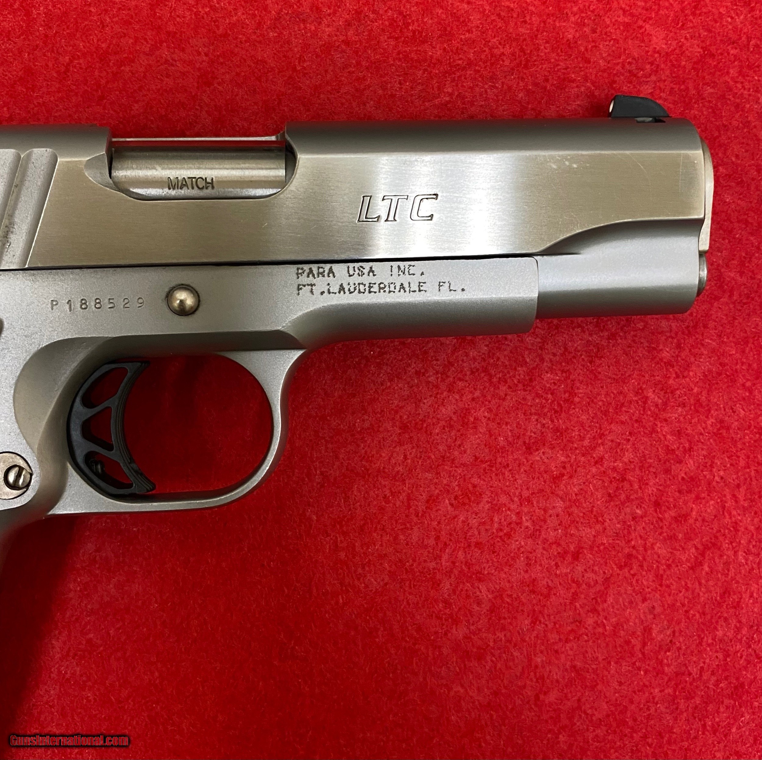Description: Para 1911 LTC model in .45 auto with stainless steel finish in excellent condition. Original case with three magazines. Very sharp looking 1911. SOLD Handgun Caliber: .45 ACP (.45 Auto) Manufacturer: Para Model: 1911 Serial Number: P188529 Barrel Length: 4 1/4” Condition: Excellent Metal Condition: Excellent Bore Condition: Excellent Finish: Stainless Steel Extras: Three magazines Case: Yes Item Location: WV |