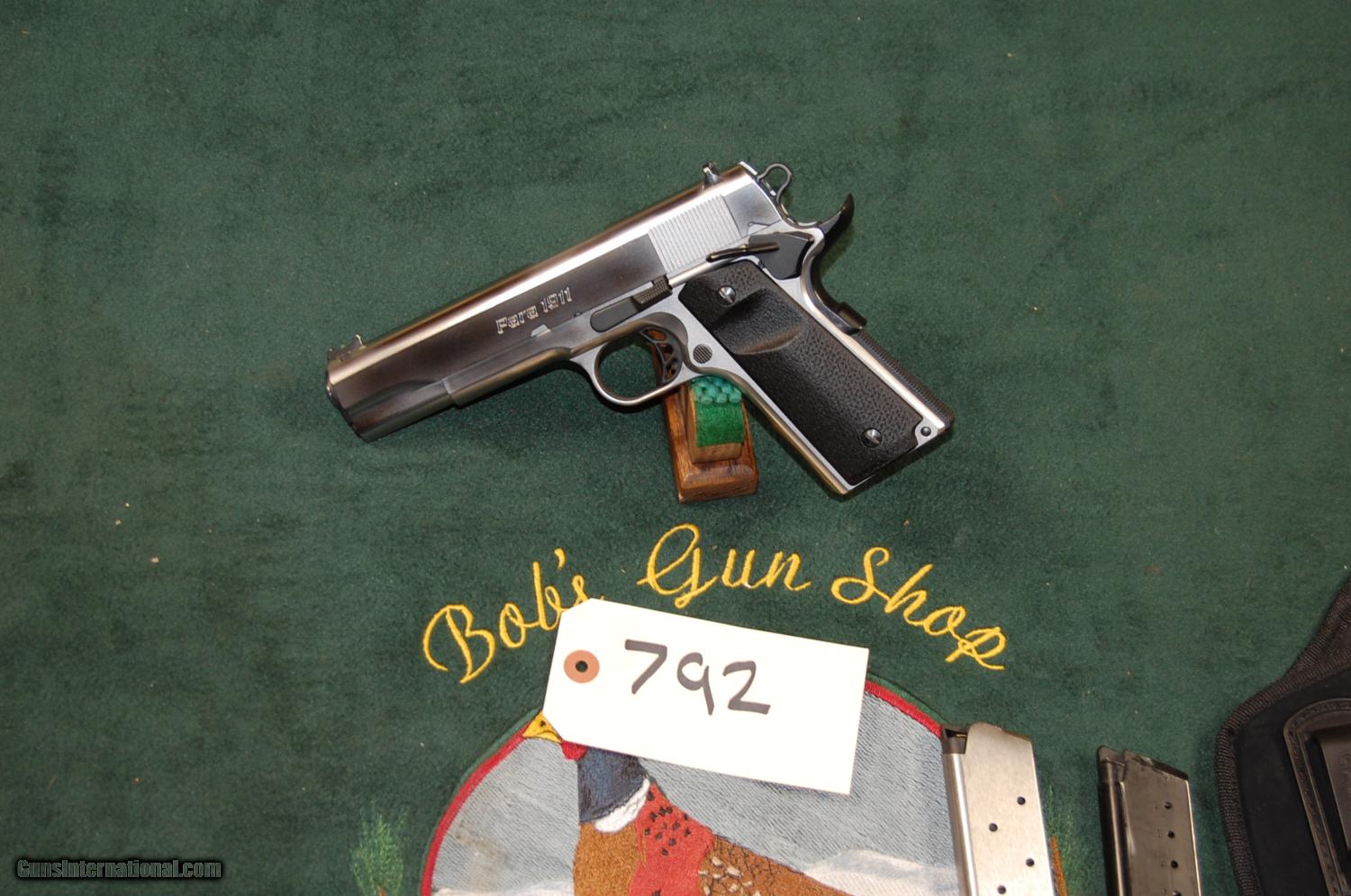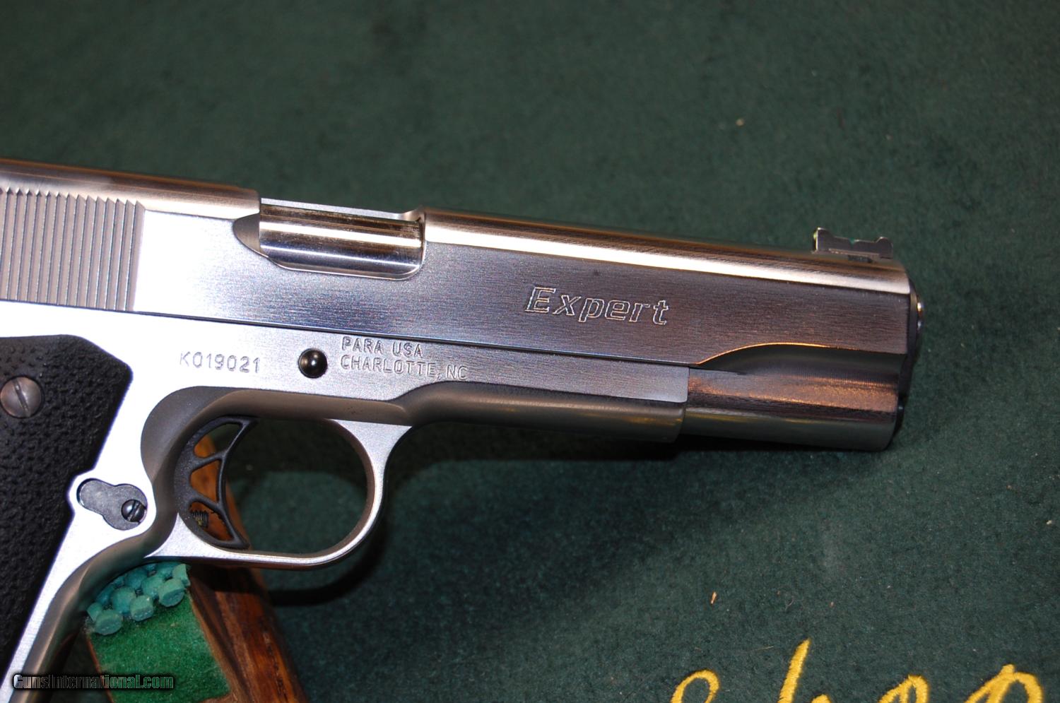 Description: PARA 1911 Expert, 45ACP, Stainless Steel Finish, Semi-Polished, Ramped Barrel, Shoots Wadcutters no problem, Very well maintained Pistol, Has Magpul grips, Fiber optic Front sights and White dot rear sight. Comes with one factory magazine and one Dan wesson magazine. Also comes with one IWB holster and one leather OWB holster and a Leather Magazine pouch. Bore is good and pistol is in 95% overall condition. SOLD Manufacturer: PARA USA Model: 1911 Expert Caliber Info: 45ACP |