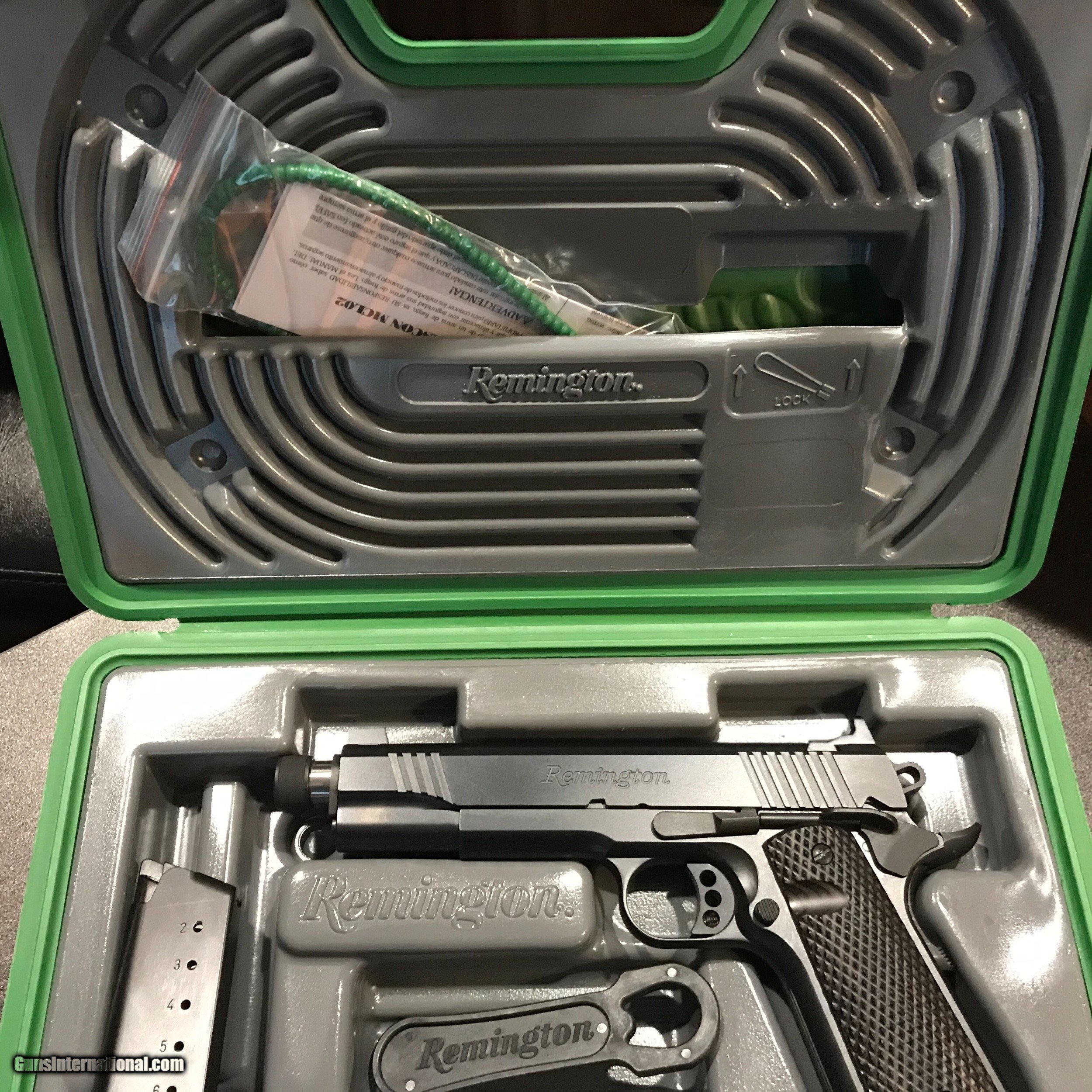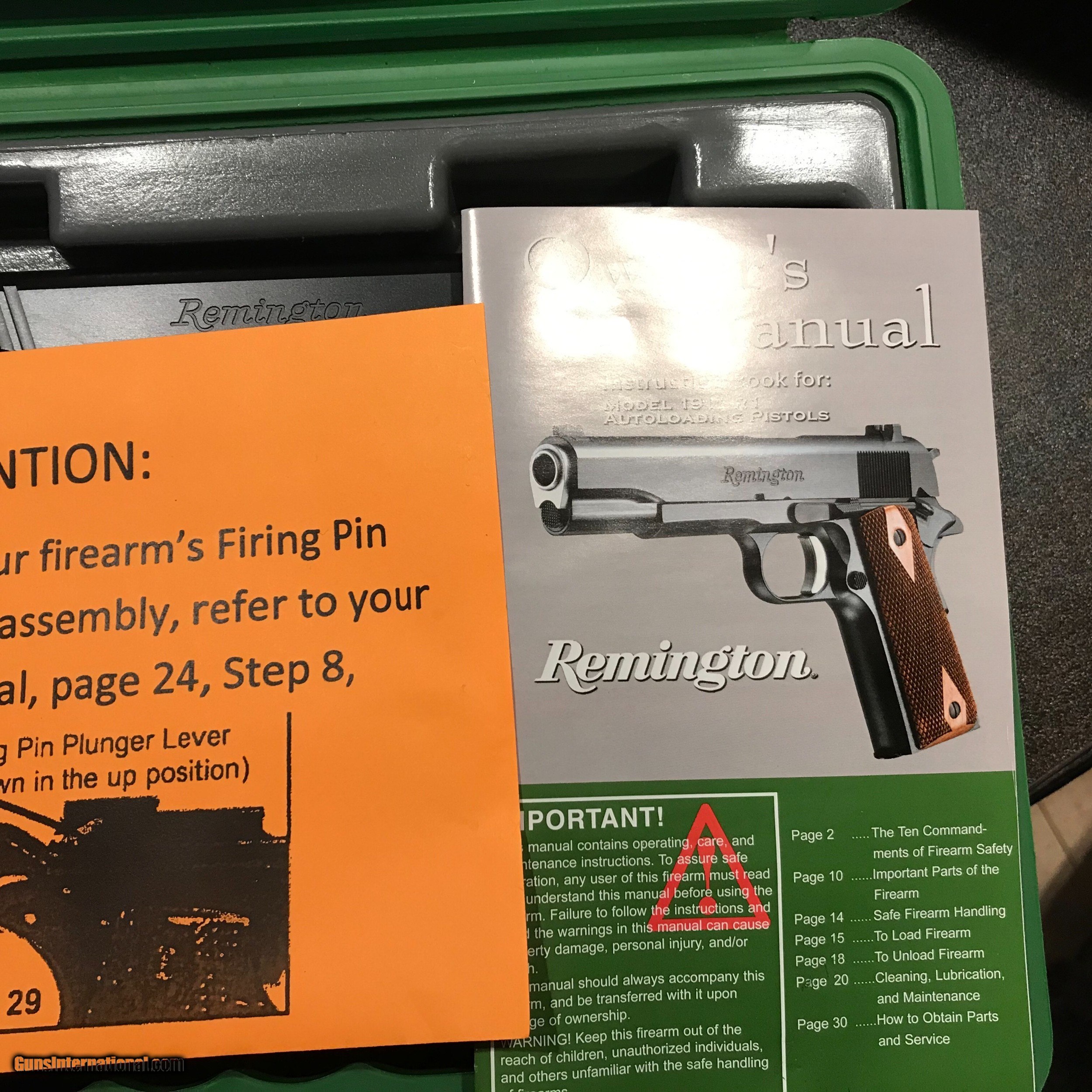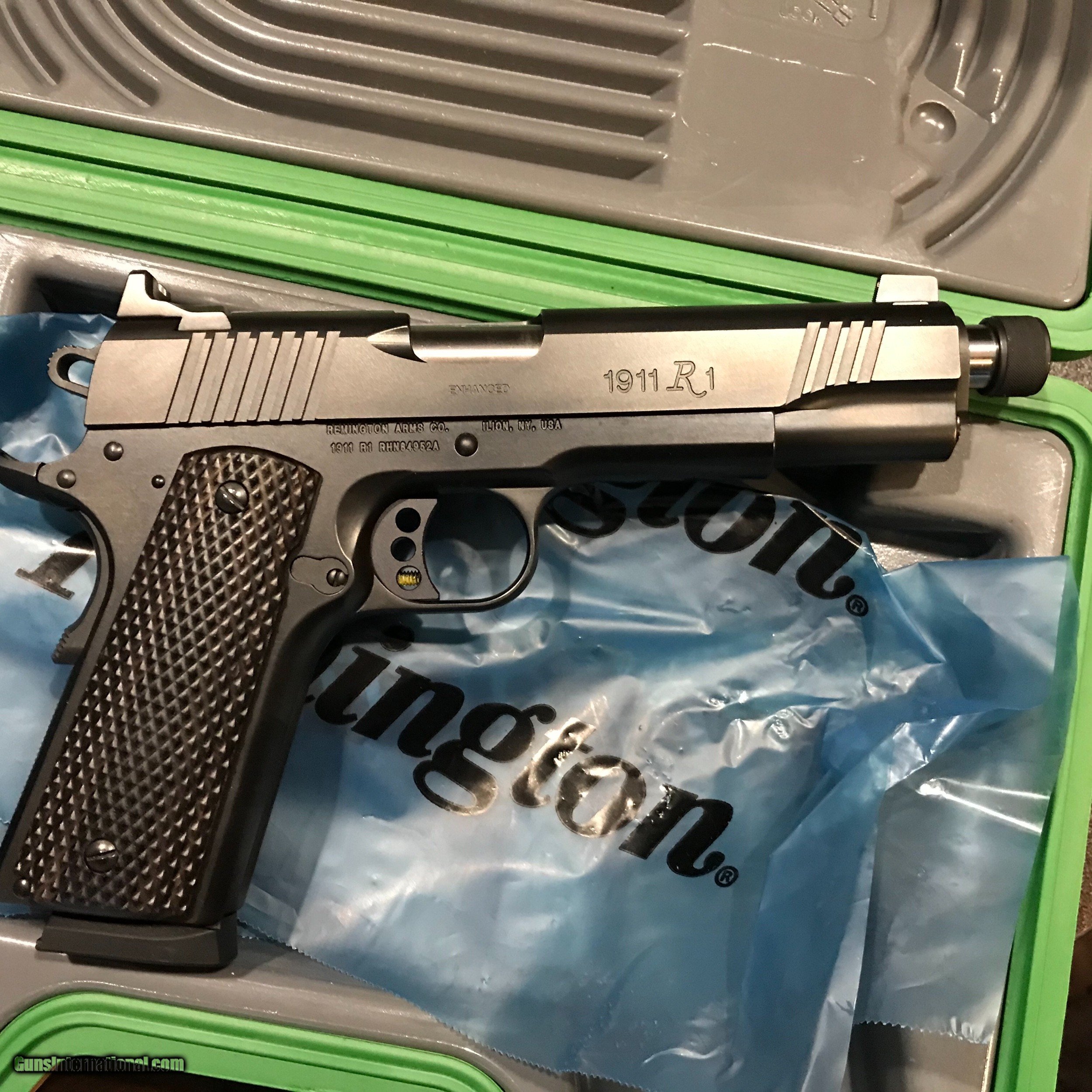 Description: BRAND NEW IN THE BOX A 2017 REMINGTON ENHANCED T B W/THREAD PROTECTOR 45ACP PISTOL NIB JUST REDUCED IN PRICE! Remington, R1 Enhanced, 1911, Full Size, 45ACP, 5.75" Threaded Barrel, Steel Frame, Black Satin Finish, Laminate Grips, Tall 2-Dot Sights, 8Rd, 2 Magazines