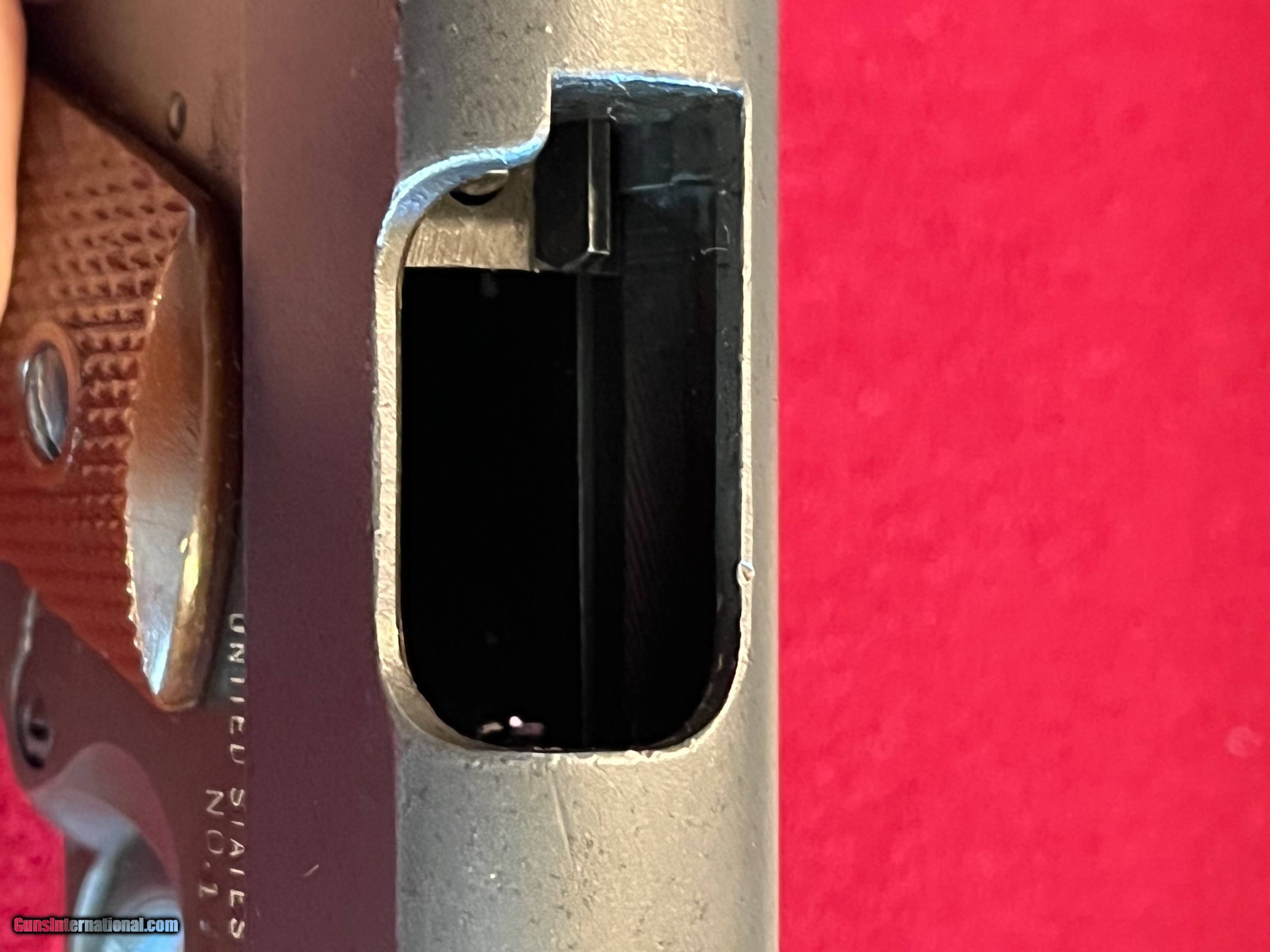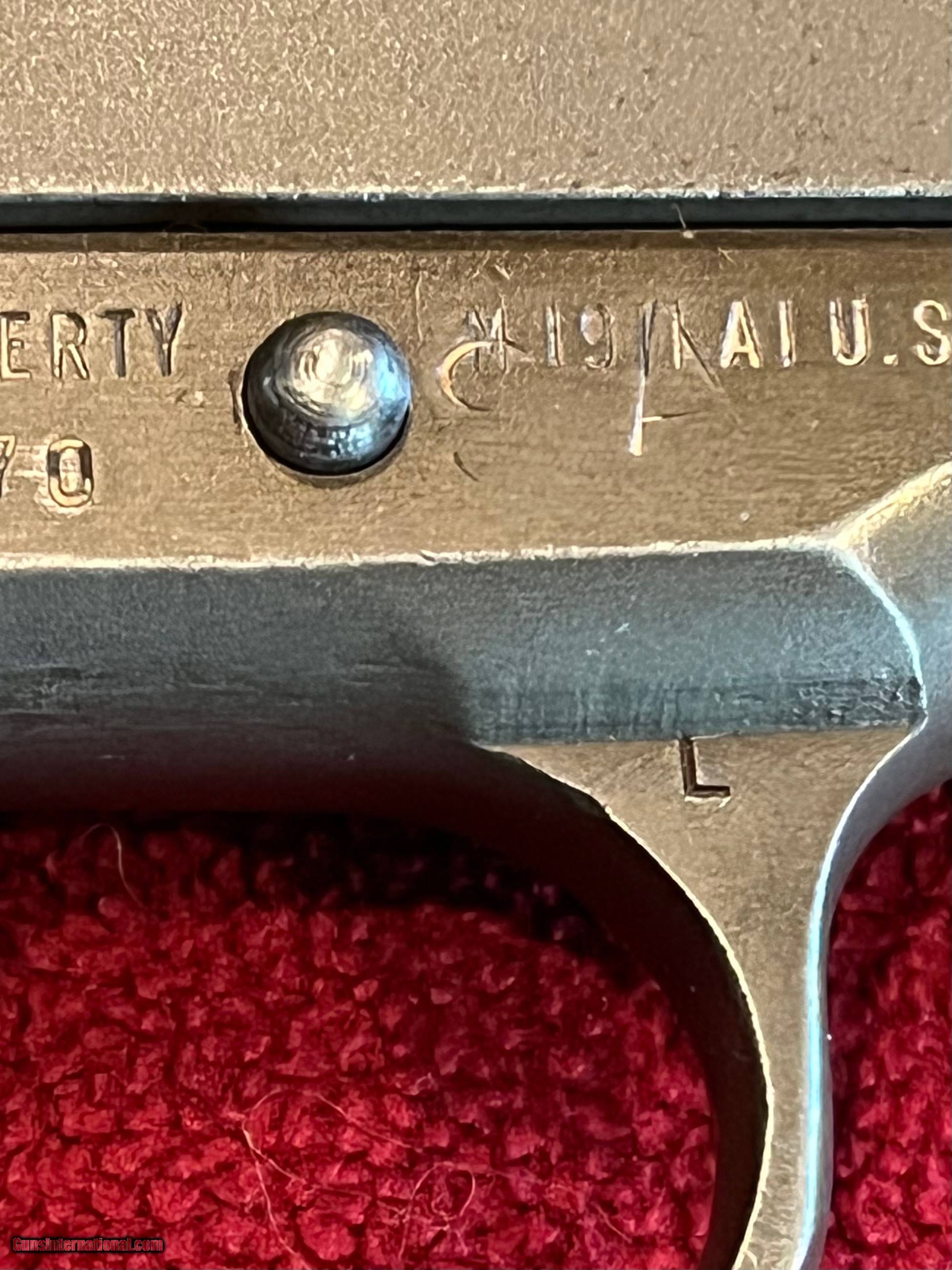 Description: I have a WWII Remington Rand 1911 late 1944 production National Match pistol. This 1911 is in great condition for a 78 y/o pistol. After WWII Springfield Armory took variations of 1911 pistols in the Arsenal and converted them to National Match pistols starting in 1955. My research shows that Colt had been successful with their NM program that Springfield would give it a go. According to records this pistol lines up with a first year production(1955) and is complete minus the barrel. The barrel is a correct barrel but is not marked NM. The magazine is a 1944 production and it even has the US marked barrel nut wrench. Haven’t seen to many of these RR National Match pistols. It would make a great piece for a collection. Please feel free to contact with questions! SOLD Curio/Relic: Yes Handgun Caliber: .45 ACP (.45 Auto) Manufacturer: Remington Rand Model: 1911 |